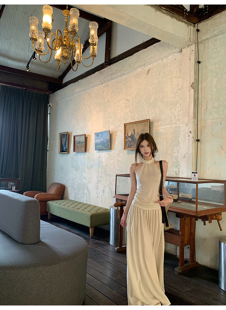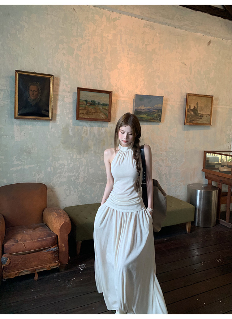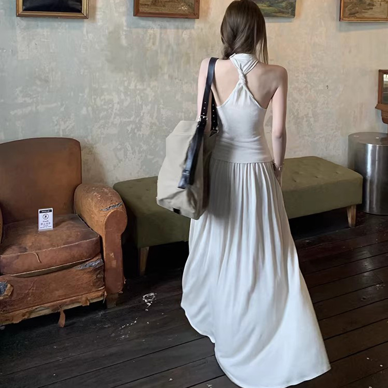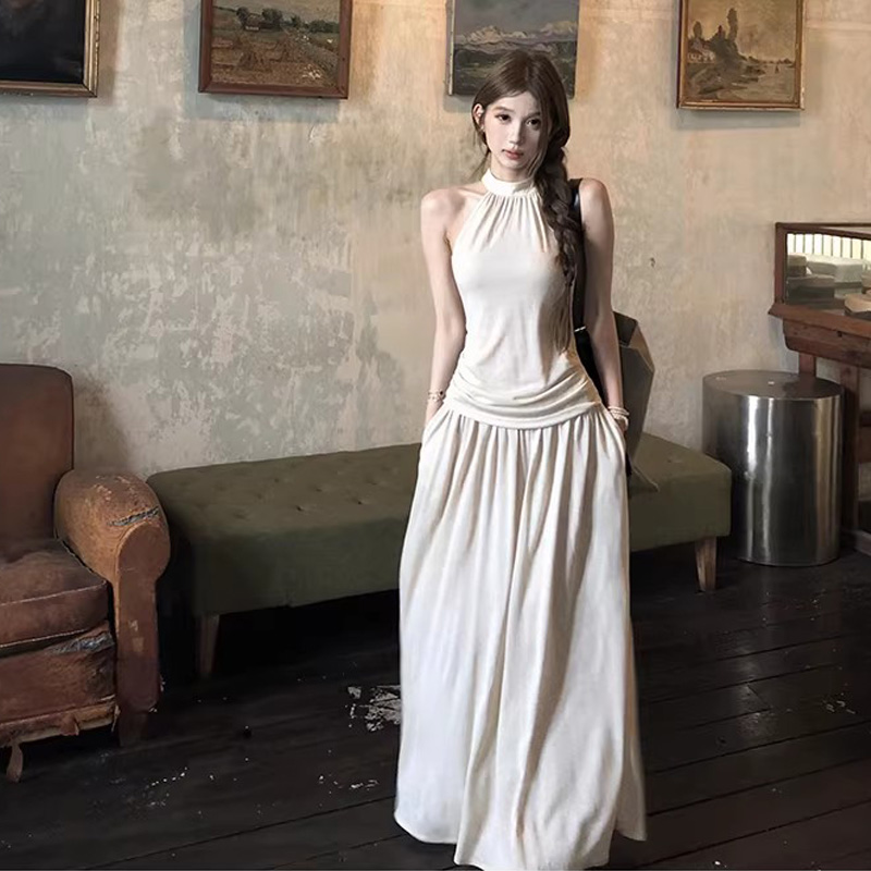 cloudsweet 흰 구름 달콤한 Breeze 향수 품격 행침 목 쉬폰 여성 드레스 플리츠 스커트 민소매 롱 스커트
