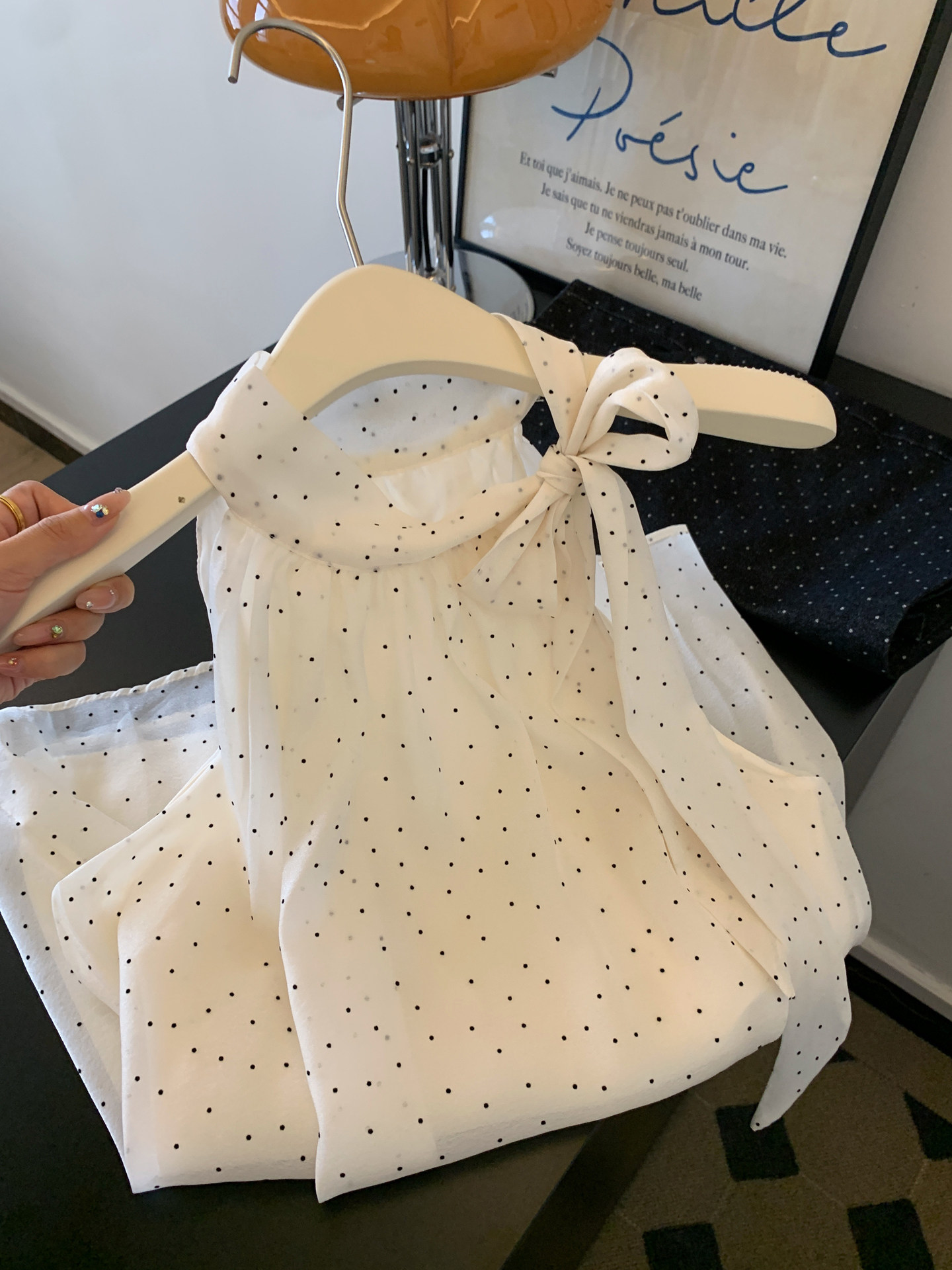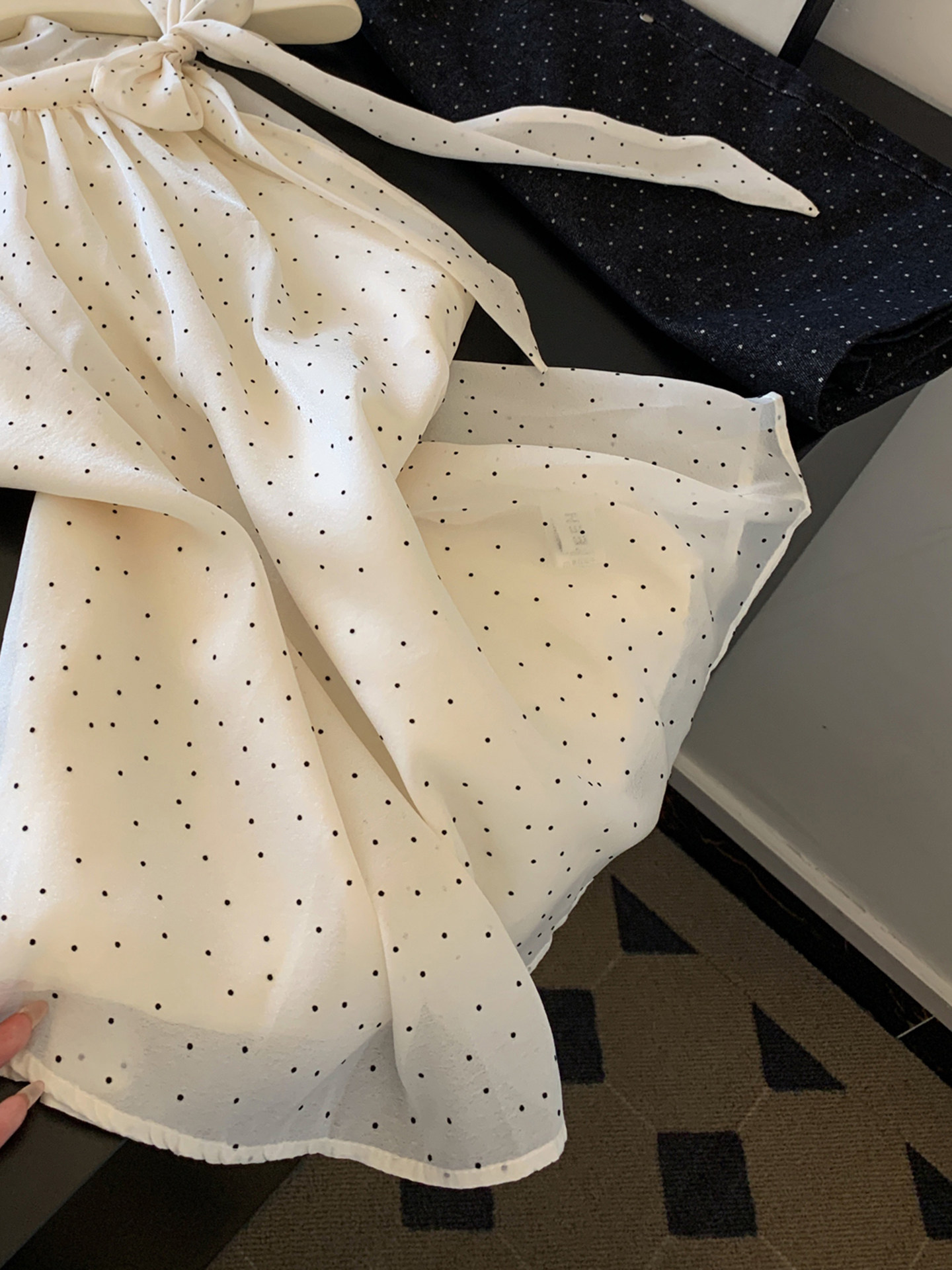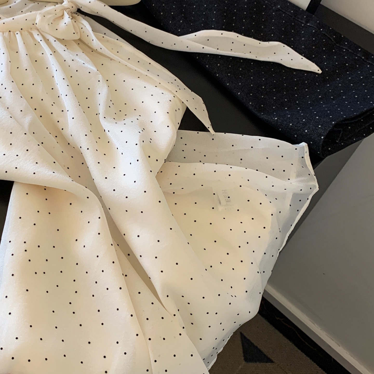 오리지널 디자인 한 부서 원본 싱글 여름 새로운 여성 POLO 칼라 니트 반팔 여성 경기 도트 무늬 스카프 다용도