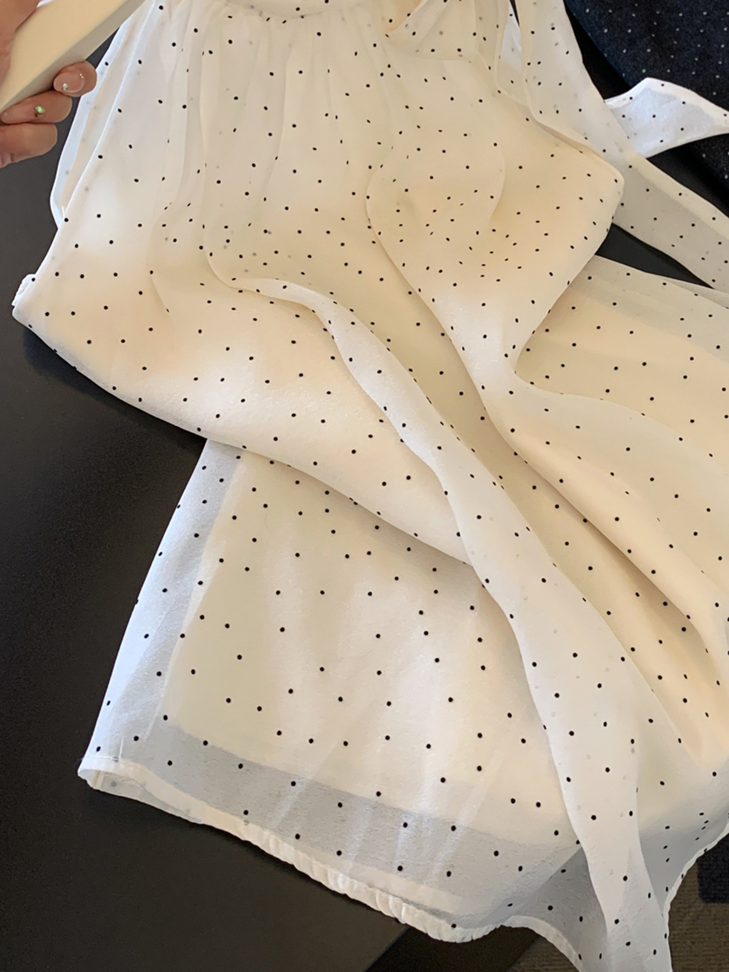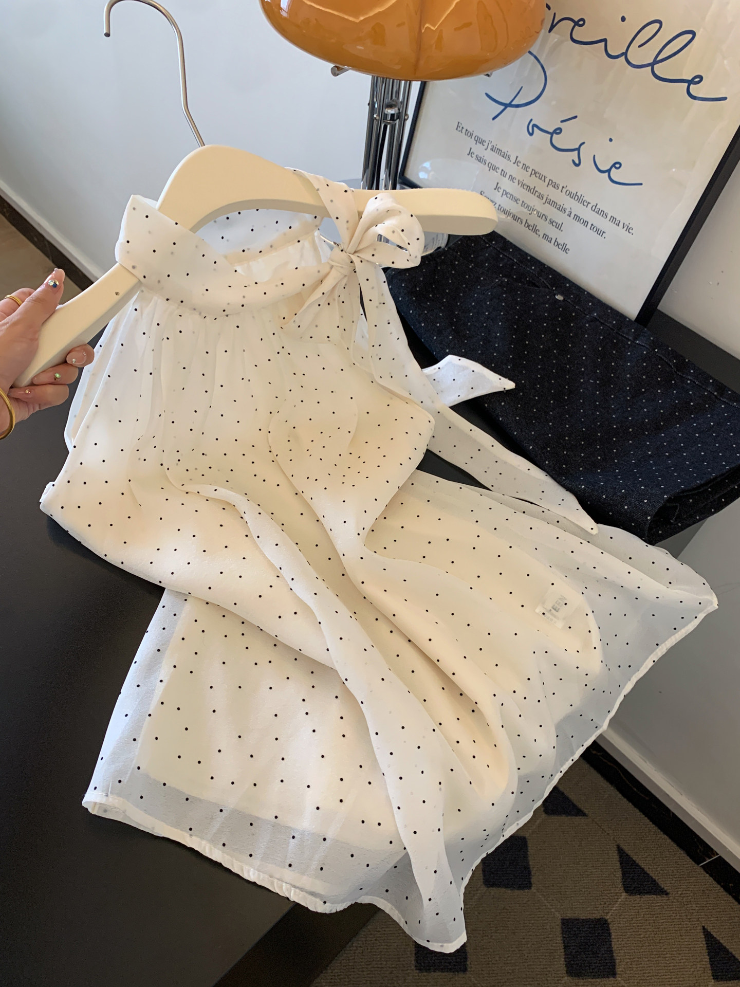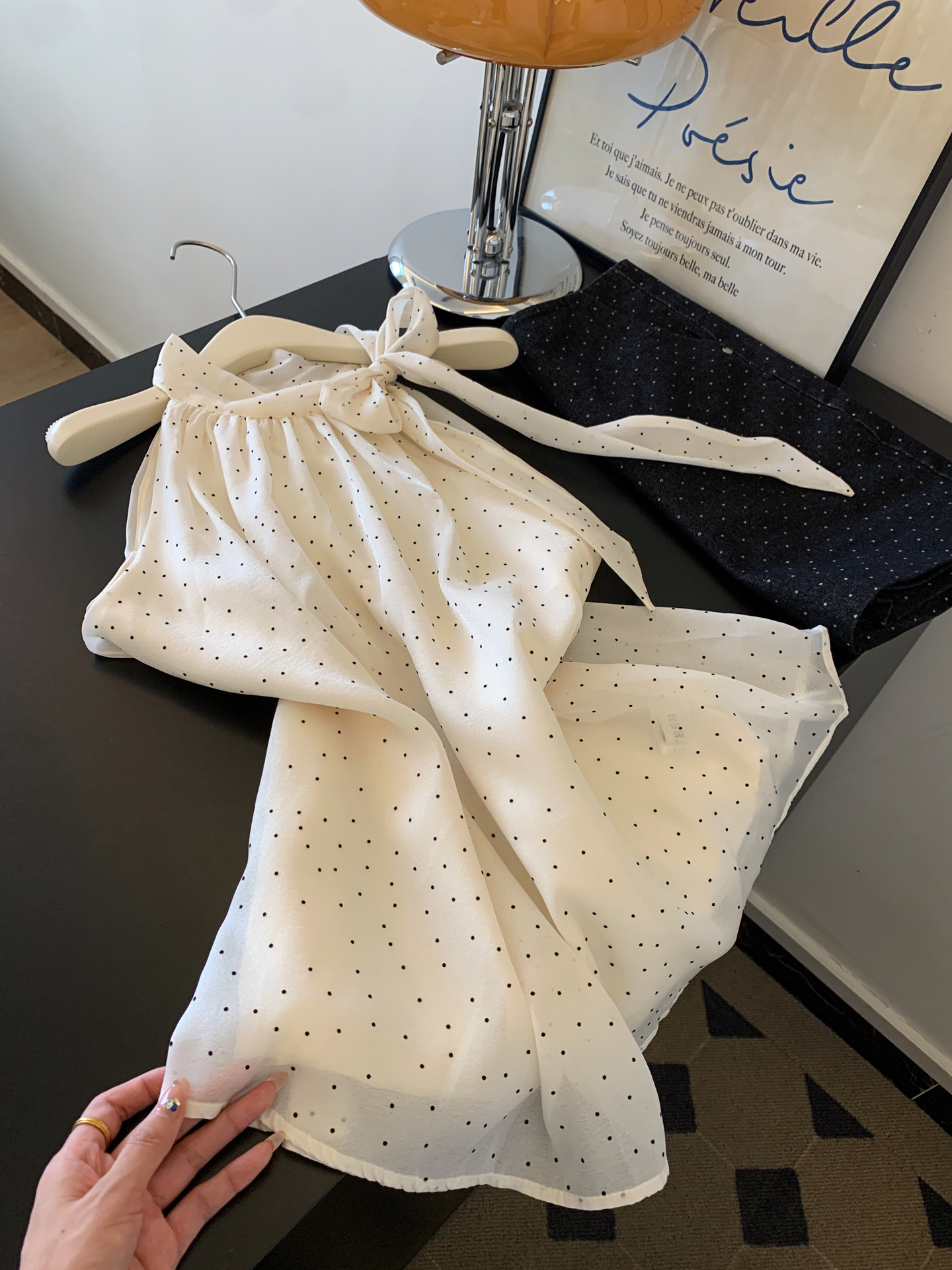 오리지널 디자인 한 부서 원본 싱글 여름 새로운 여성 POLO 칼라 니트 반팔 여성 경기 도트 무늬 스카프 다용도