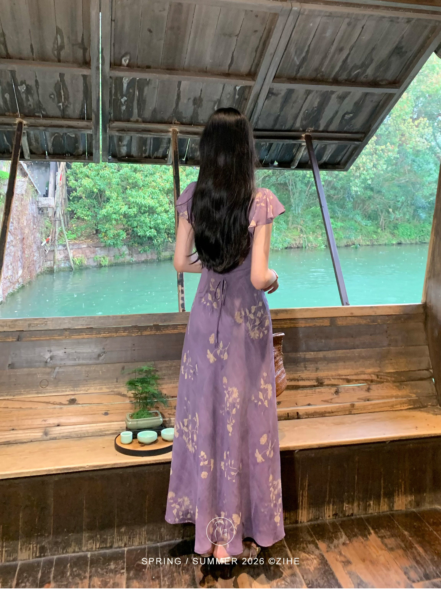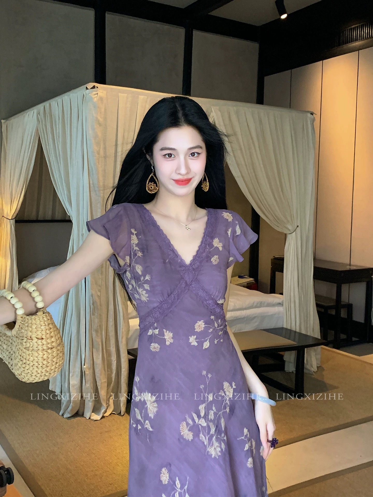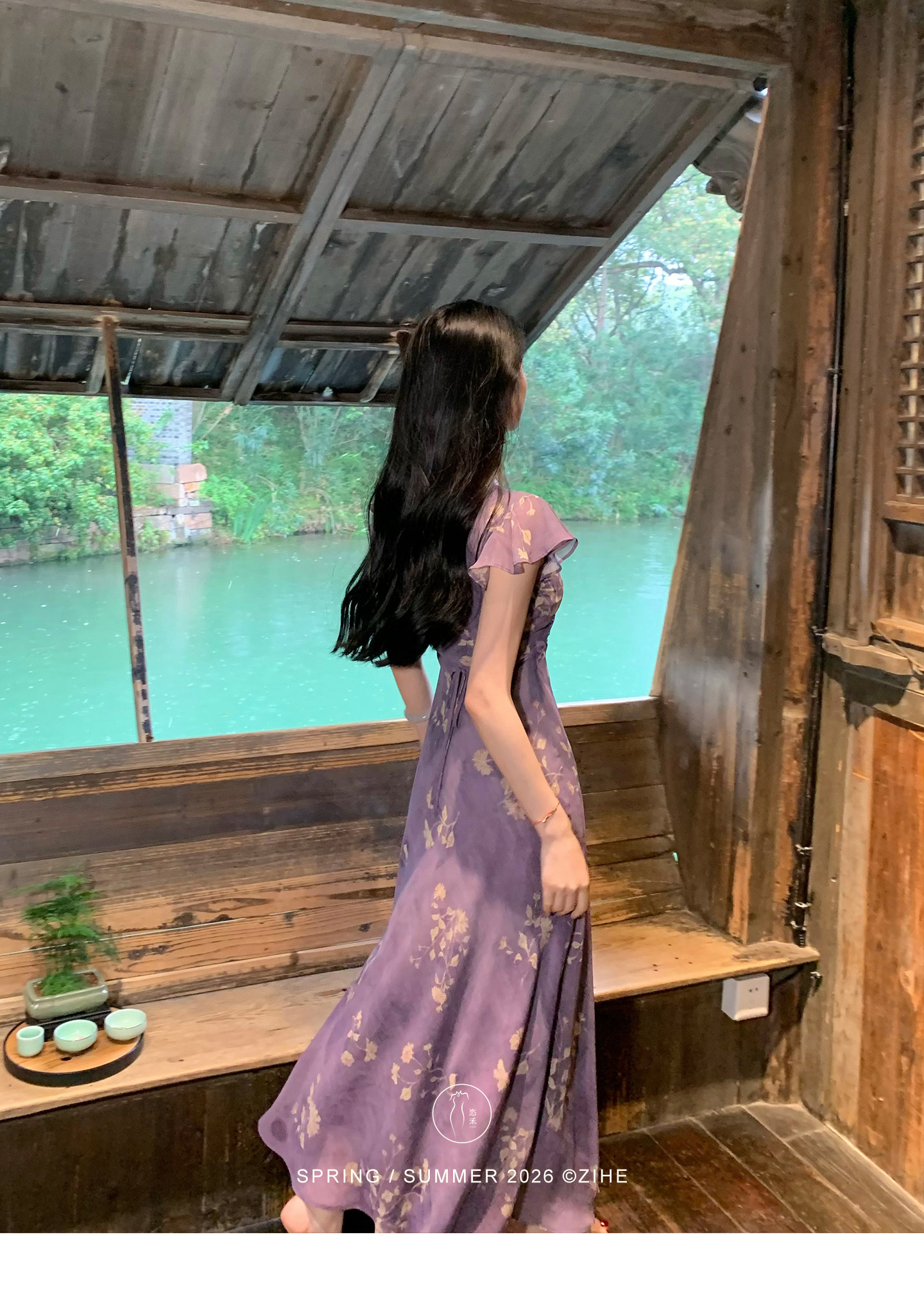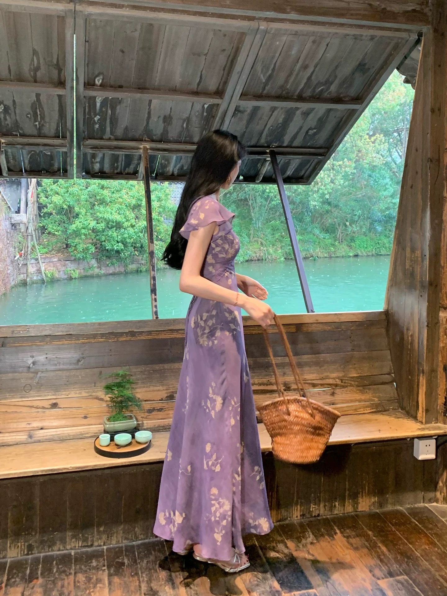 2026 년 여름 보라색 라임 생 향 동양의 미학 금 자주색 꽃 비싼 가스 빛 국풍 드레스
