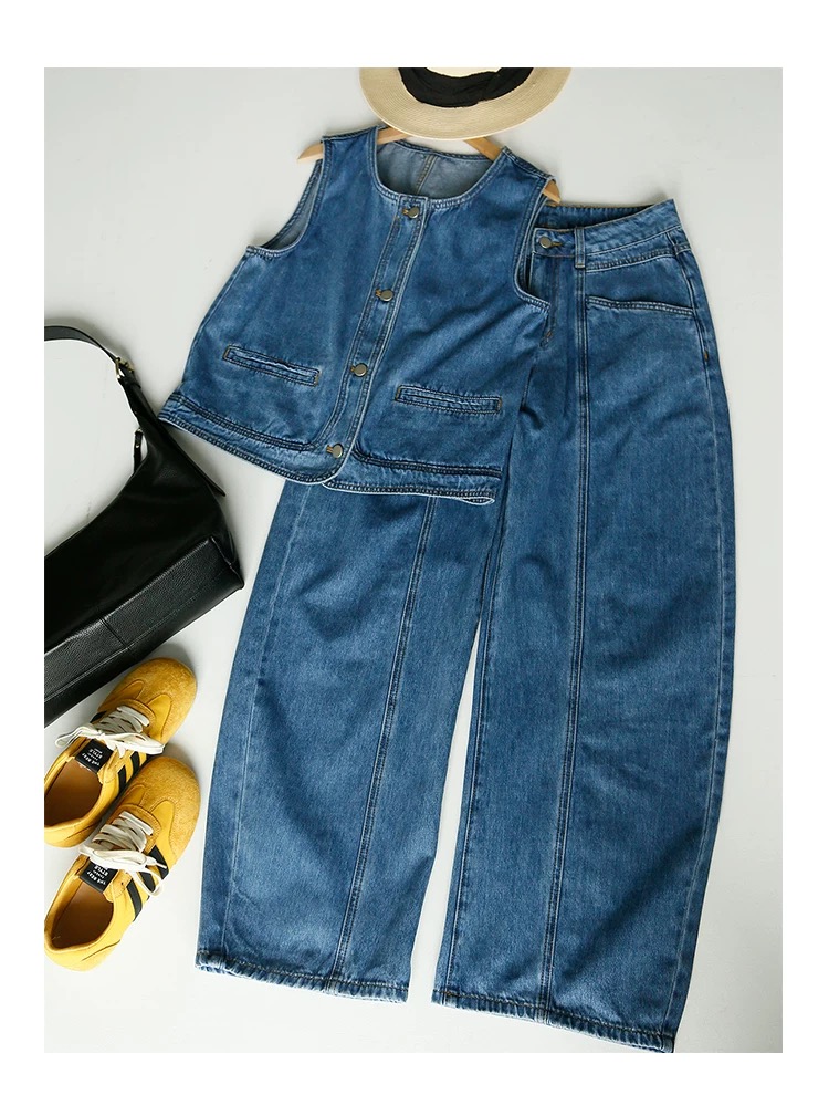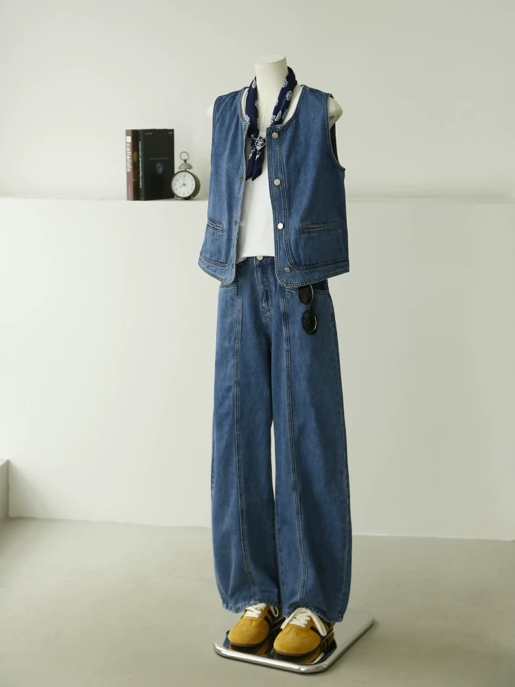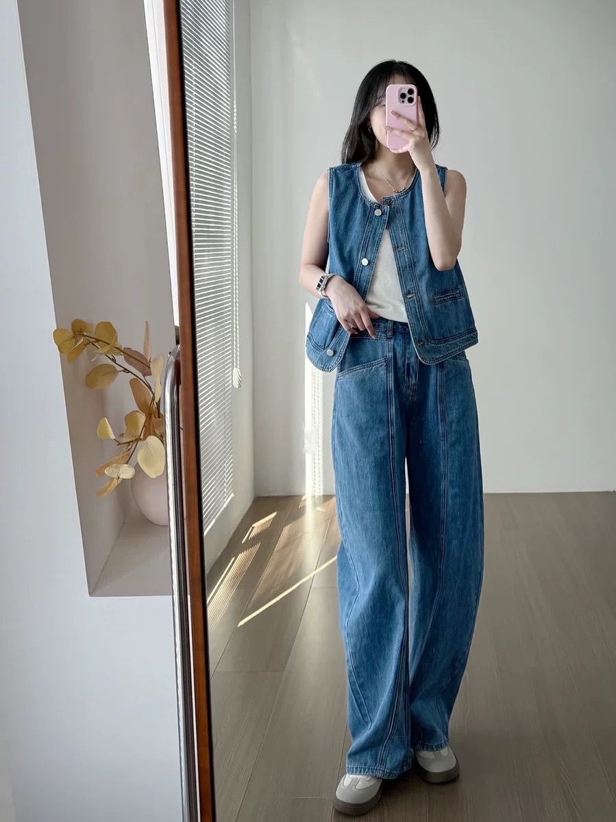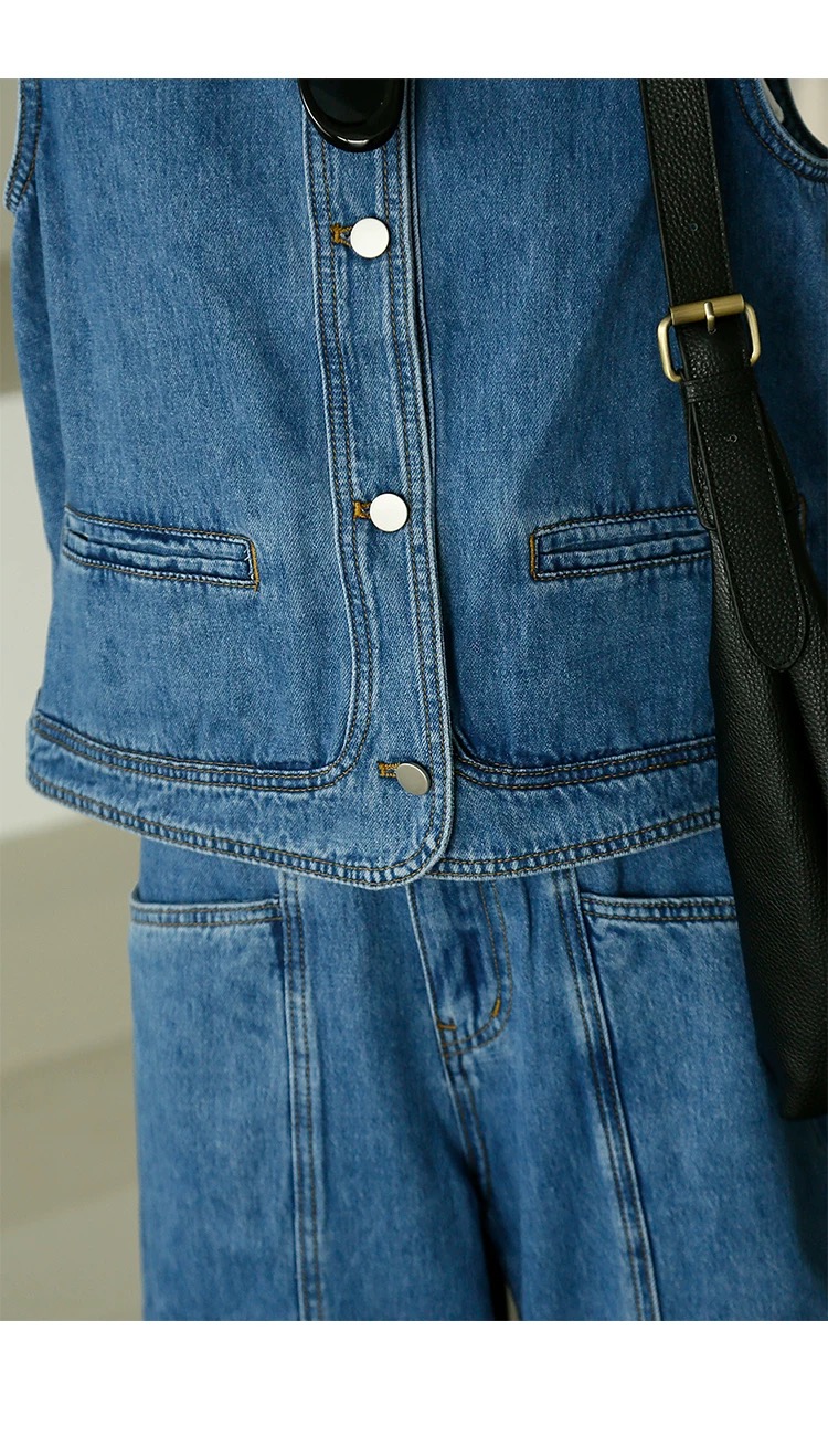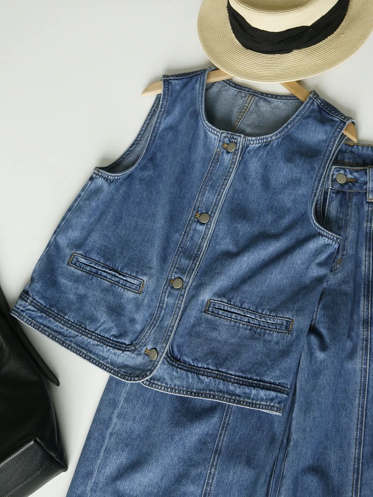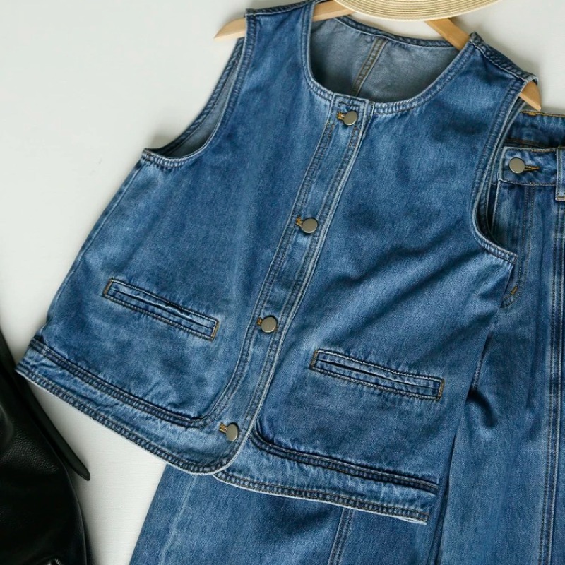 올해 인기 ~ 중 빛 럭셔리 아메리칸 레트로 데님 베스트 여성 코트 루즈핏 민소매 조끼 어깨 쇼트 스타일 맨위