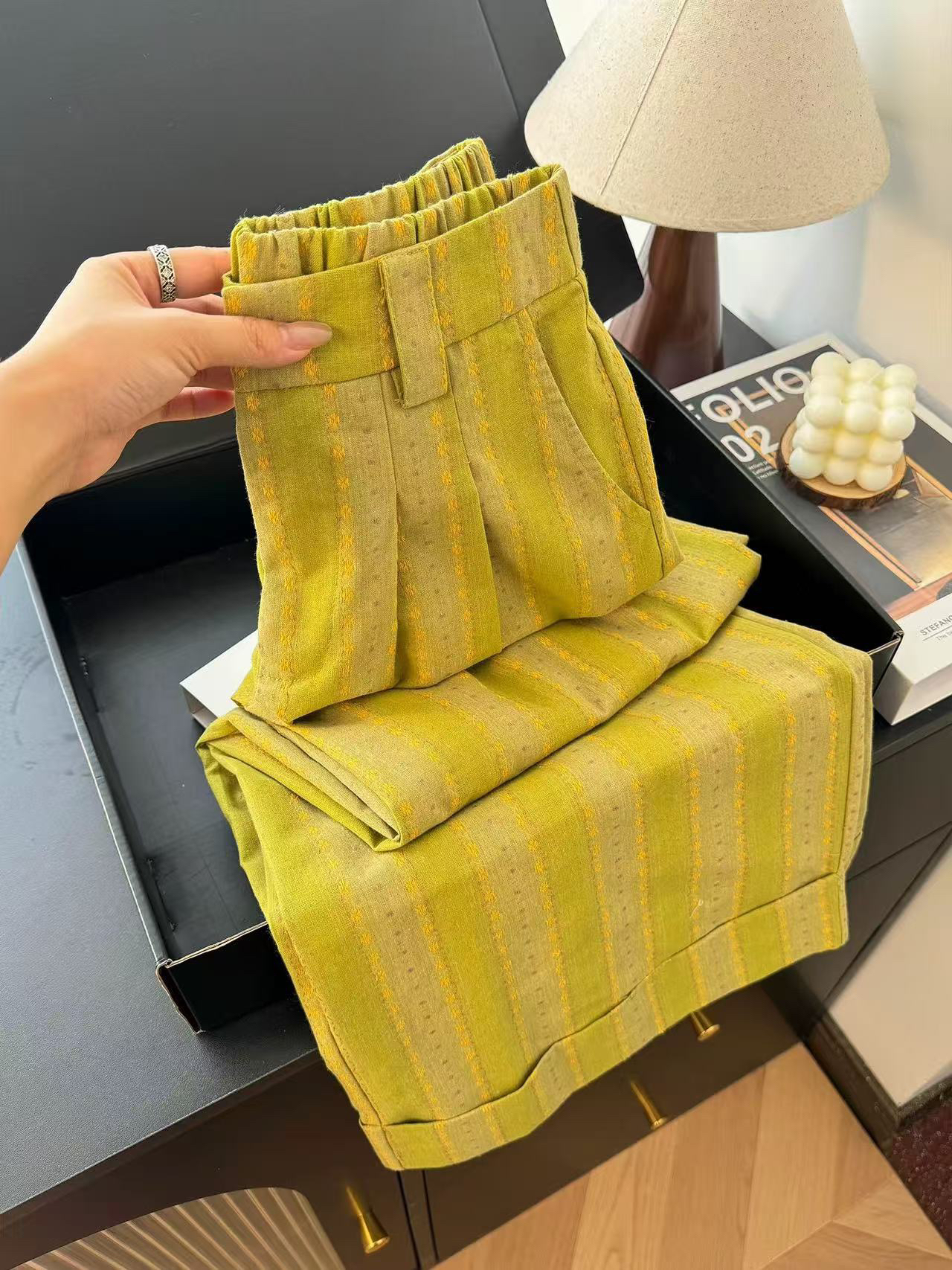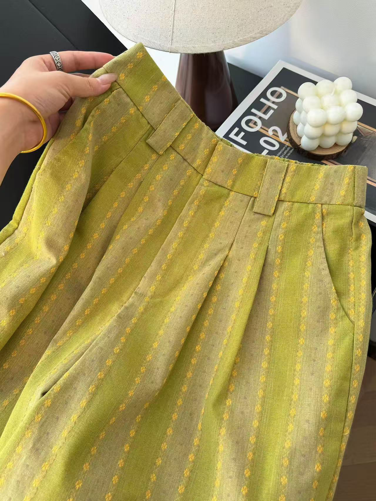 고유 한 슈퍼 잘 생긴 느긋한 느슨함 센스 차가운 바람의 소리 바람 2026 봄 여름 Chic 슬림해 보이는 녹색 캐주얼 와이드 레깅스 바지