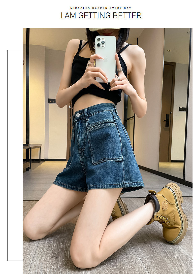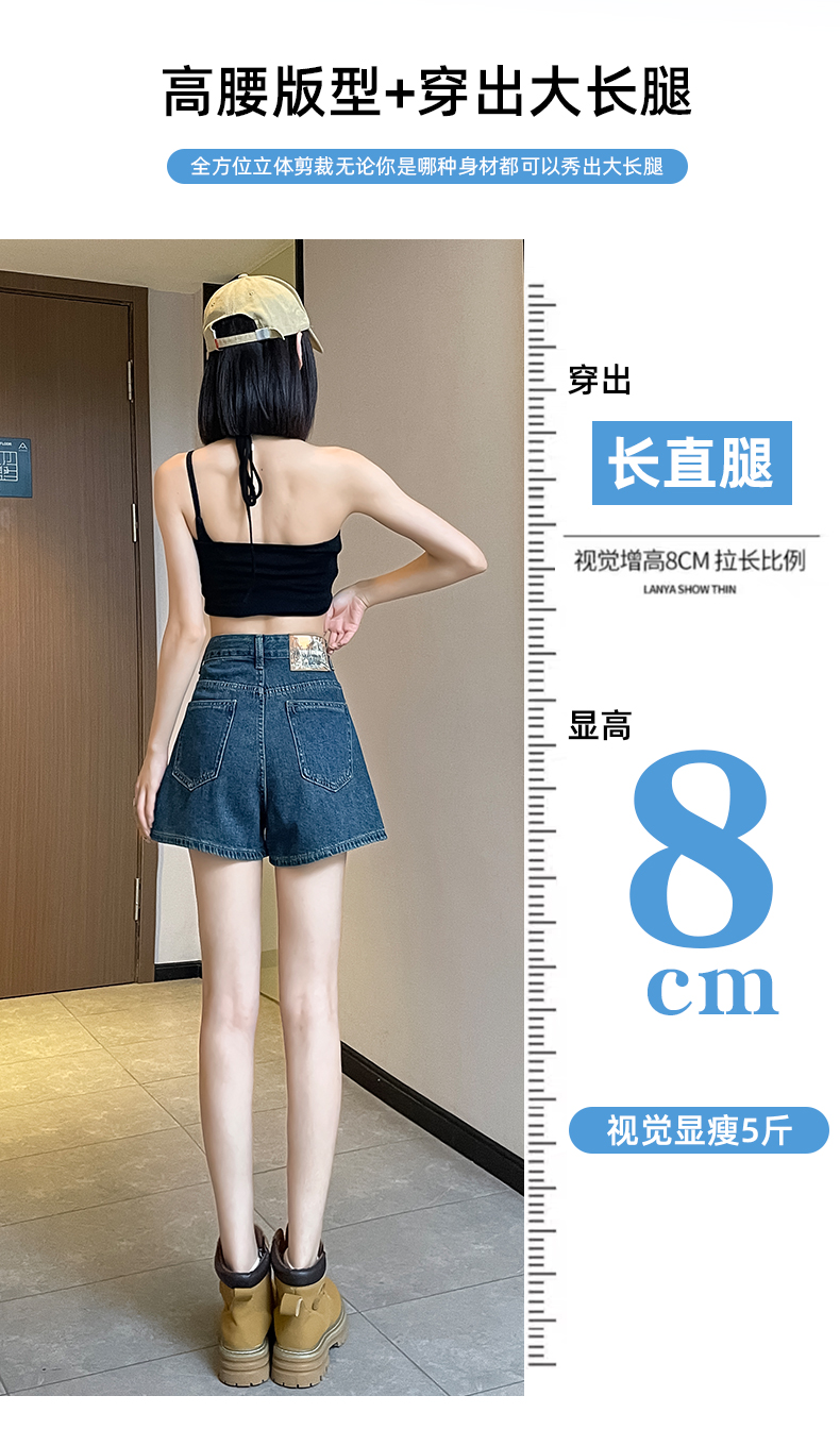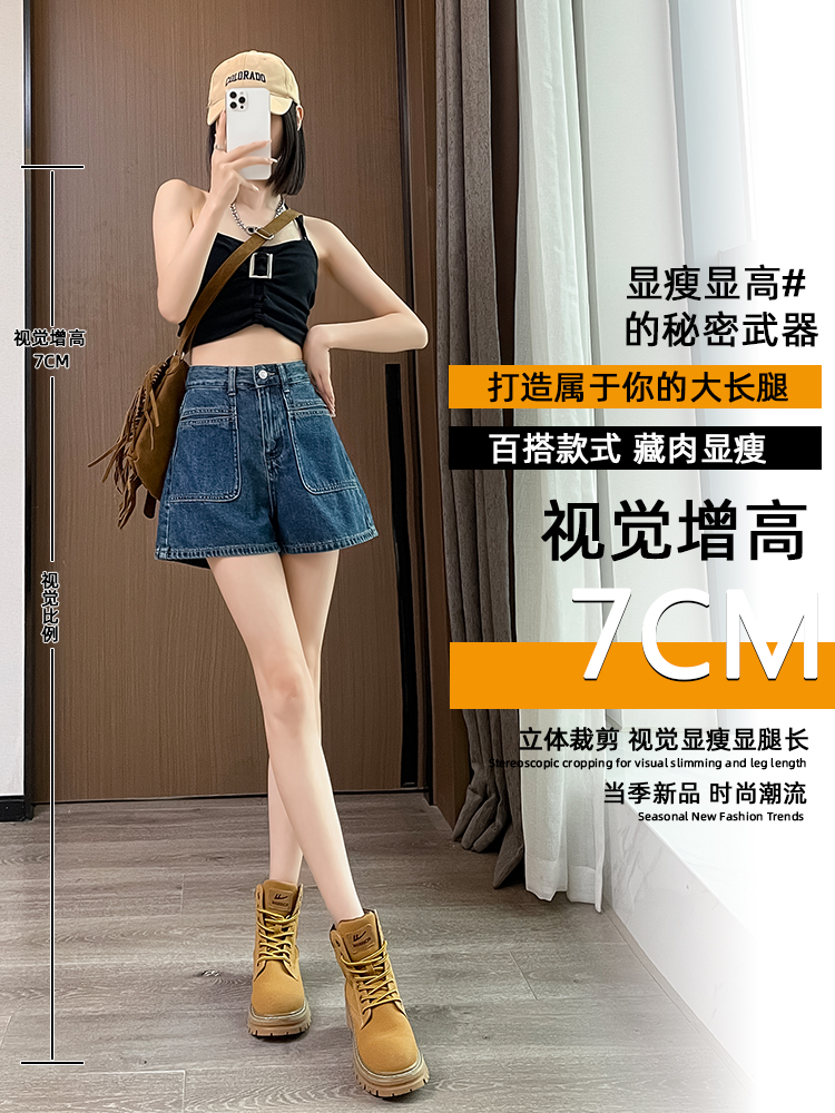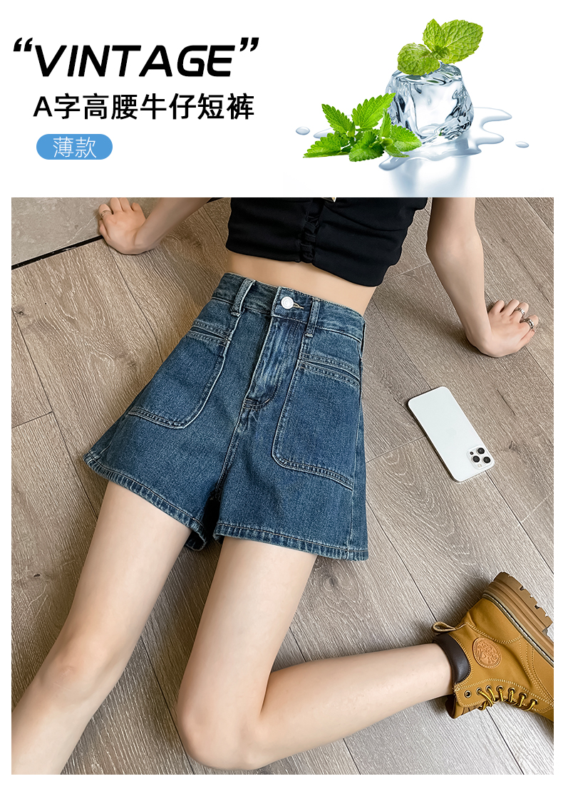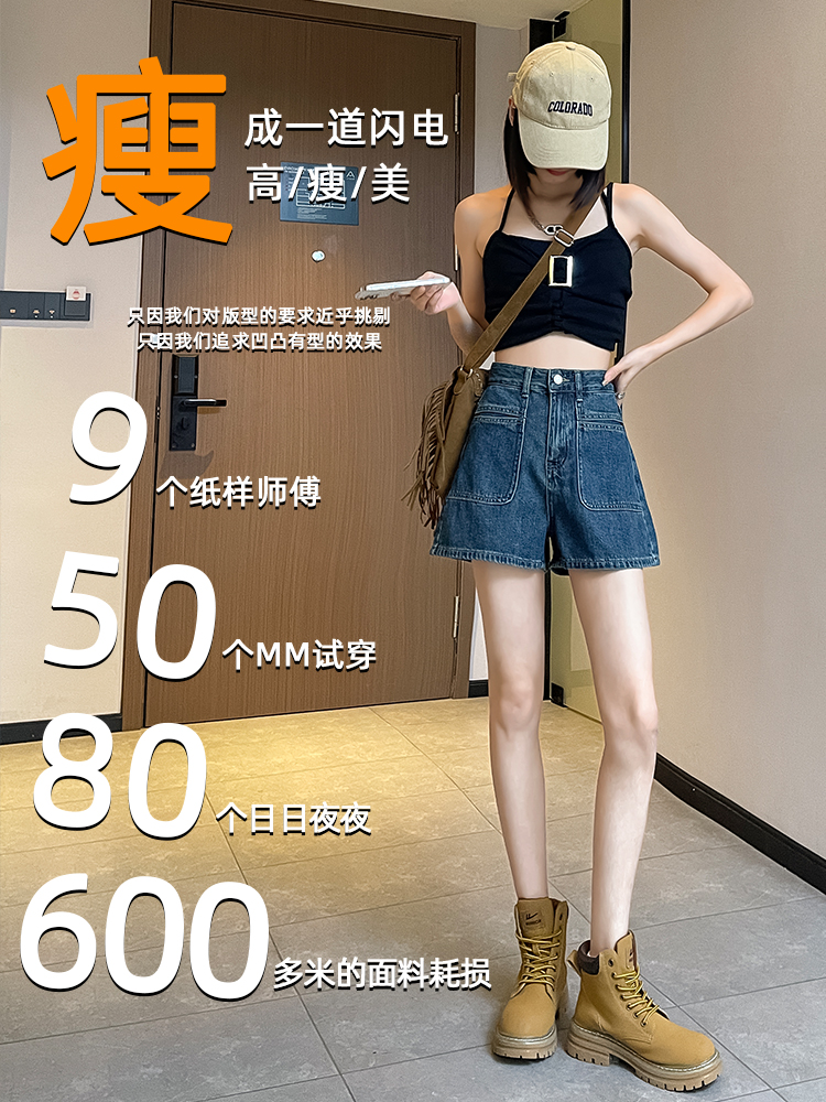 실사 핫걸 데님 반바지 여성 여름 얇은 스타일 하이웨이스트 슬림해 보이는 인터넷 유명인 디자인 센스 작은 키 핫 바지