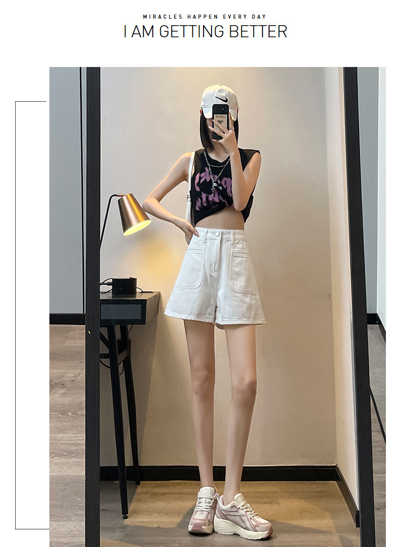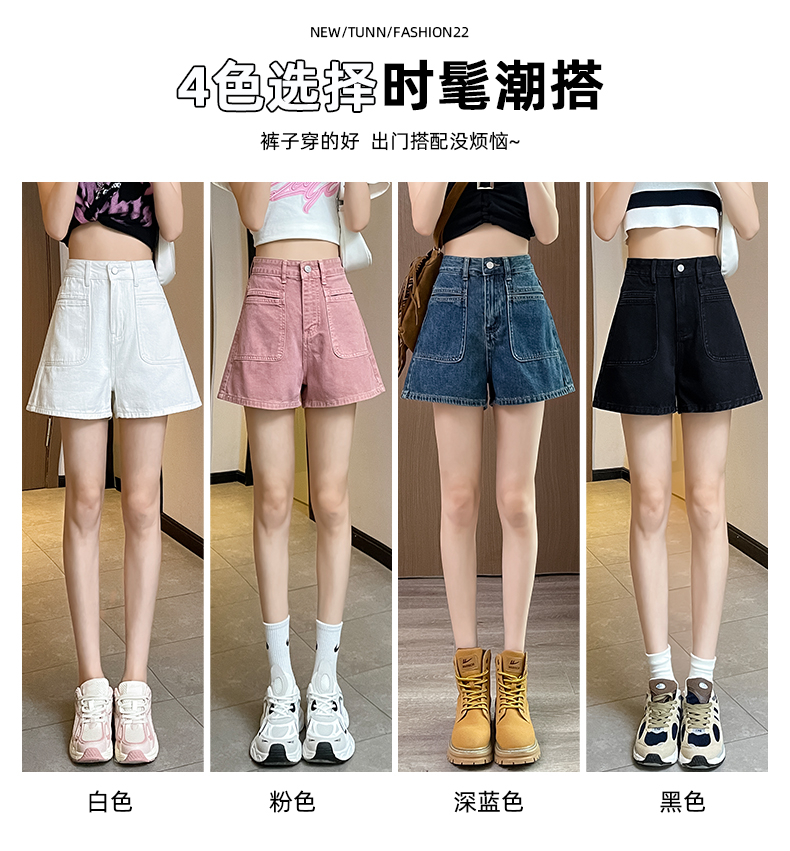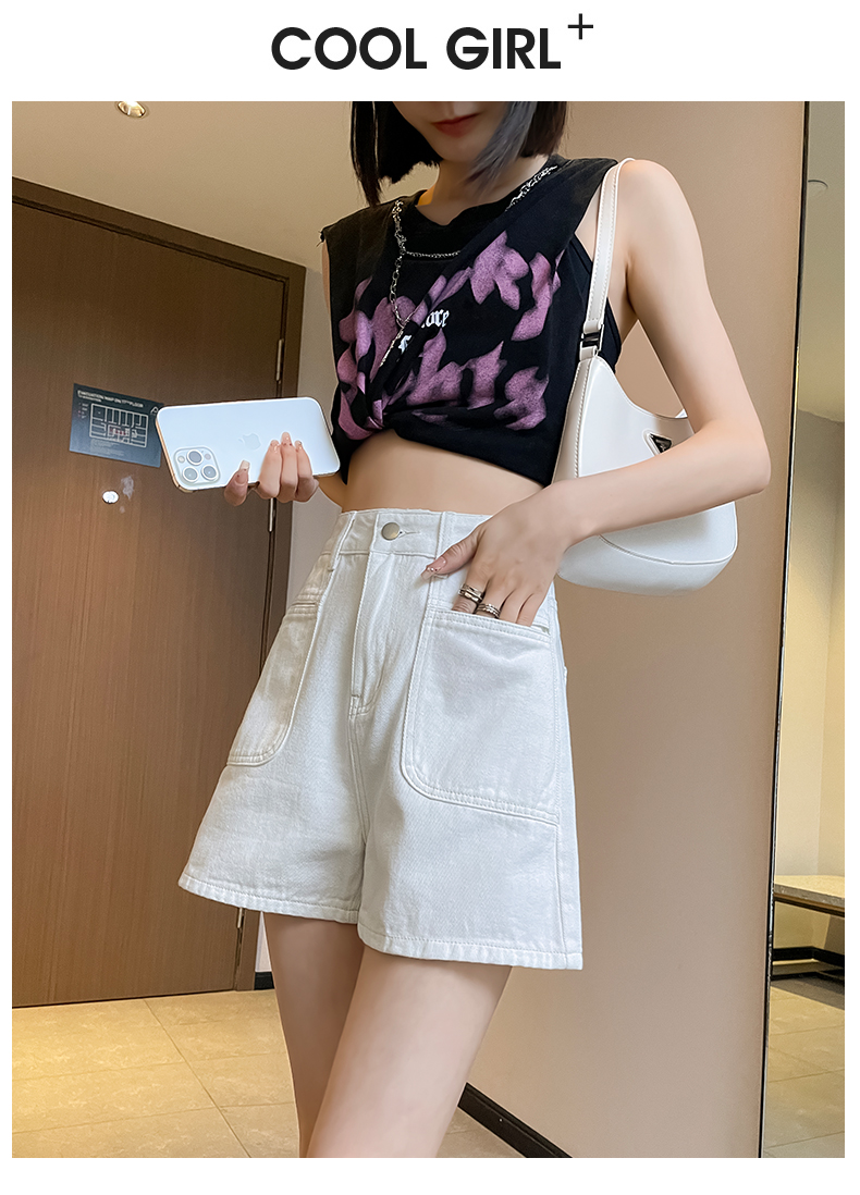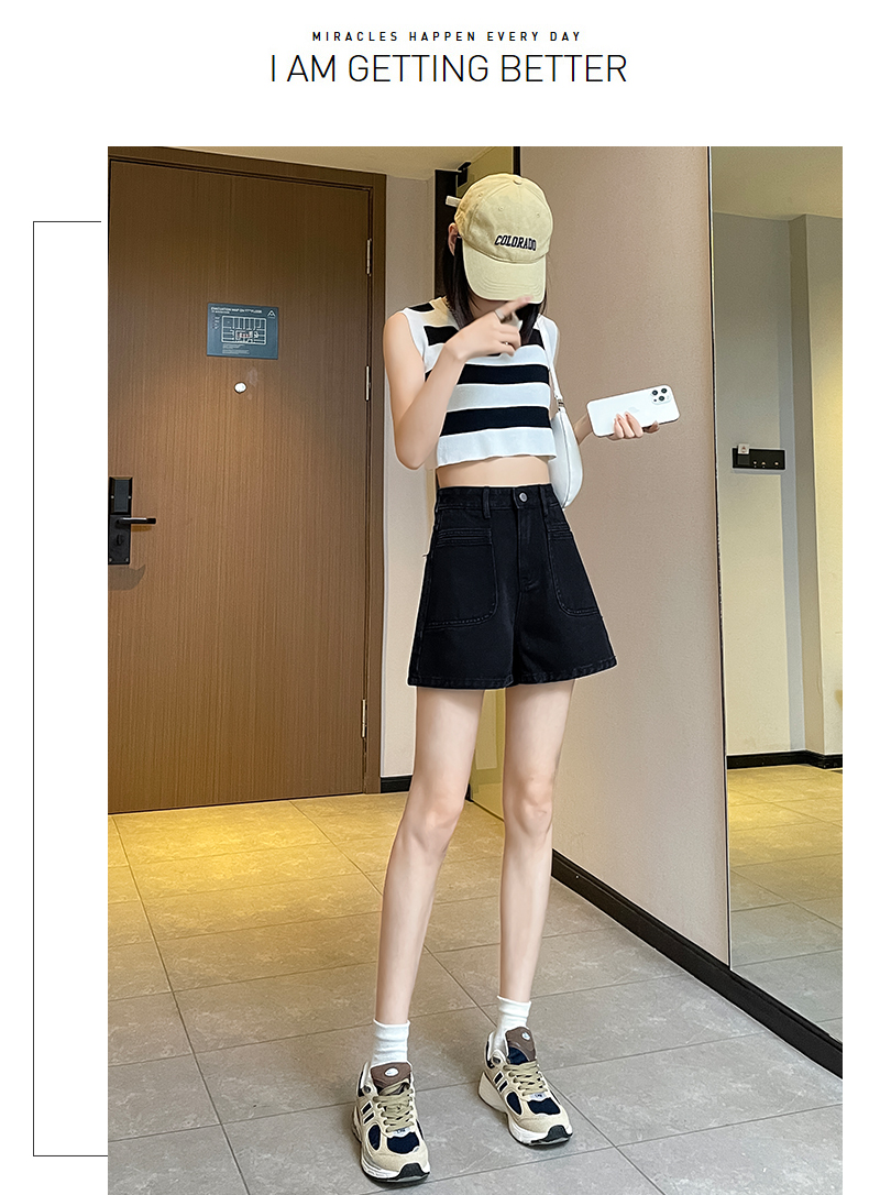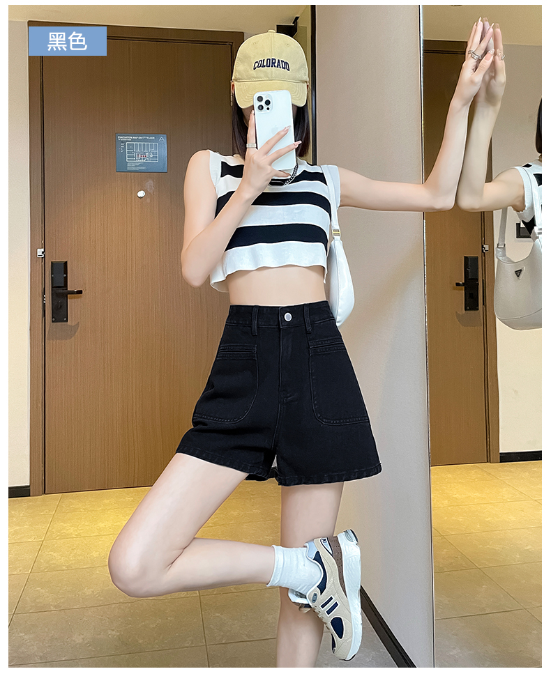 실사 핫걸 데님 반바지 여성 여름 얇은 스타일 하이웨이스트 슬림해 보이는 인터넷 유명인 디자인 센스 작은 키 핫 바지