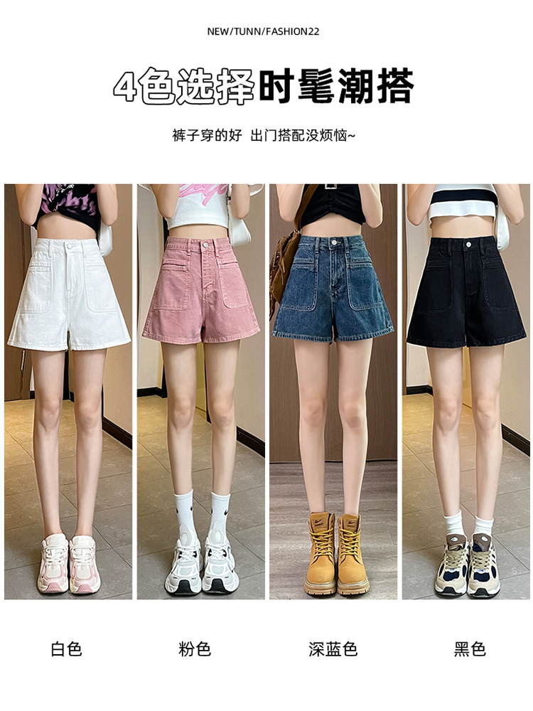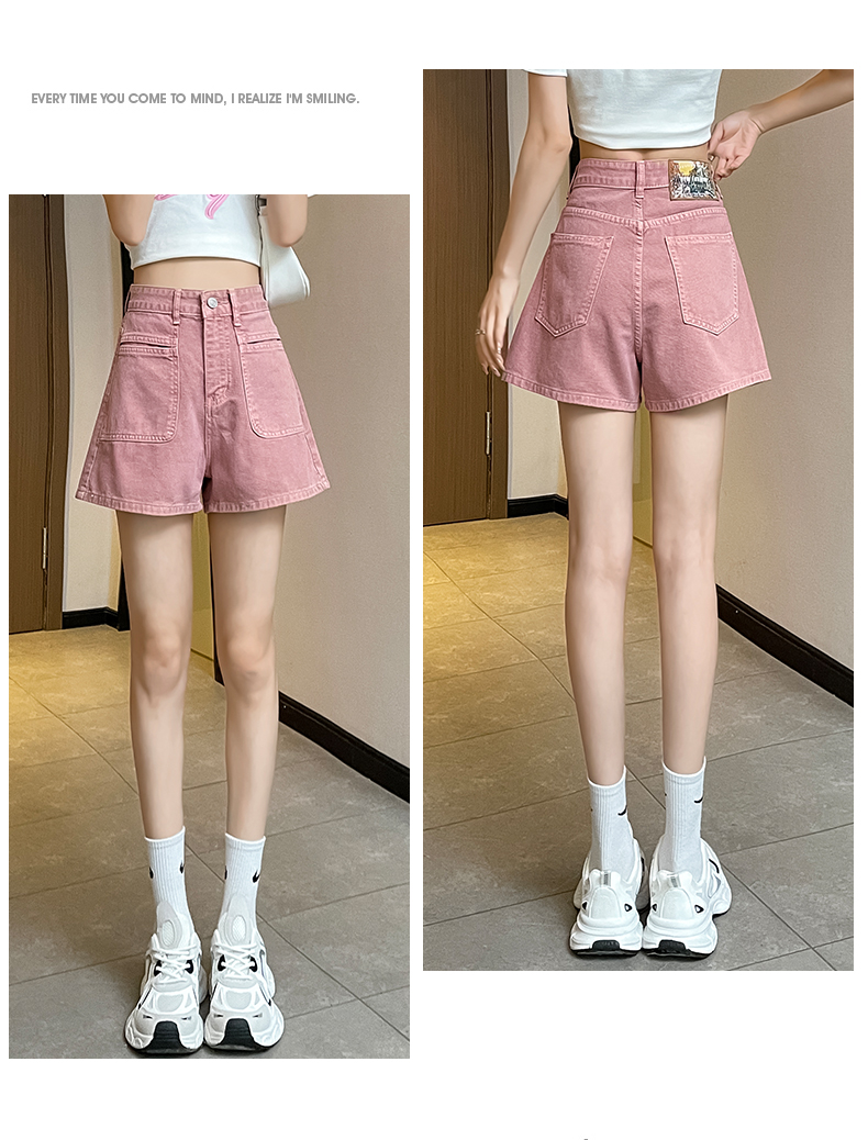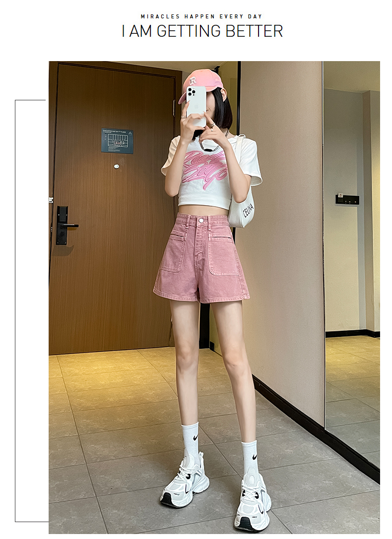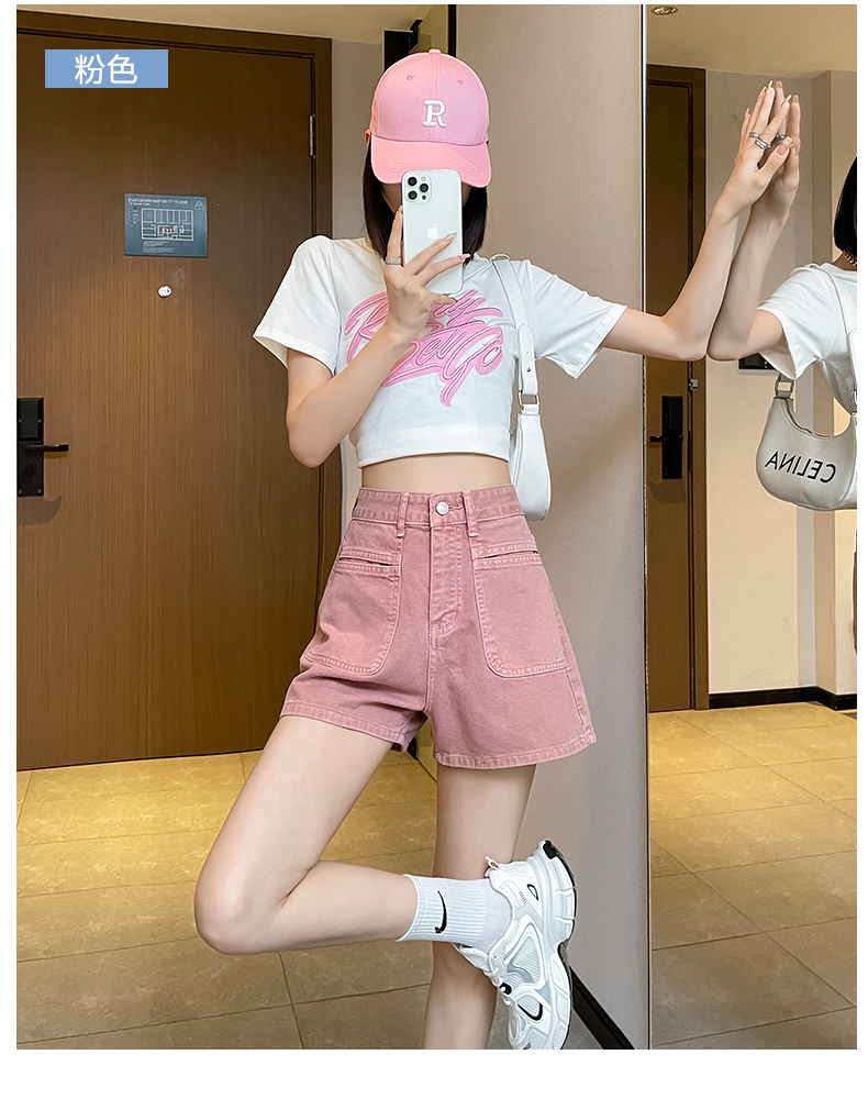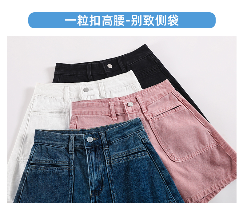 실사 핑크색 데님 짧은 치마바지 여성 여름 얇은 스타일 하이웨이스트 슬림해 보이는 반바지 디자인 센스 인터넷 유명인 핫걸 뜨거운 바지