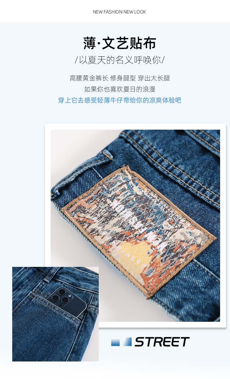 실사 작은 키 8 점 밝은색 넓은 다리 청바지 여성 여름 얇은 스타일 하이웨이스트 루즈핏 디자인 센스 할머니 바지 여성