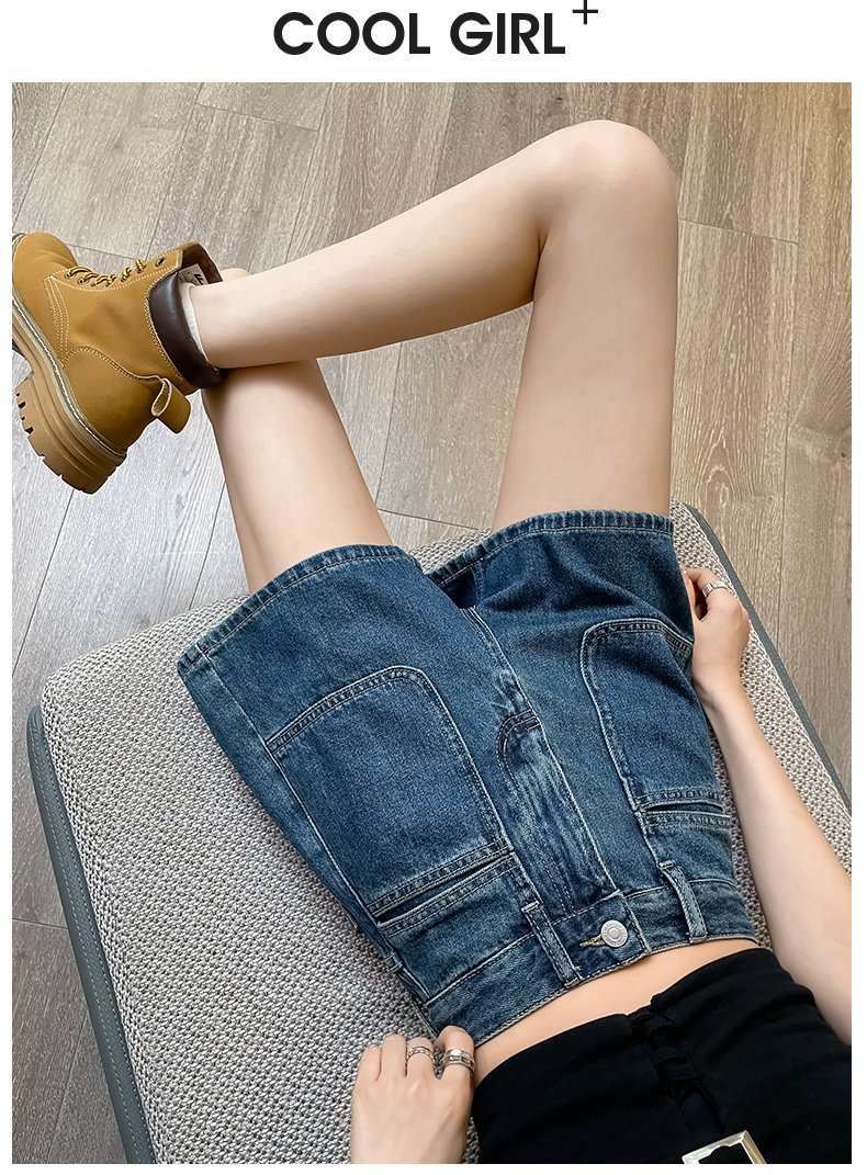 실사 하이웨이스트 넓은 다리 데님 반바지 여성 여름 얇은 스타일 슬림해 보이는 루즈핏 디자인 센스 작은 키 핫걸 핫 바지