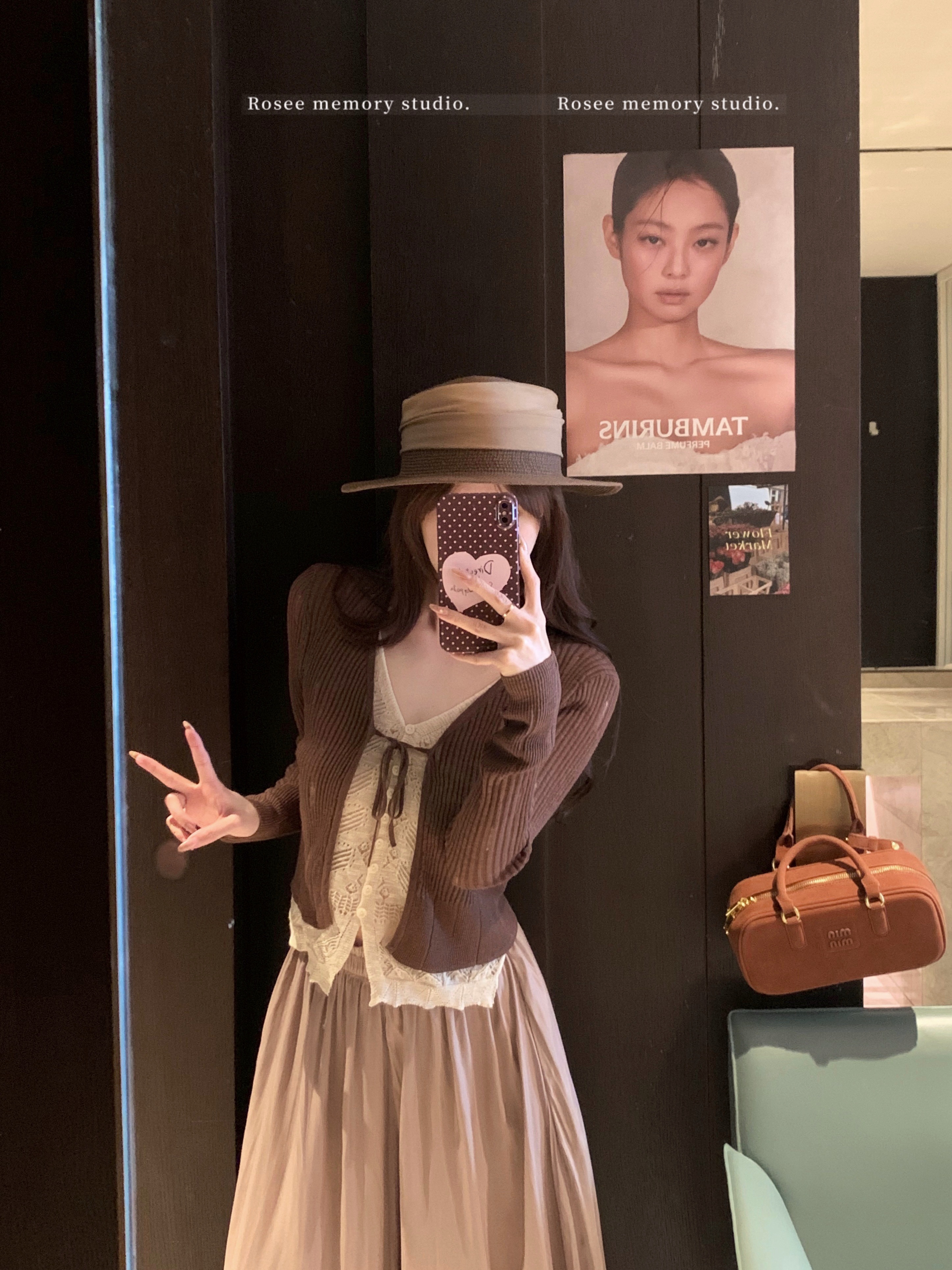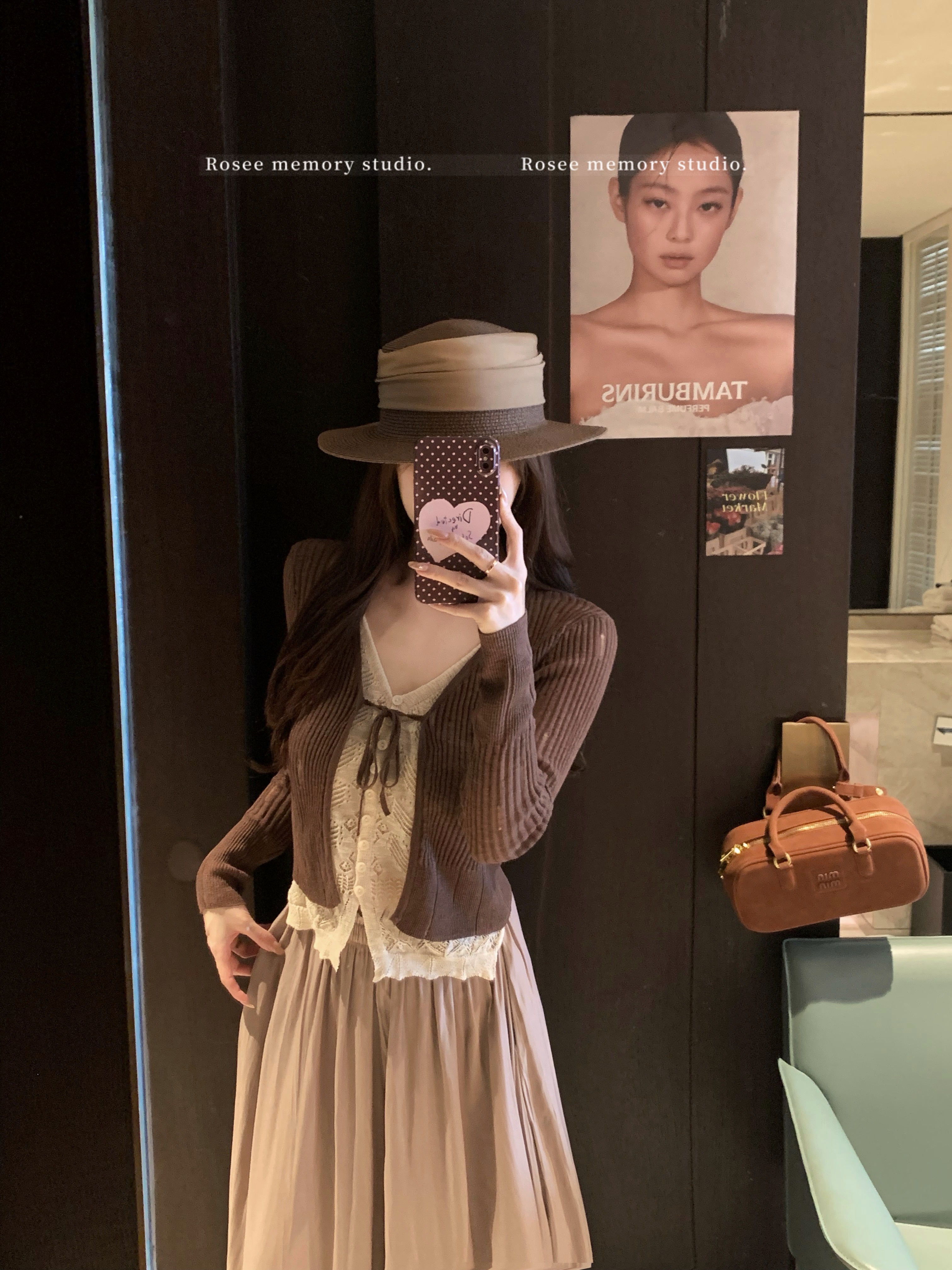 실사 순수한 욕망 몸매 가꾸기 우아함 품격 펌프 Pleat V넥 민소매 조끼 레트로 망사 반신 스커트 도트 무늬 롱 스커트