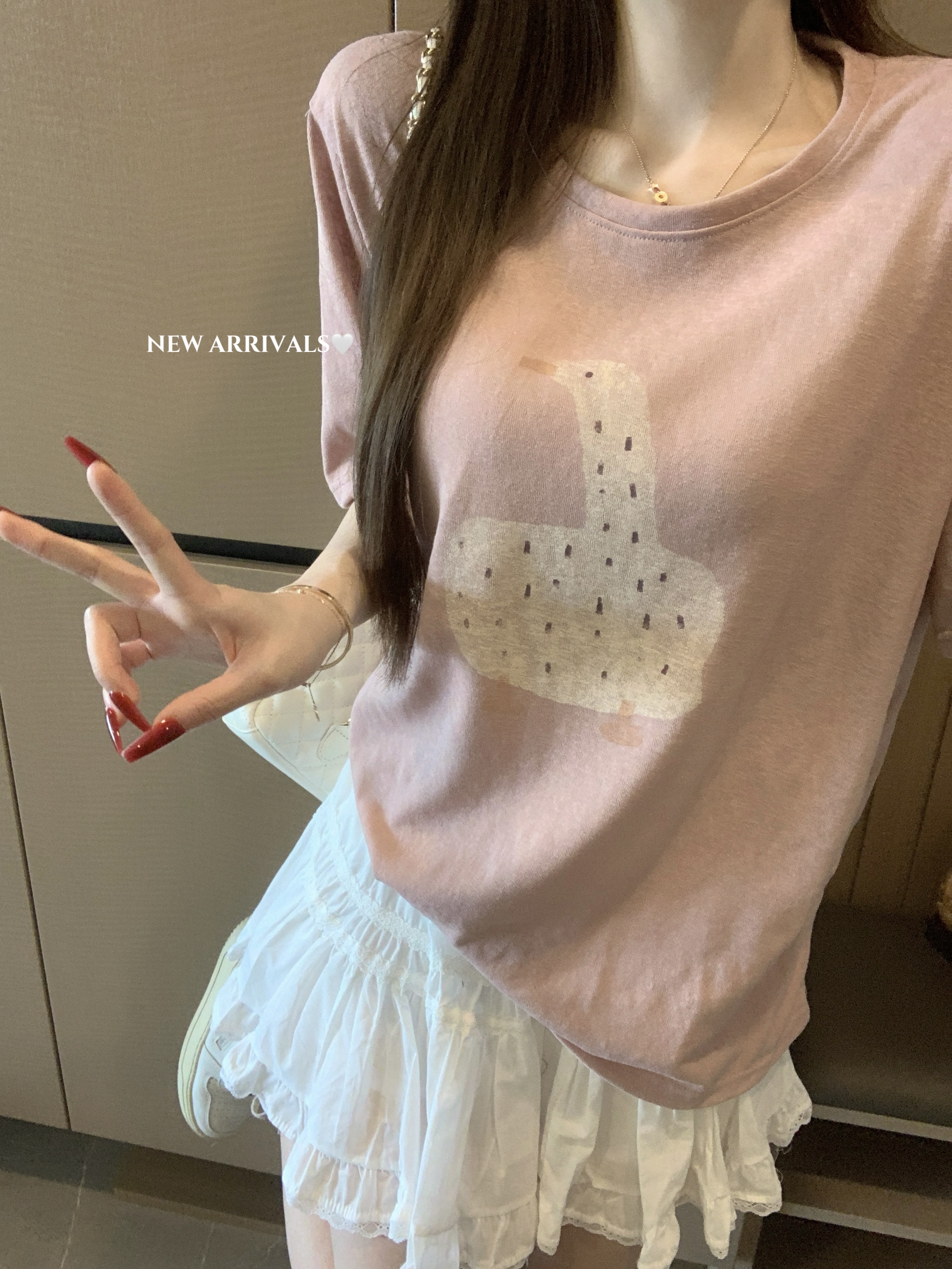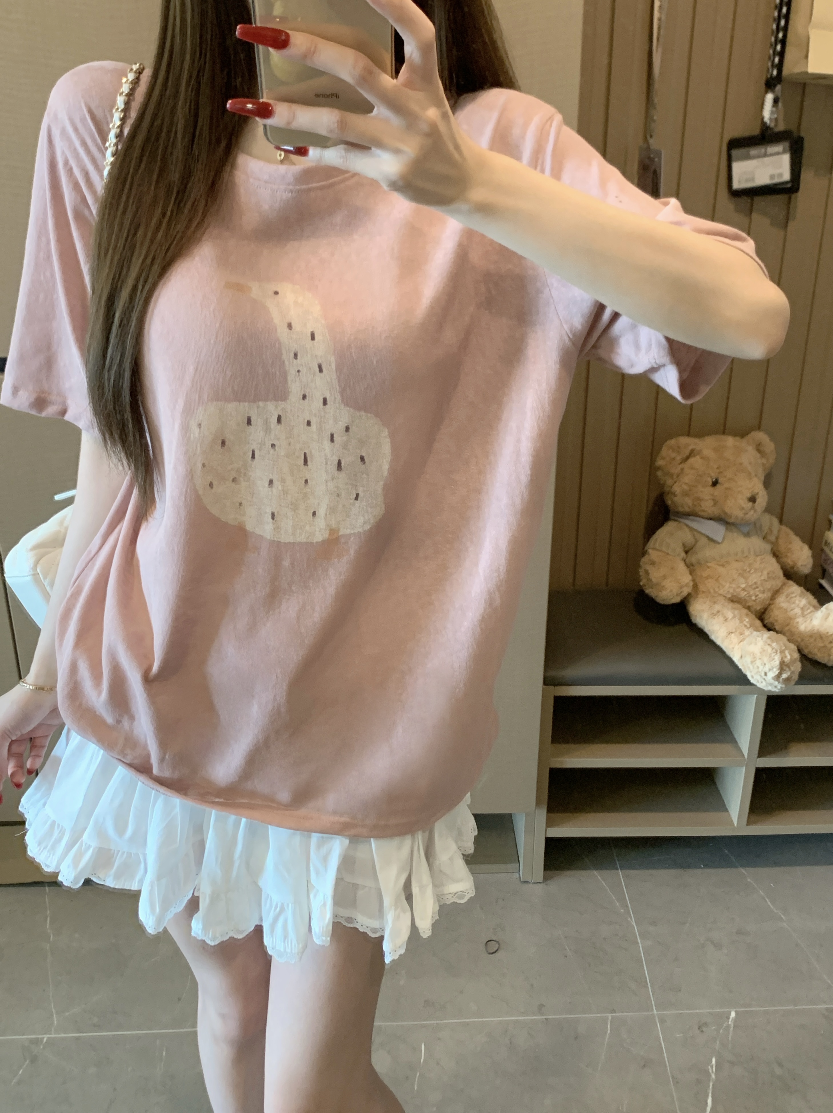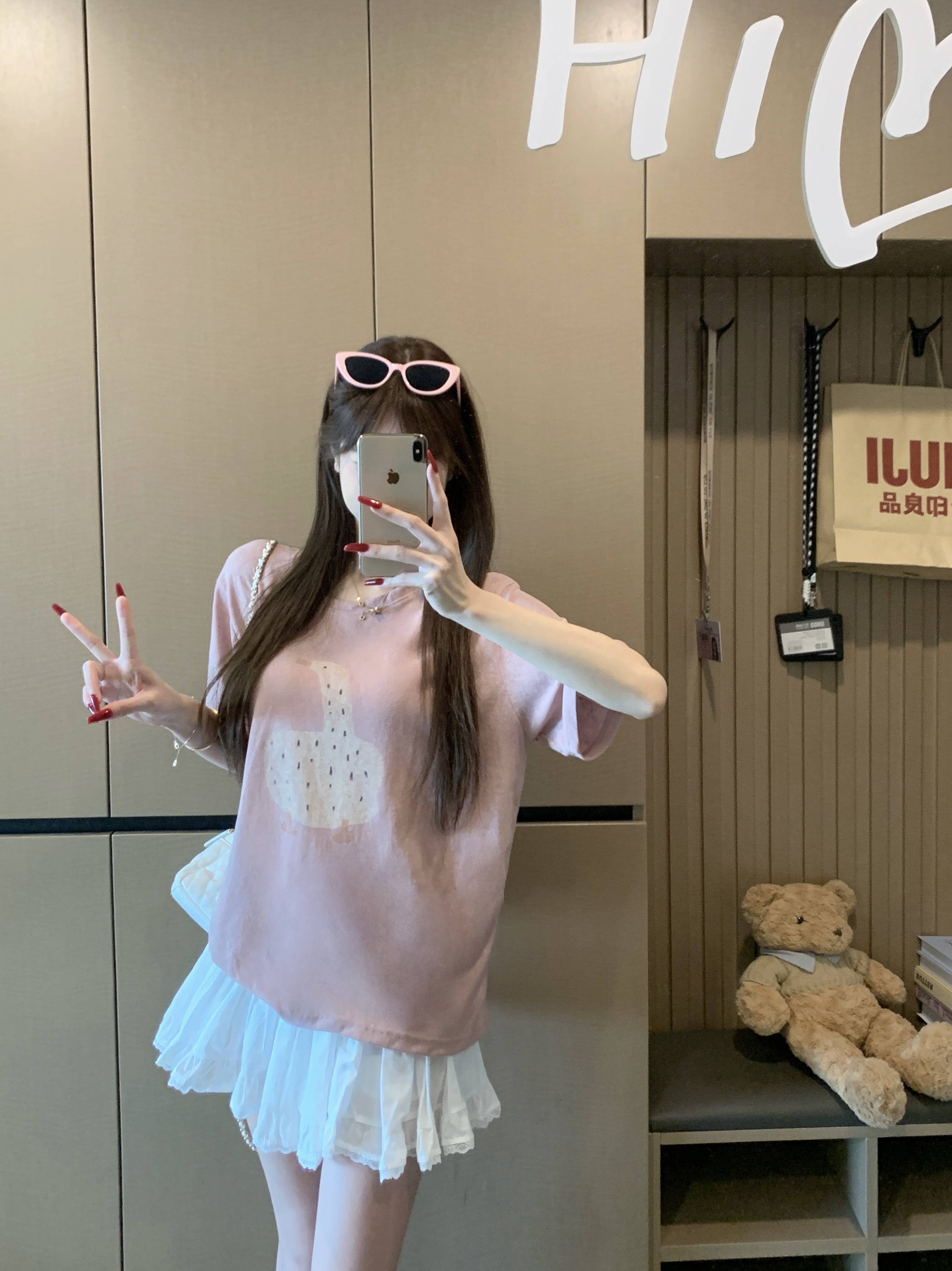 실사 레이스 체크무늬 반팔 여성 셔츠 여름 패치워크 하이웨이스트 루즈핏 한 마디 중간 길이 치마 세트
