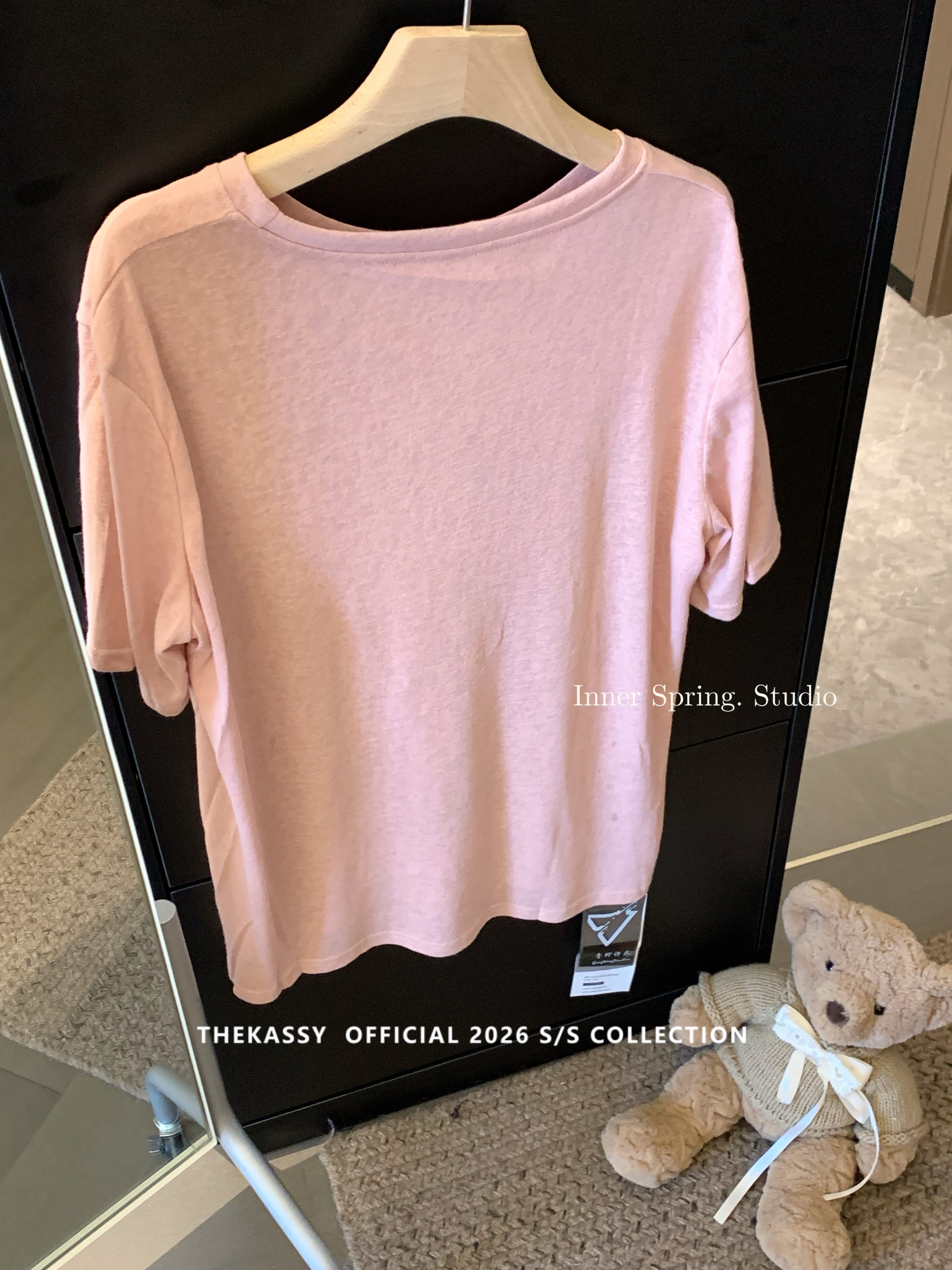 실사 정가 몸매 가꾸기 슬림해 보이는 다용도 기초 섹션 주름 맨위 섹시함 V넥 반팔 티셔츠