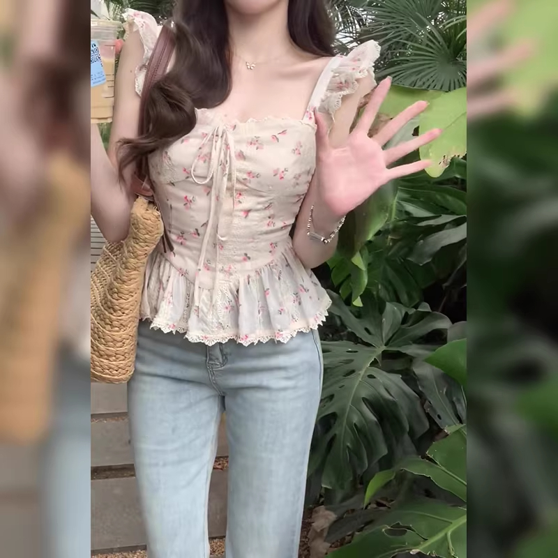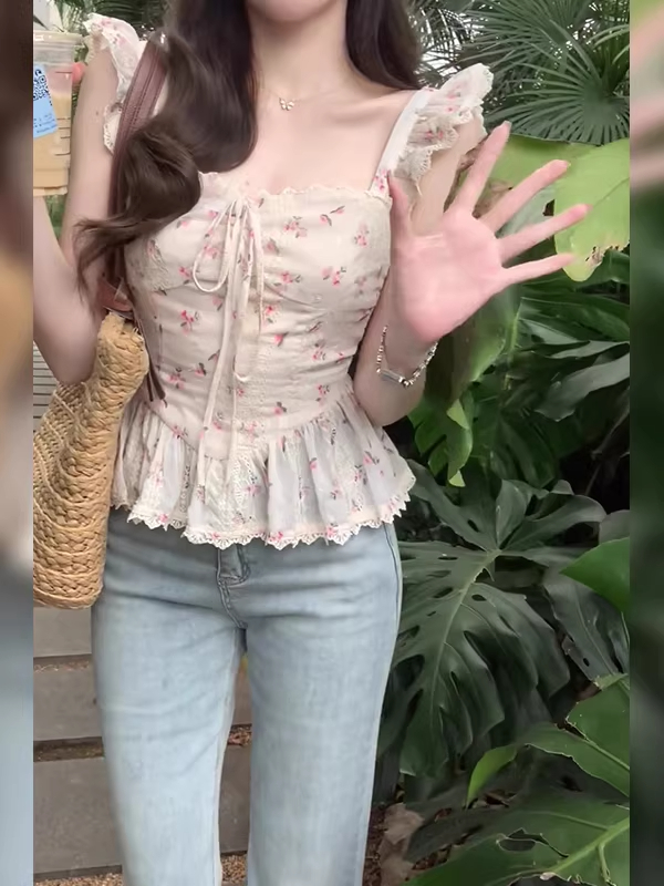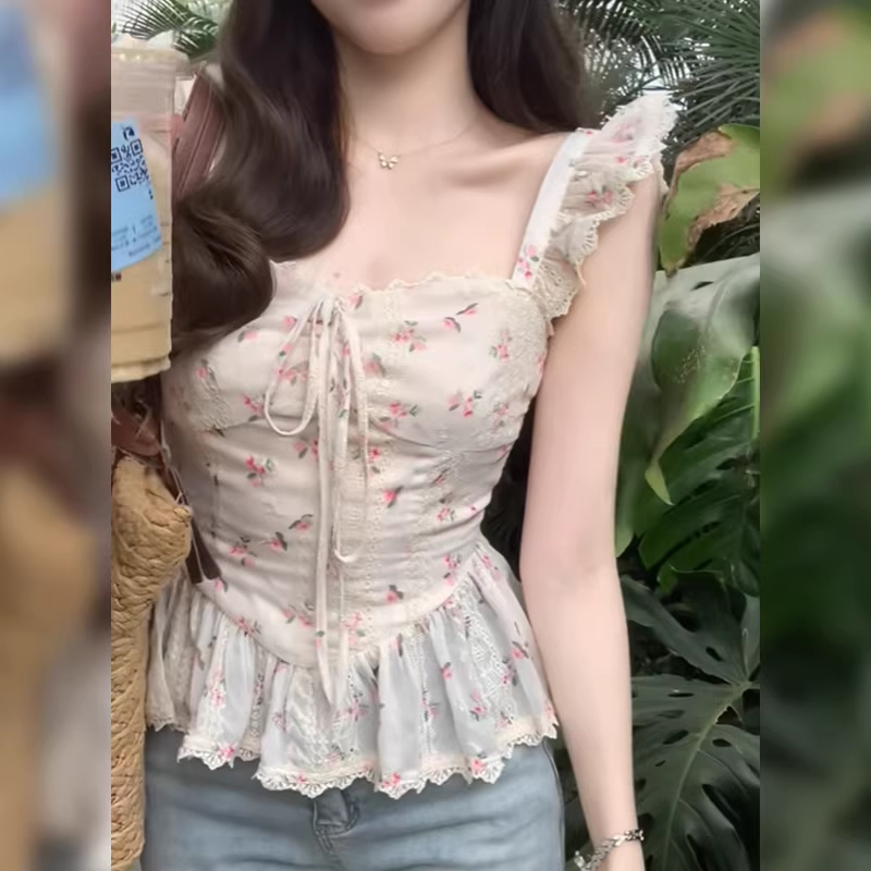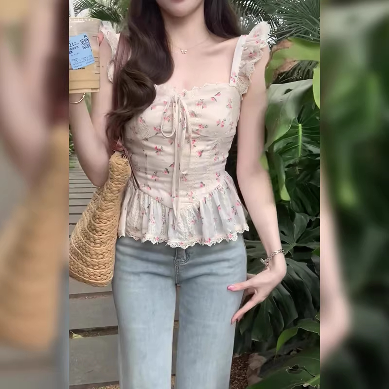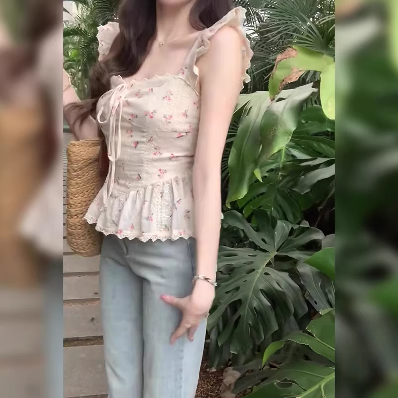 화이트 베이비 칼라 민소매 조끼 티셔츠 여성 2026 새로운 여름 프랑스식 품격 쇼트 스타일 허리 수축 슬림해 보이는 맨위