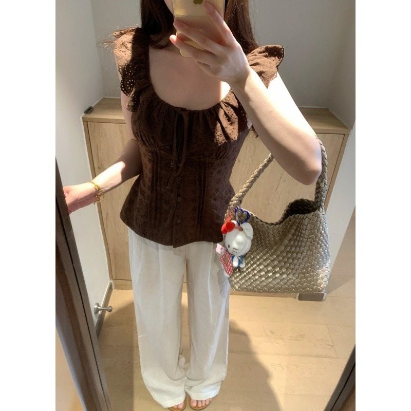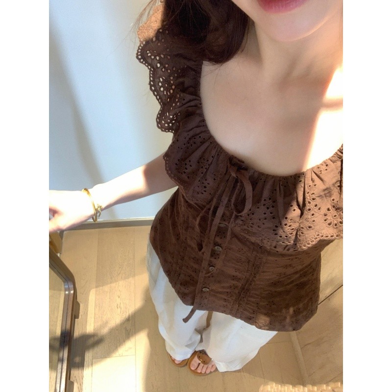 작은 날다 소매 광장 칼라 꽃무늬 여성 셔츠 여름 2026 새로운 프랑스식 디자인 센스 몸매 가꾸기 품격 프릴 맨위