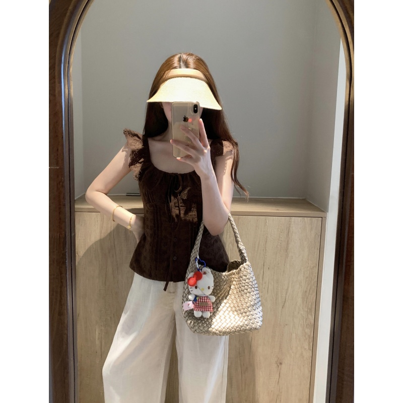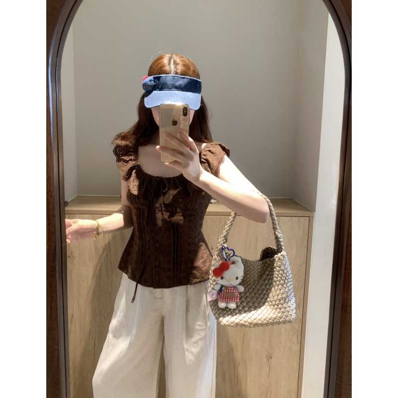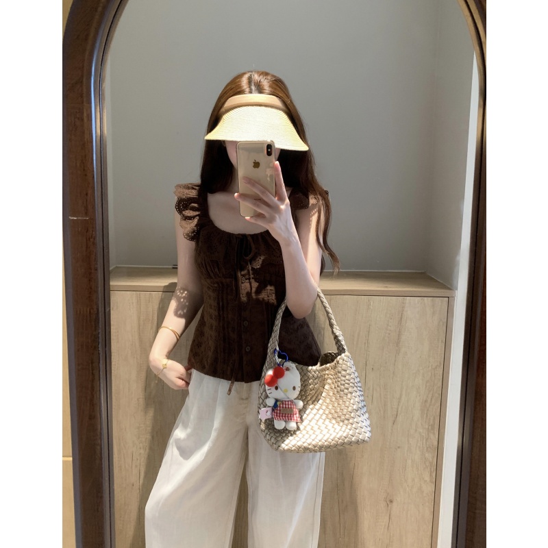 화이트 베이비 칼라 민소매 조끼 티셔츠 여성 2026 새로운 여름 프랑스식 품격 쇼트 스타일 허리 수축 슬림해 보이는 맨위