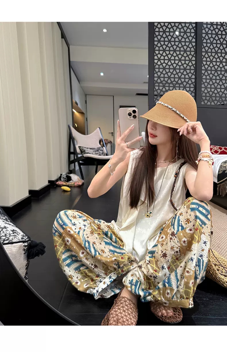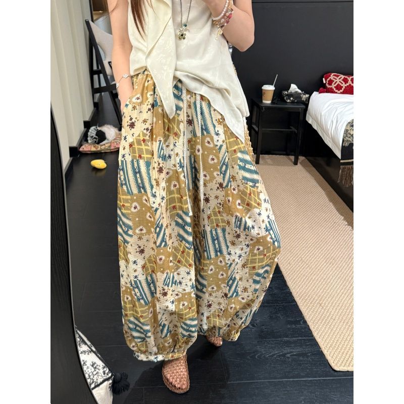 실사 26 여름 야외 얇은 원단 벨트 방귀 커튼 캐주얼 바지 발을 낮추십시오. 펌프 로프 루즈핏 넓은 다리 길이 바지 다용도 운동 바지