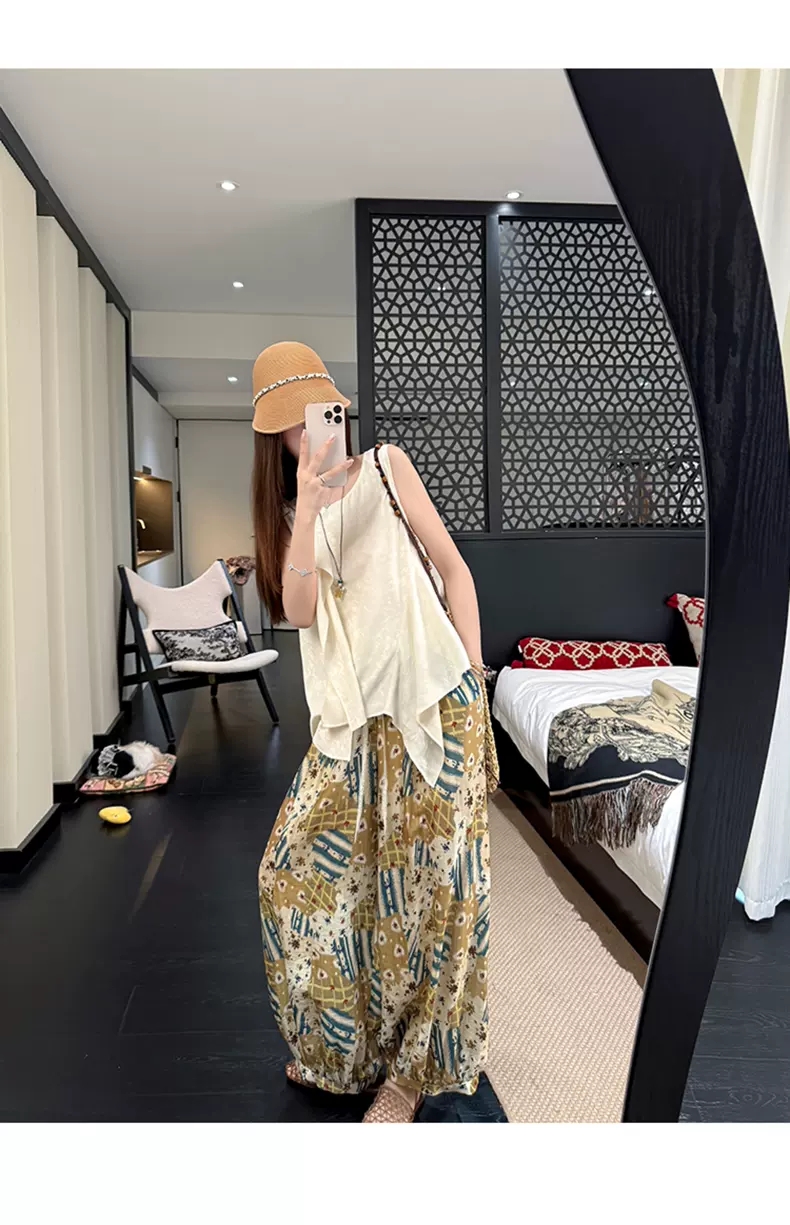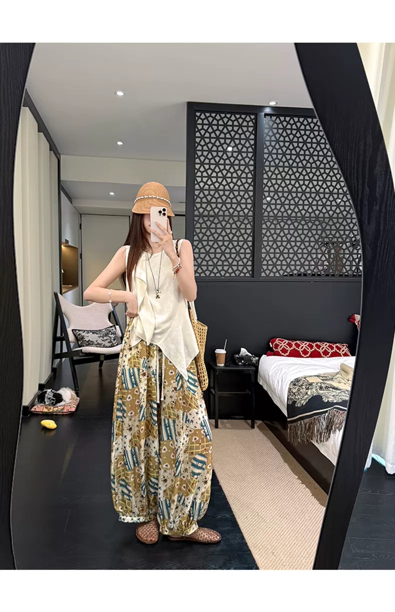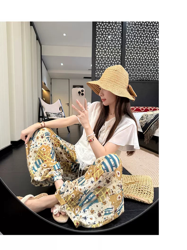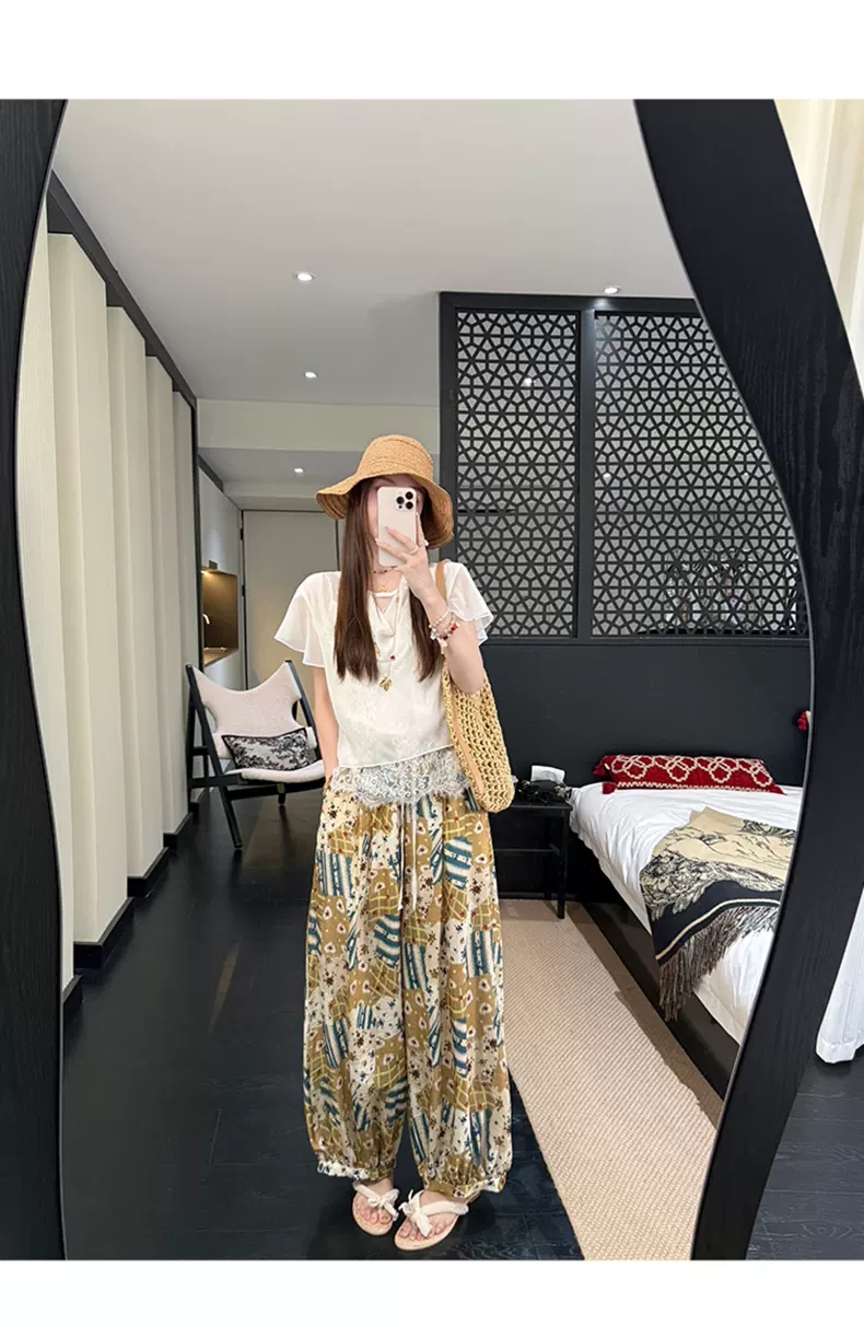한국 스타일 프릴 9 포인트 꽃밭 바지 여성 2026 여름 디자인 센스 허리밴드 루즈핏 와이드 레깅스 바지