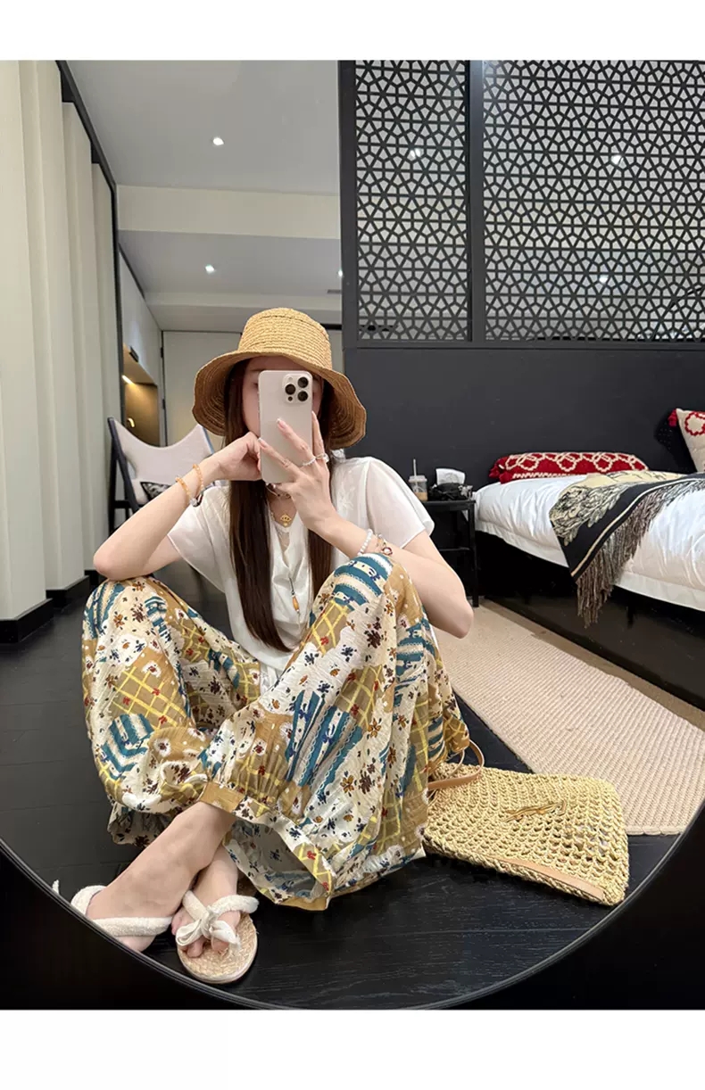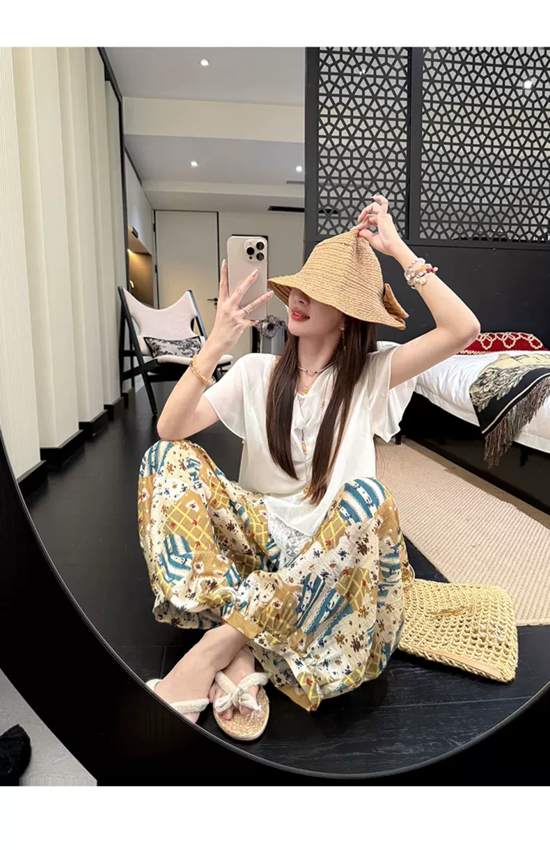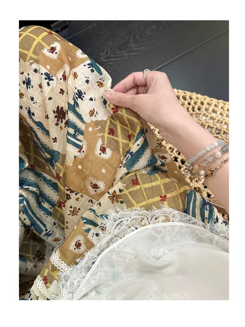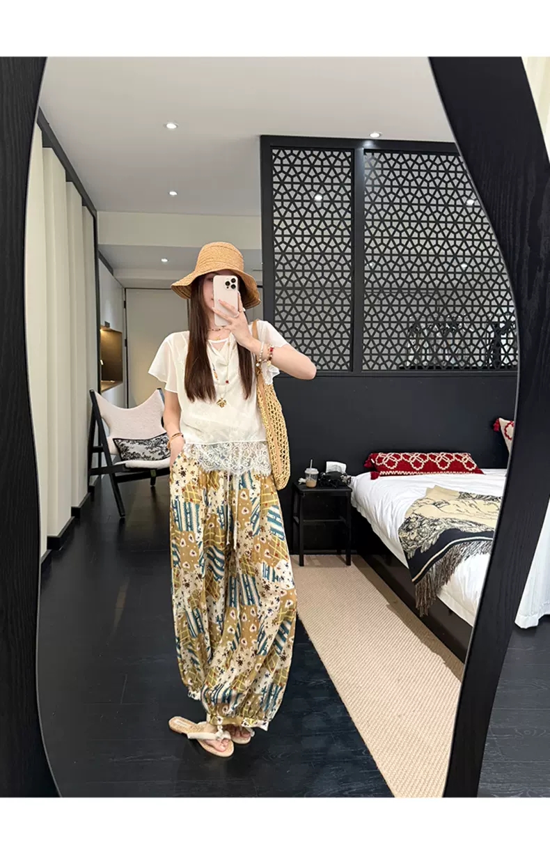 자수 레이스 와이드 레깅스 바지 여름 새로운 디자인 센스 슬림해 보이는 레이스 패치워크 도루 센스 캐주얼 바지