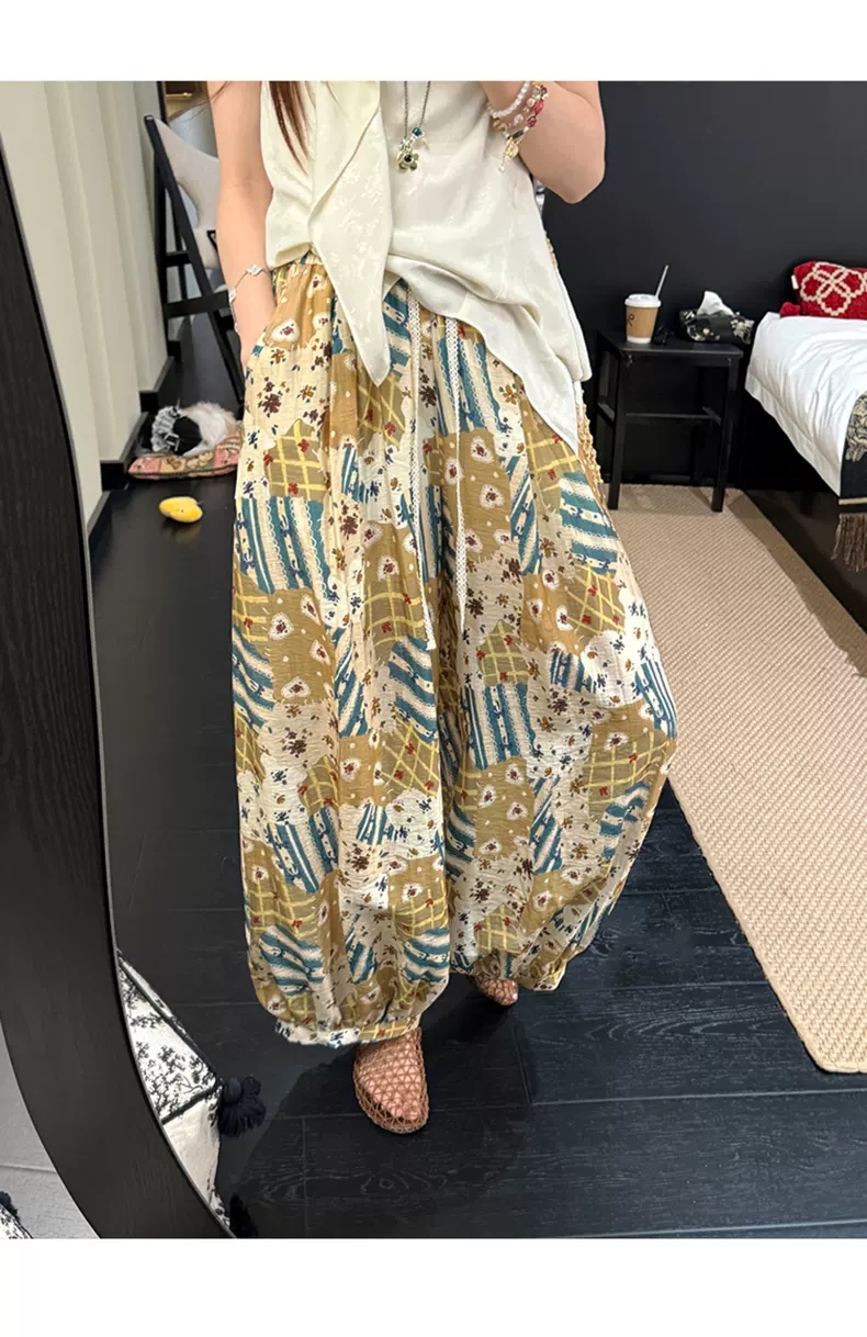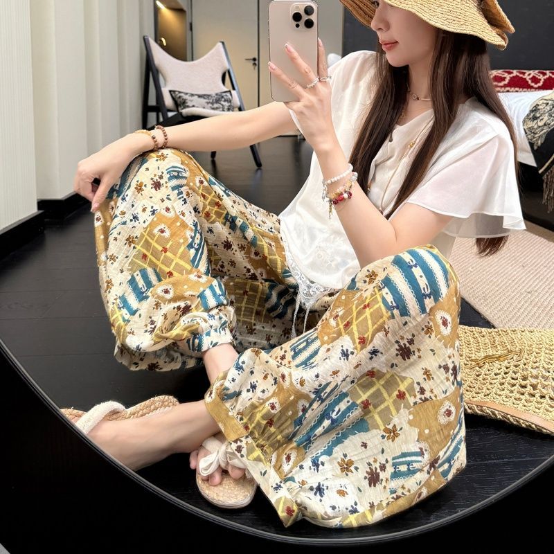 실사 프릴 방귀 커튼 캐주얼 바지 2026 여름 조거 둘 착용 달콤함 풍선 바지 작은 키 넓은 다리 길이 바지