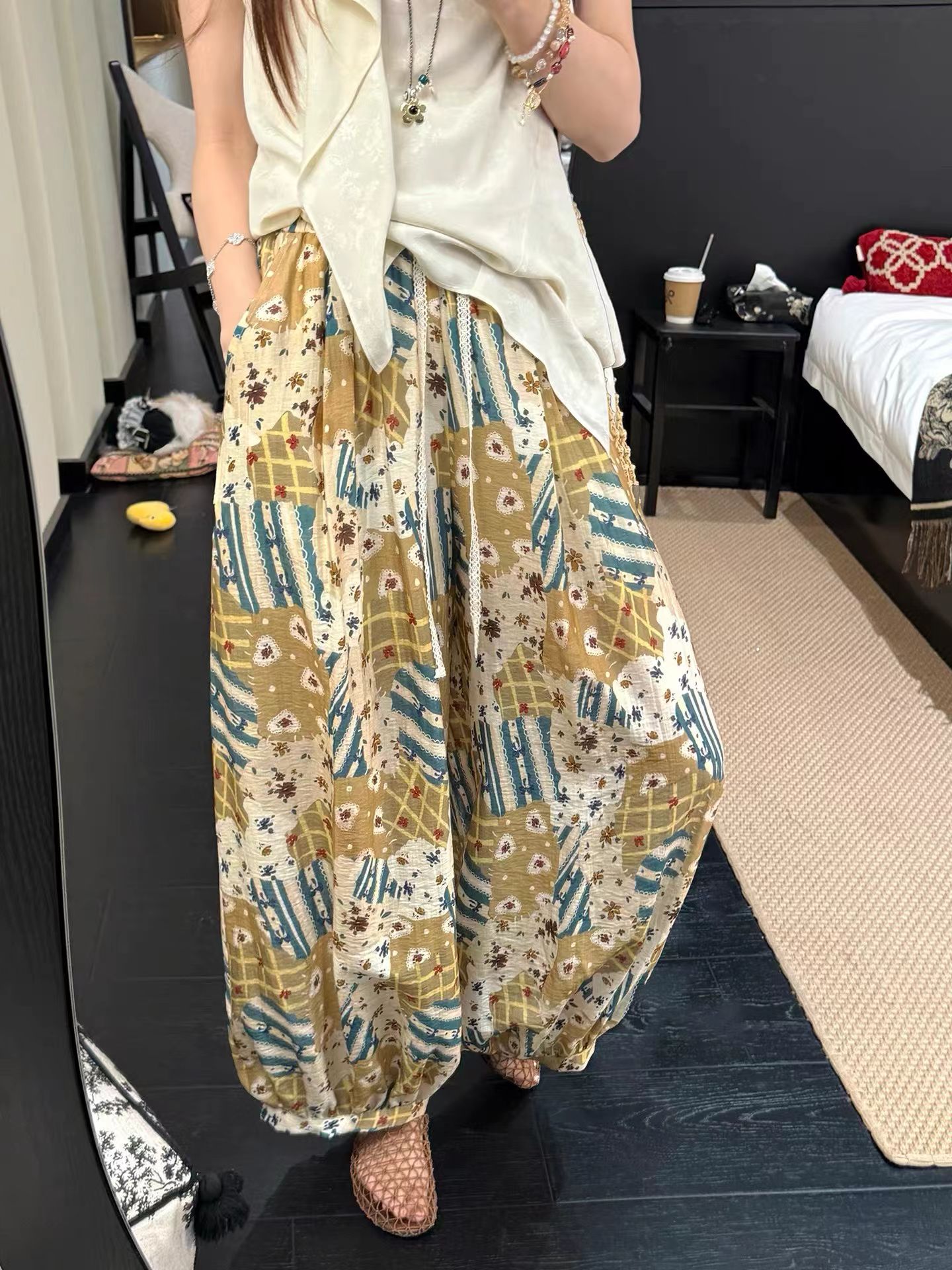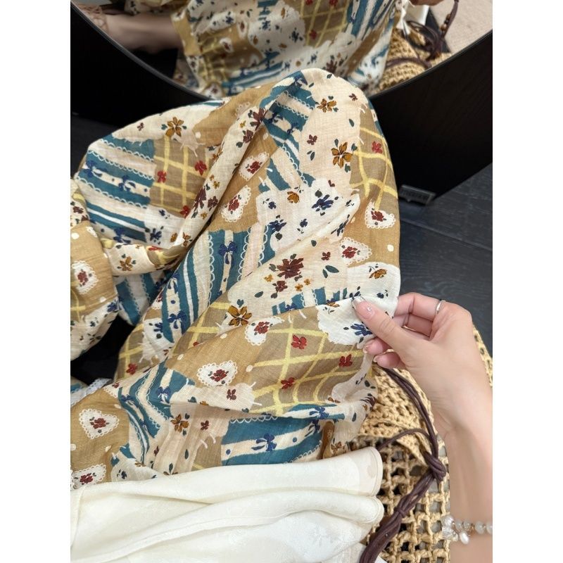 2026 새로운 일본식 홀로우 아웃 자수 패치워크 허리밴드 루즈핏 캐주얼 연령 감소 순면 다용도 와이드 레그 팬츠