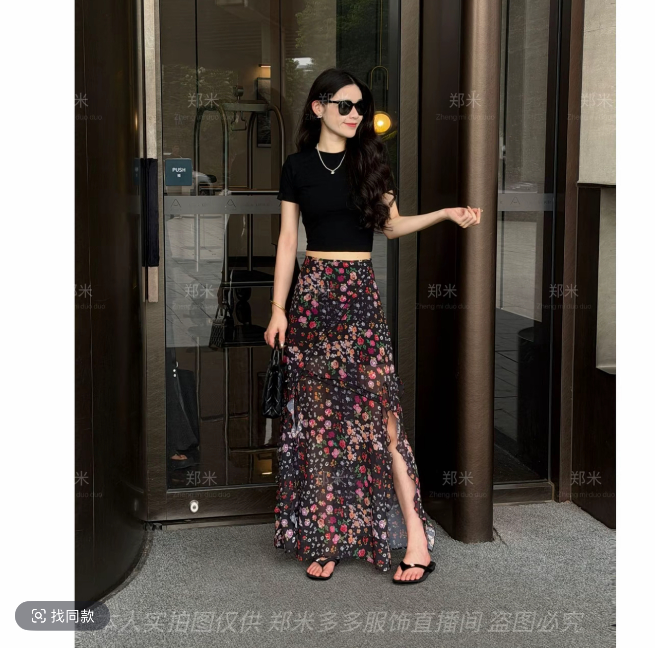 레트로 프린트 하이웨이스트 한 마디 반신 스커트 여름 새로운 고급 센스 자이언트 잘 생긴 슬림해 보이는 품격 길다 치마 세트