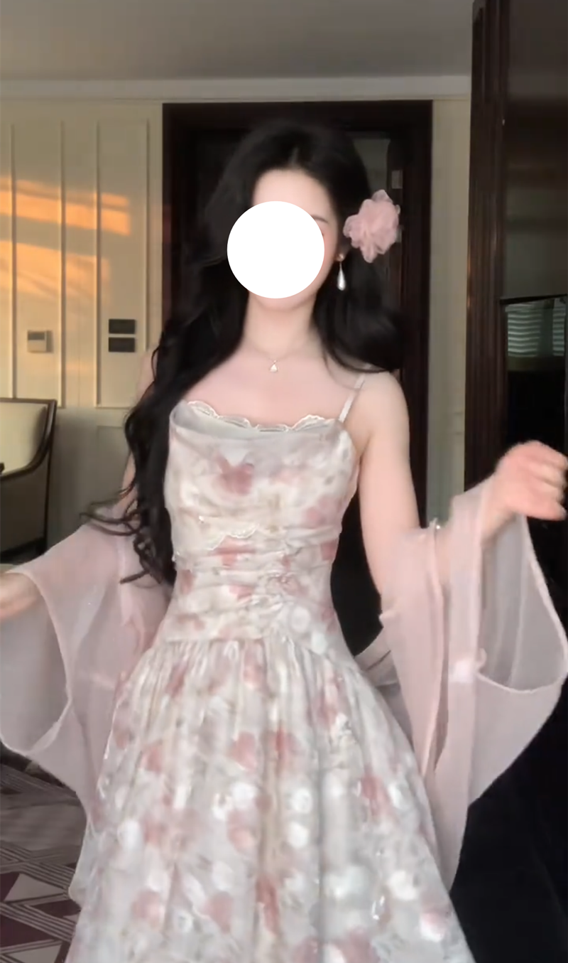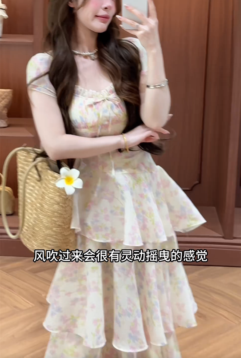 실사 꽃 객실 나비 꿈 여름 달콤한 스타일 그라데이션 꽃무늬 롱 스커트 허리 수축 슬림해 보이는 드레스