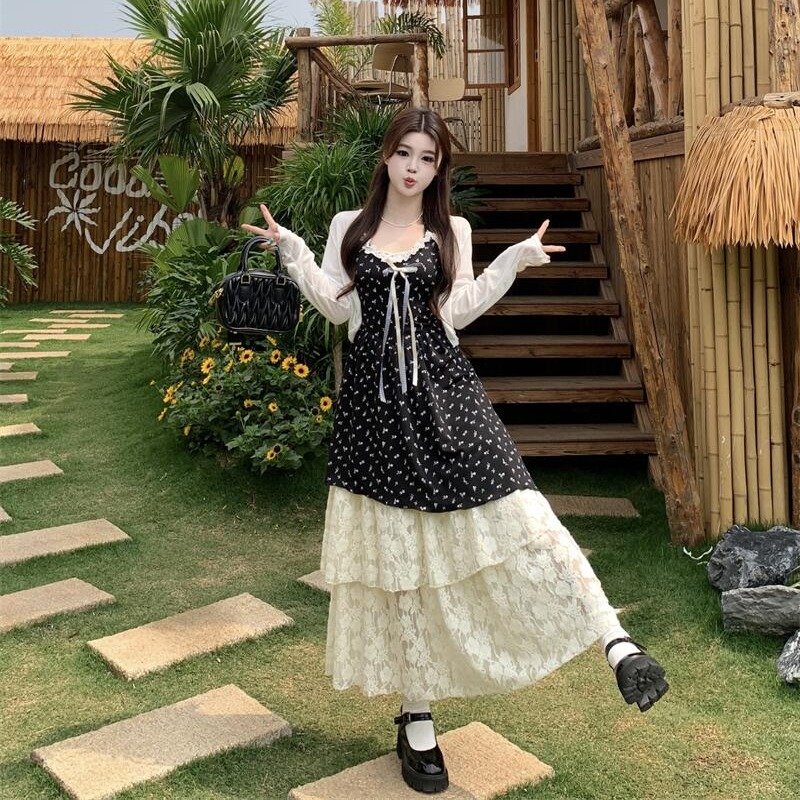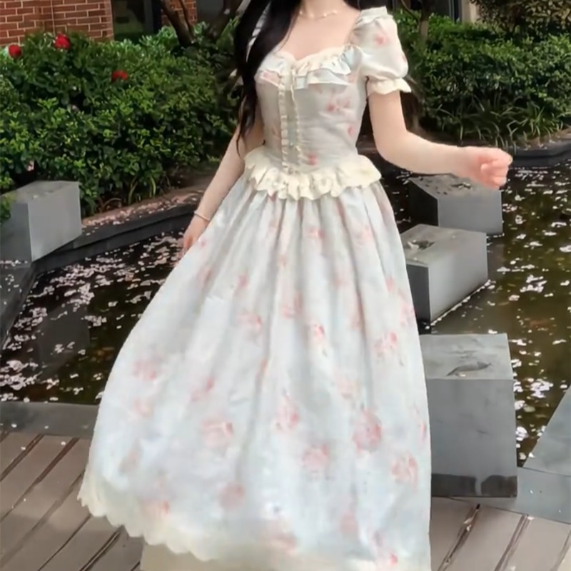 실사 프랑스식 아름다운 달콤함 꽃무늬 슬립 여성 드레스 여름 새로운 아름다운 치마