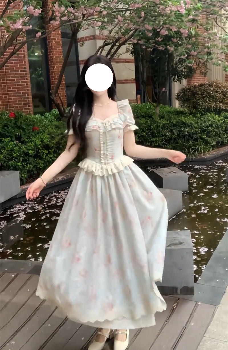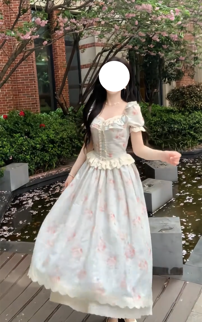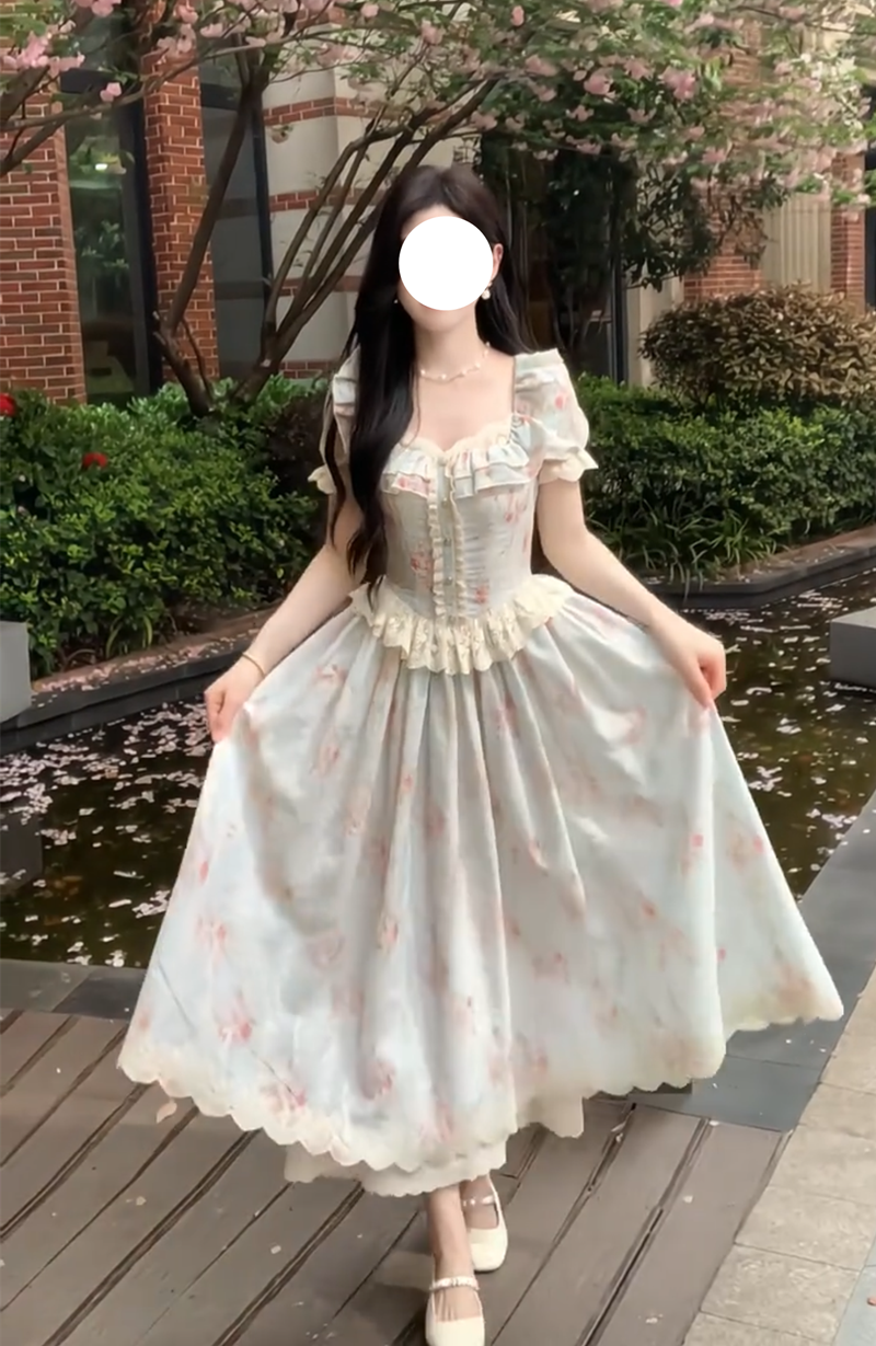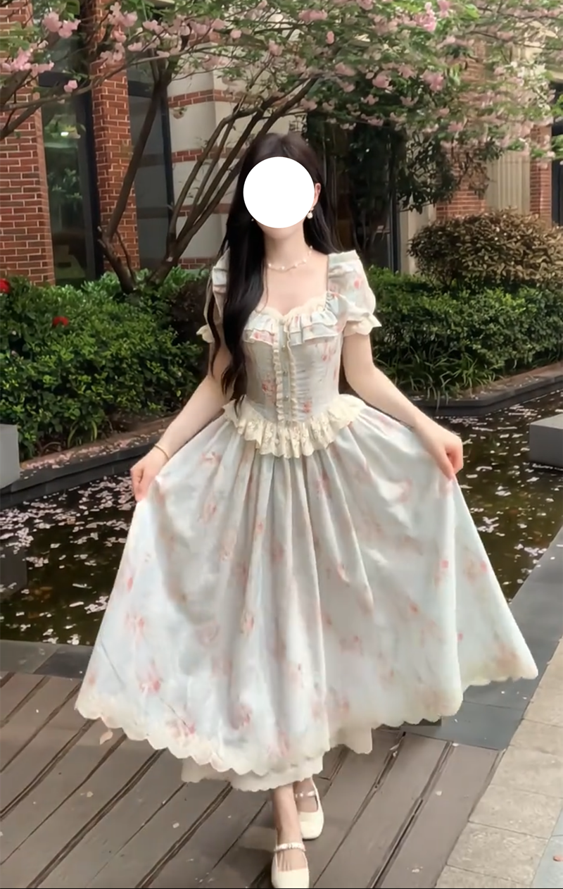 실사 여름 프랑스식 소녀 바람 패치워크 레이스 드레스 허리 수축 슬림해 보이는 한 마디 드레스