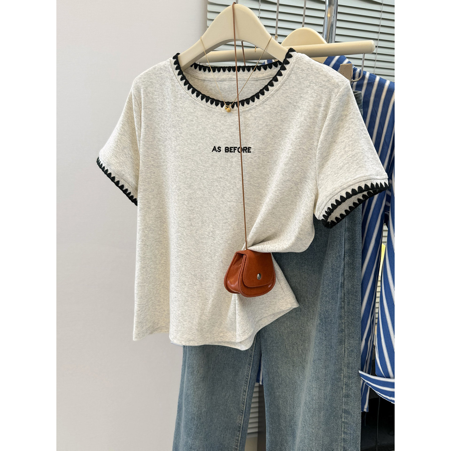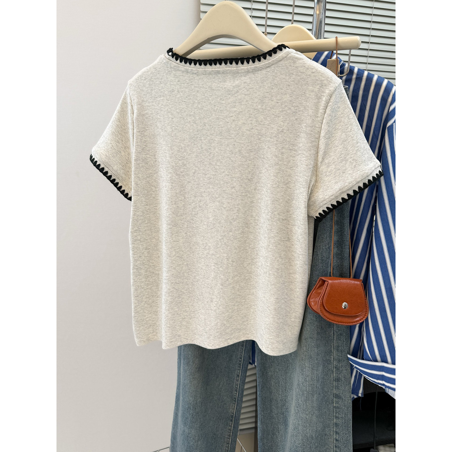 순면 리브 한 부서 달콤한 매운맛 반팔 티셔츠 여름 한국 스타일 몸매 가꾸기 인사이드 가져 가라. 외출용 기본 셔츠 u 칼라 긍정적 인 어깨 의류