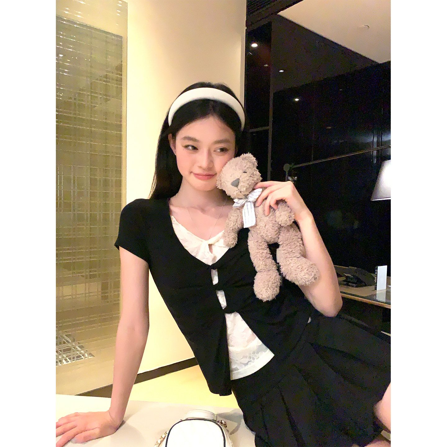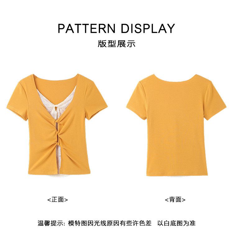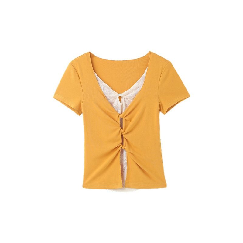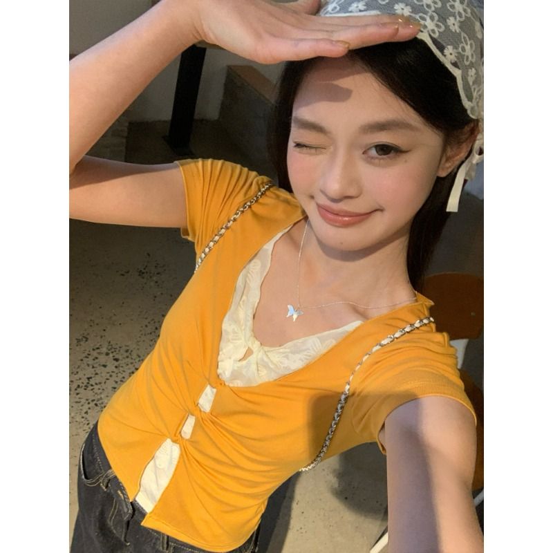 작은 키 홍콩 느낌 매듭 디자인 불규칙 반팔 티셔츠 여성 여름 달콤함 주름 몸매 가꾸기 쇼트 스타일 맨위