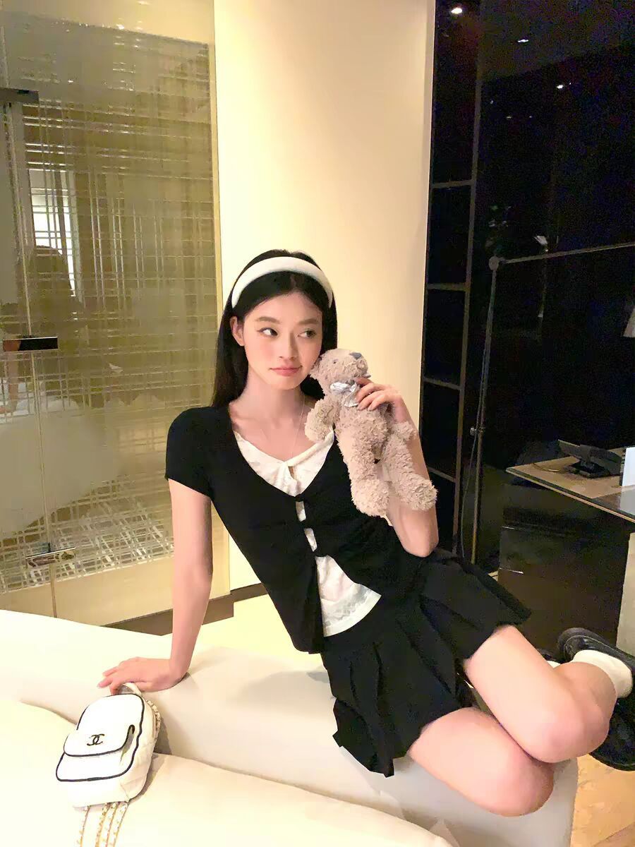 여름 새로운 투피스 슈트 일본식 작은 키 달콤함 학원 스타일 체크무늬 패치워크 맨위 케이크 반신 스커트 여성