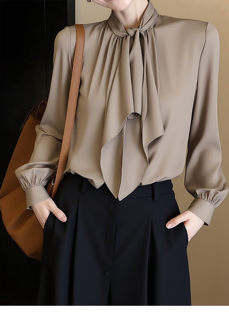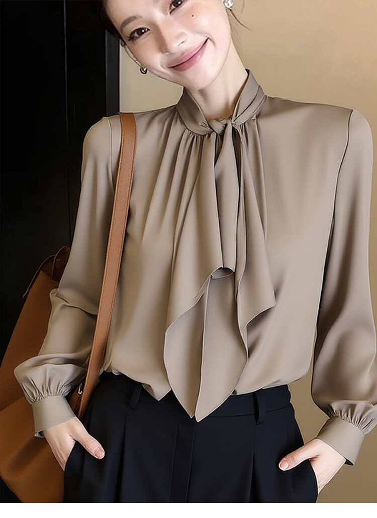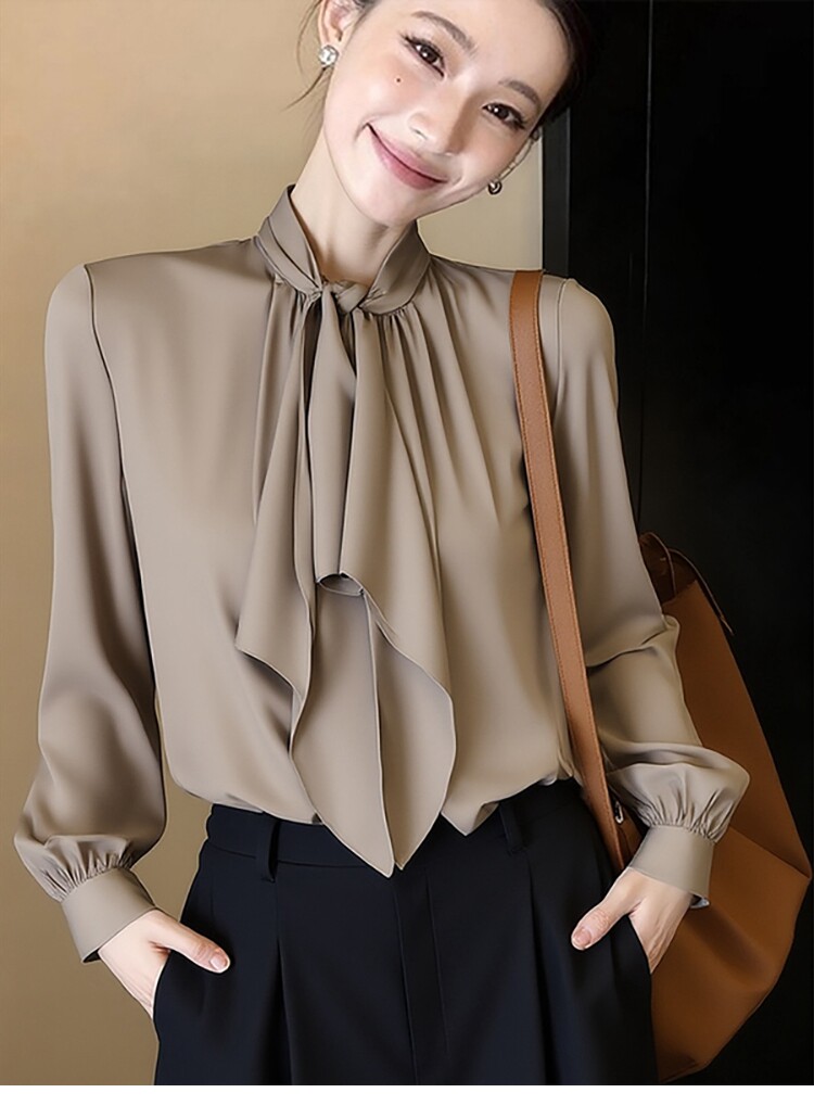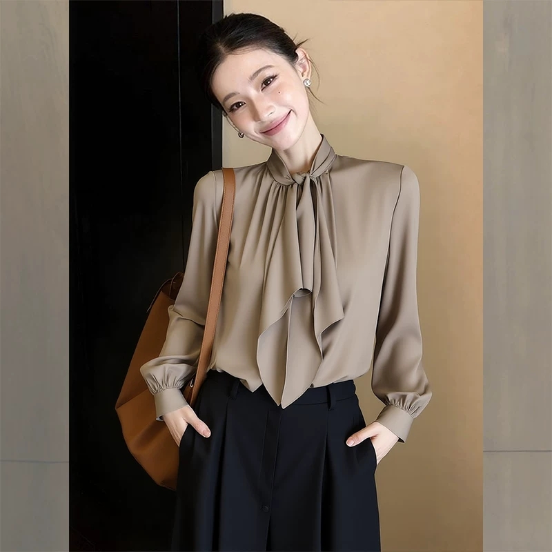 프랑스식 하늘색 리본 여성 셔츠 2026 년 봄 새로운 긴팔 빛 요리 한 우아함 바람 패션 외국 가스 셔츠
