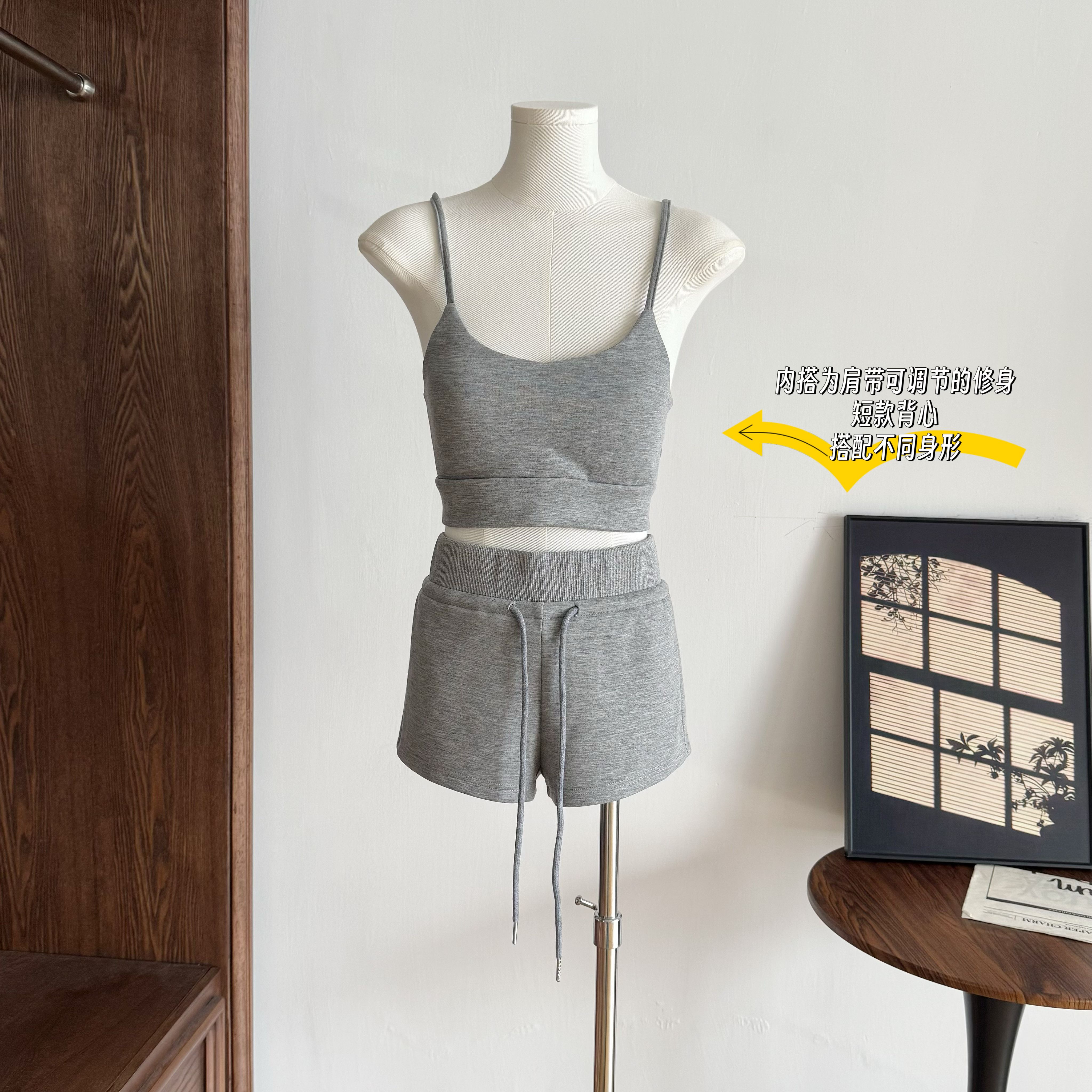 fart shop 아메리칸 캐주얼 중 로우 웨이스트 몸매 가꾸기 리브 허리 머리 캐주얼 바지 여성 봄 여름 반바지 웨이 바지