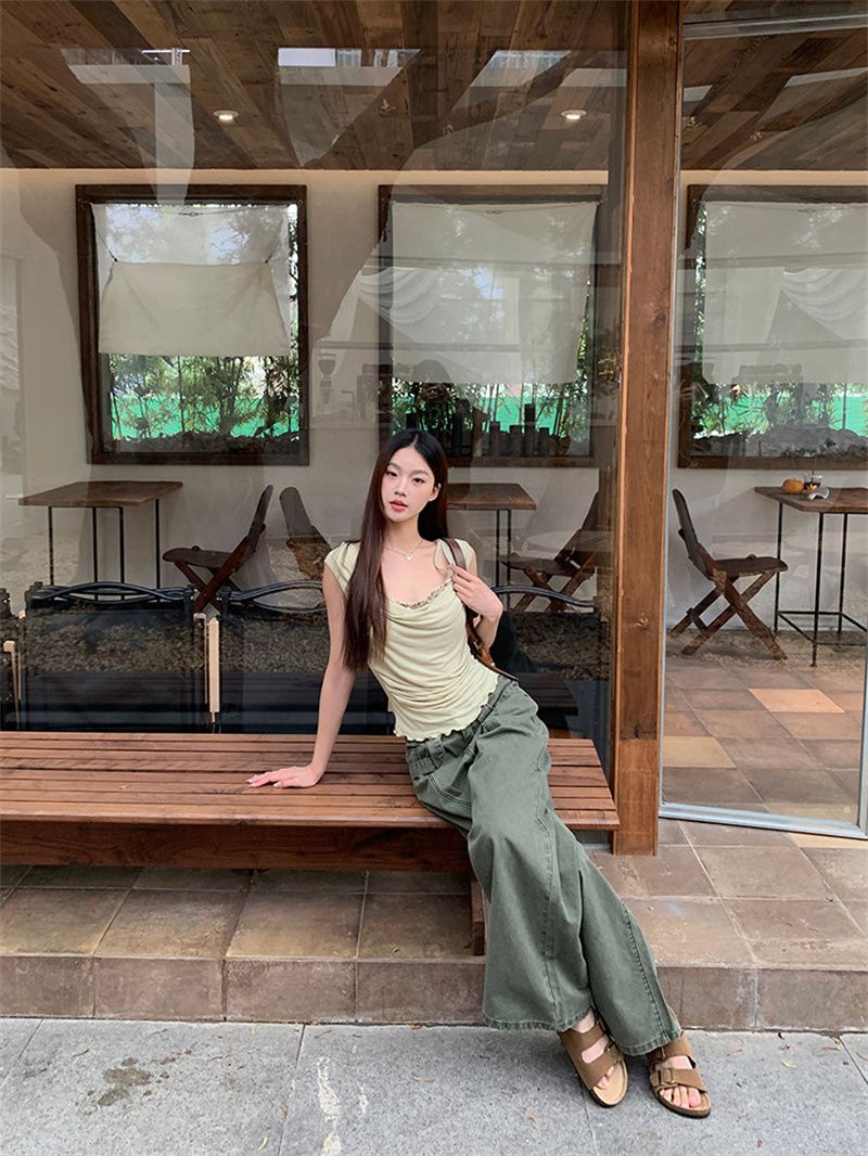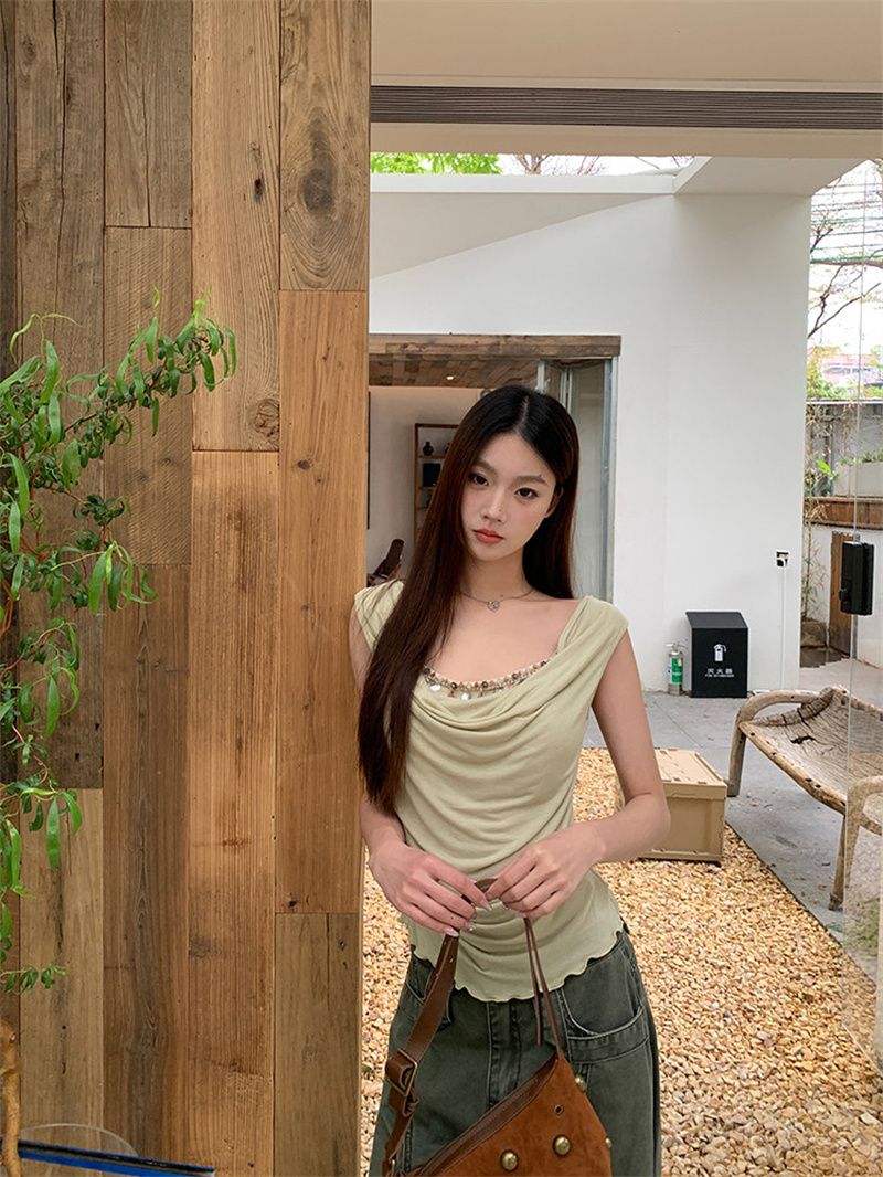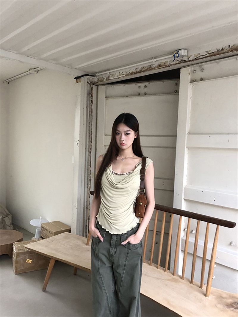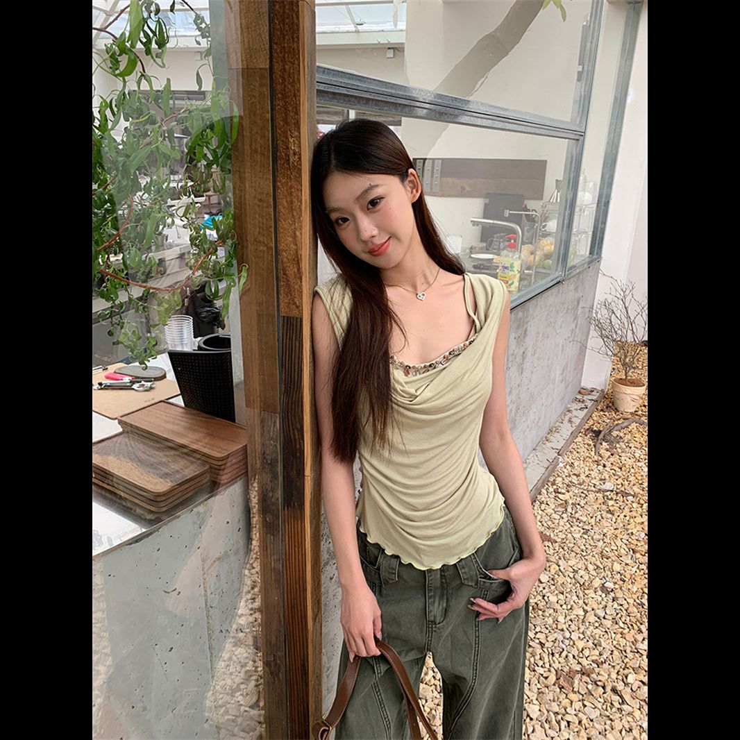 240 그램 순면 리브 92 면 8 암모니아 Lun 레이스 조각 불규칙 디자인 센스 몸매 가꾸기 슬림해 보이는 민소매 조끼