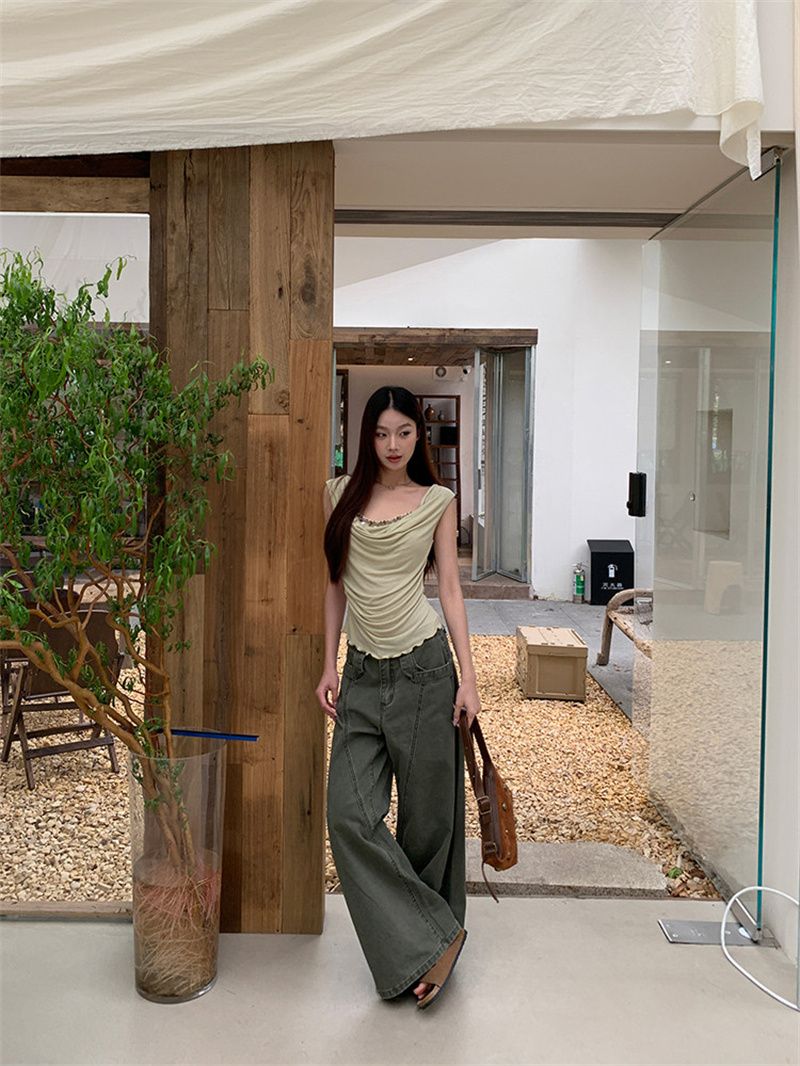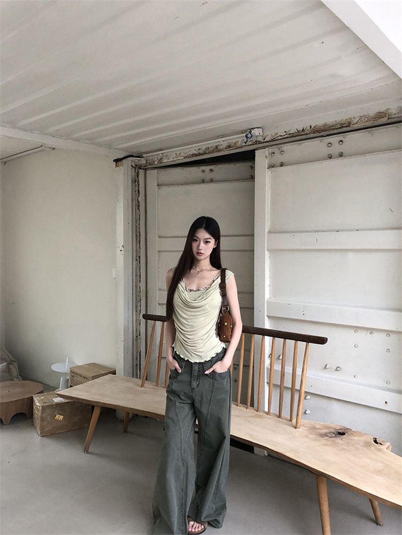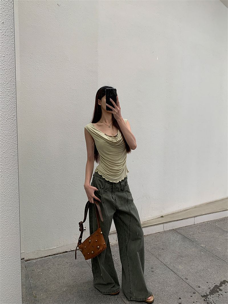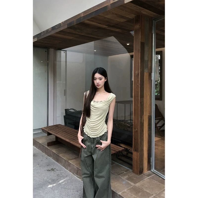 240 그램 순면 리브 92 면 8 암모니아 Lun 레이스 조각 불규칙 디자인 센스 몸매 가꾸기 슬림해 보이는 민소매 조끼