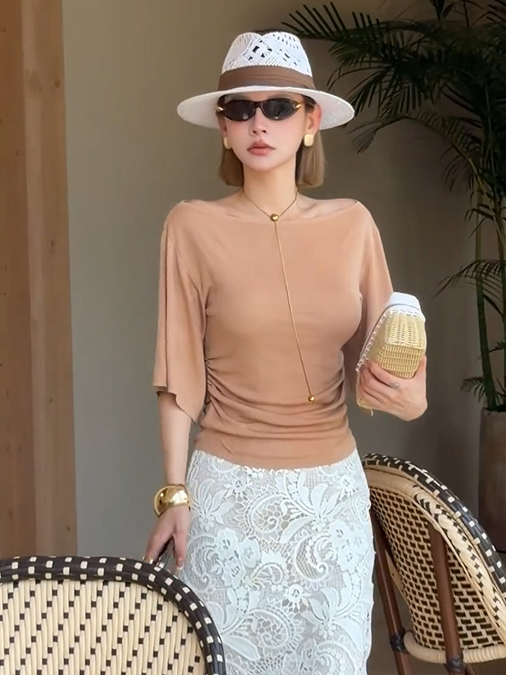 있음 도착 망토 디자인 센스 반팔 티셔츠 여성 여름 2026 새로운 인사이드 가져 가라. 기본 셔츠 맨위