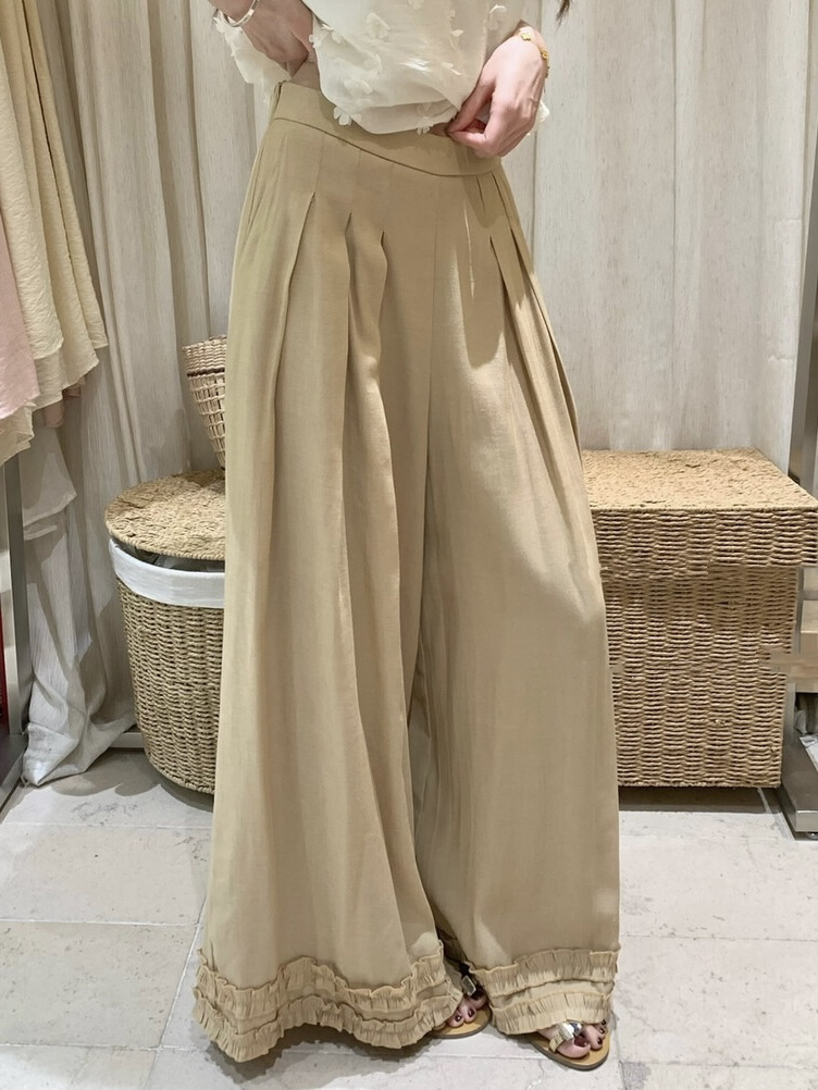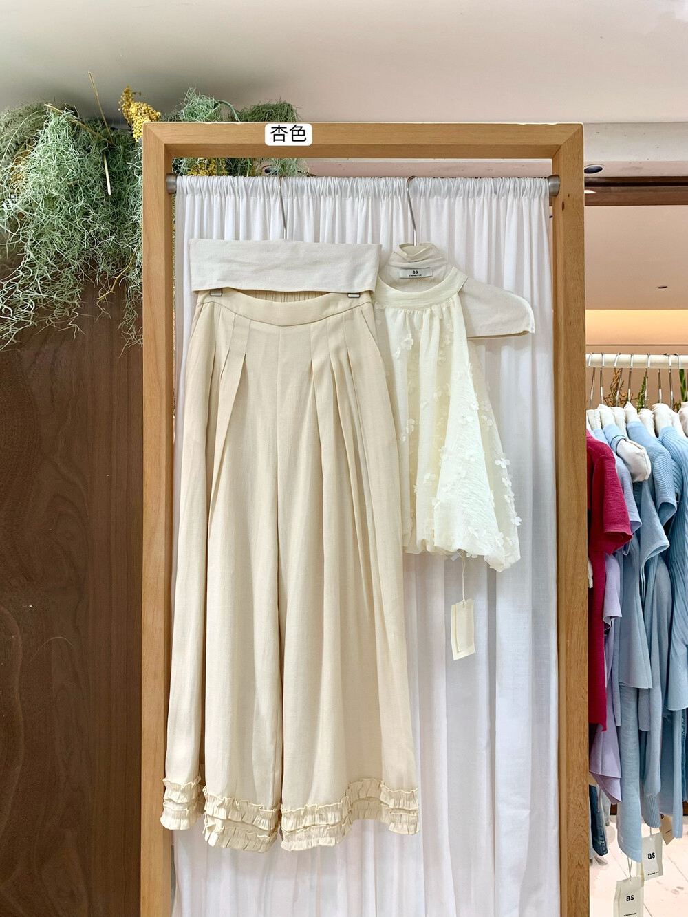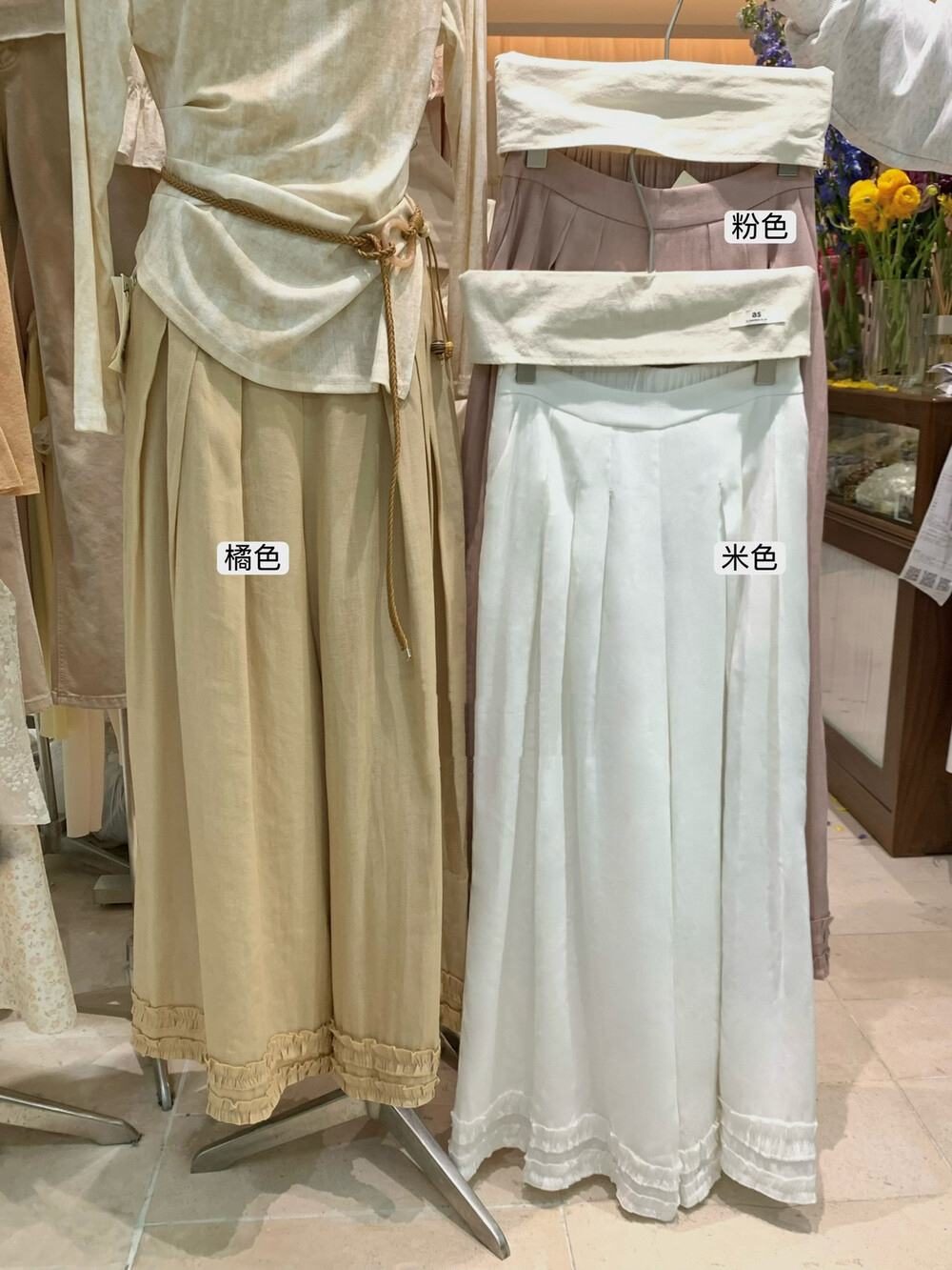 한국 스타일 프릴 9 포인트 꽃밭 바지 여성 여름 디자인 센스 허리밴드 루즈핏 와이드 레깅스 바지