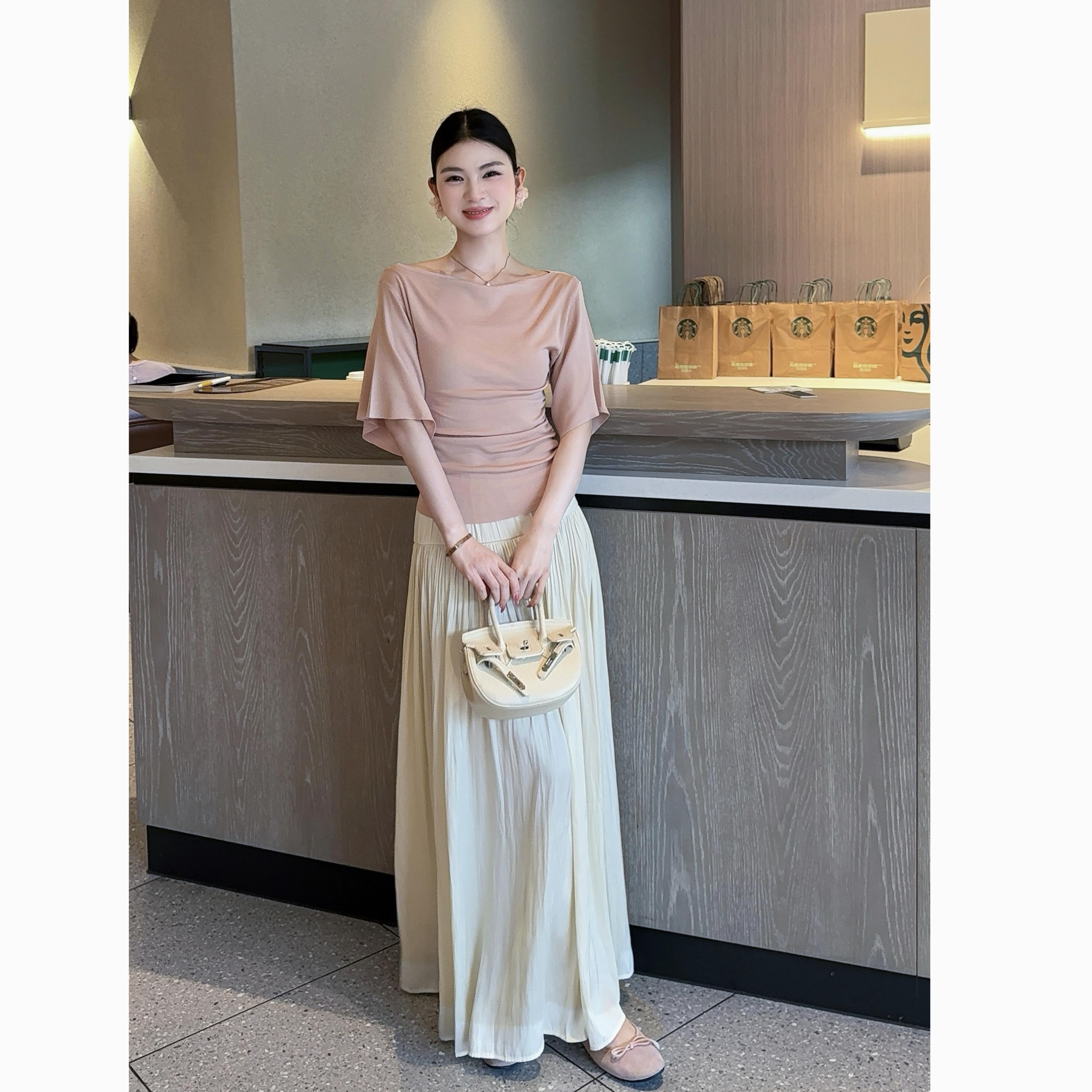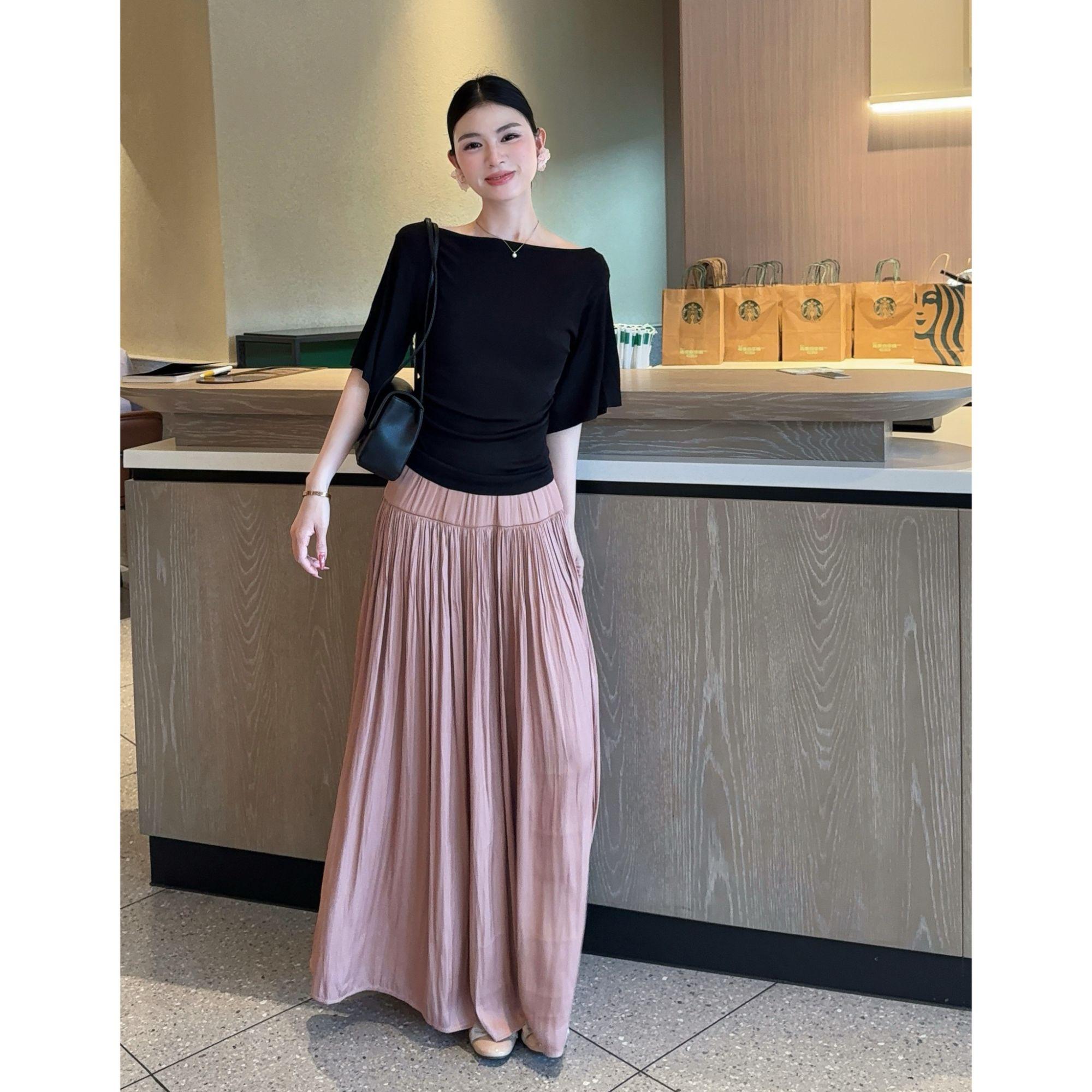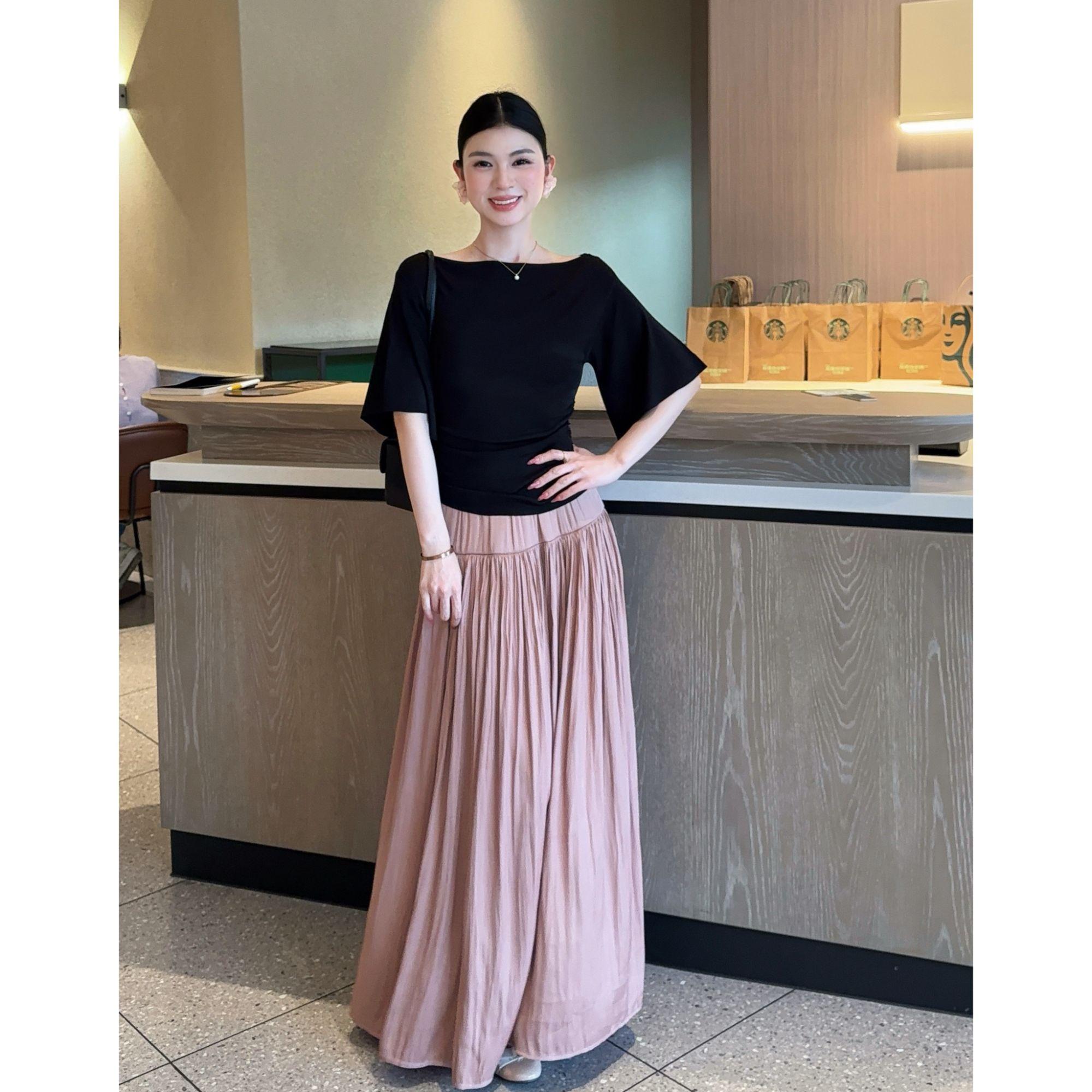 있음 도착 니트 반팔 부드러운 도루 센스 플리츠 롱 코트 루즈핏 요정 고대 조기 바람 여성 반신 치마 세트 여성
