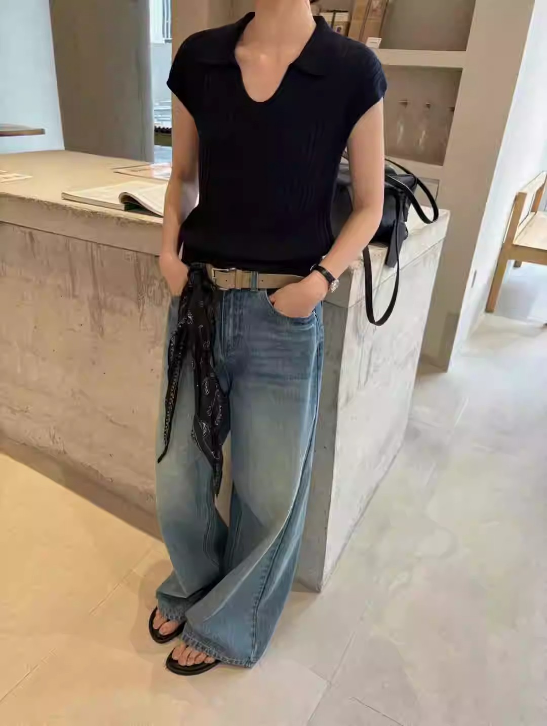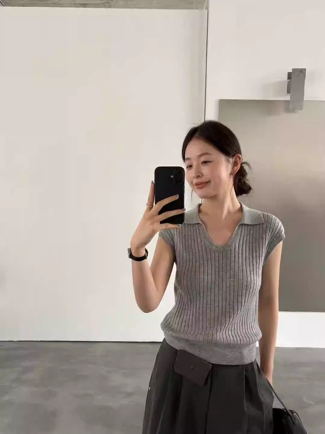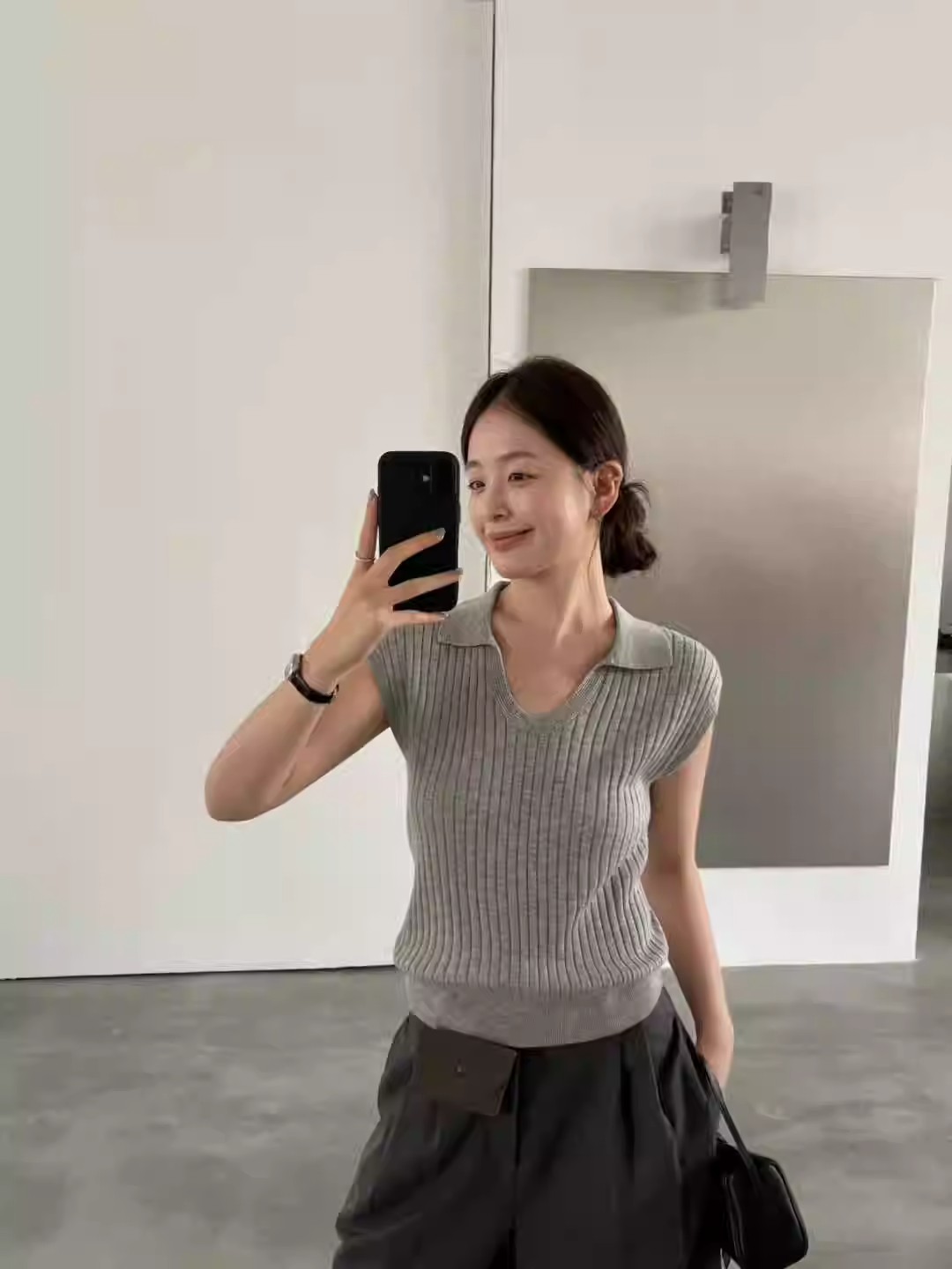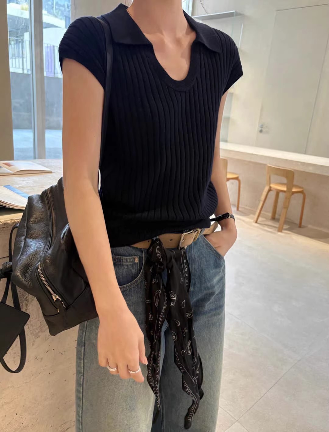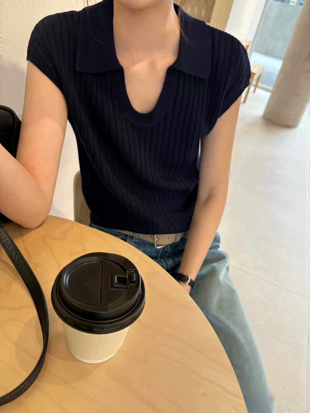 한 부서 POLO 칼라 화이트 니트 반팔 티셔츠 여성 여름 작은 키 고유 한 아름다운 몸매 가꾸기 쇼트 스타일 맨위