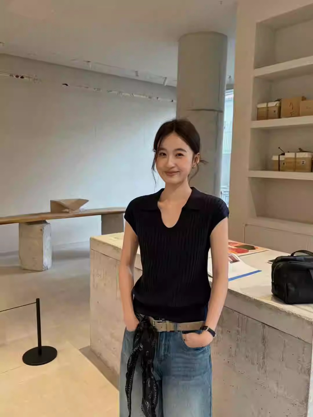 2026 슈퍼 화재 열린 봄 착용 가져 가라. 전체 집합 고유 한 아름다운 자이언트 잘 생긴 스택 착용 파란색 맨위 3종 세트 바지 여성