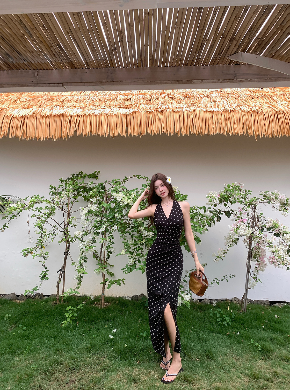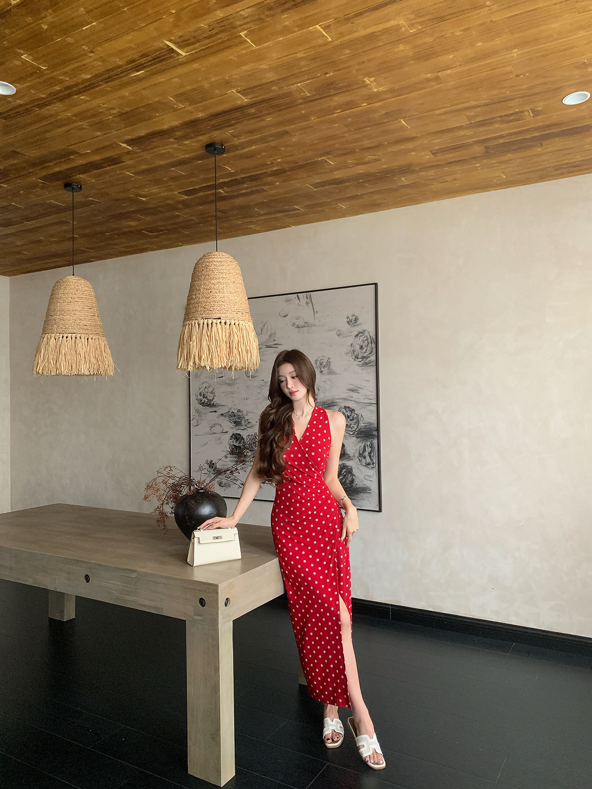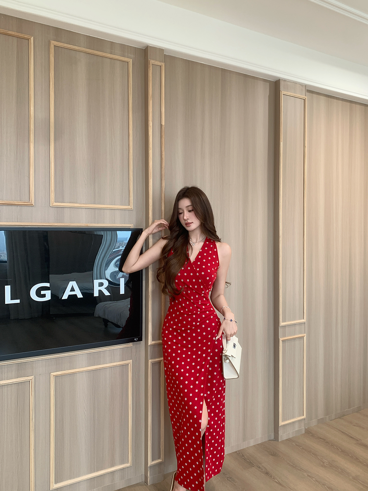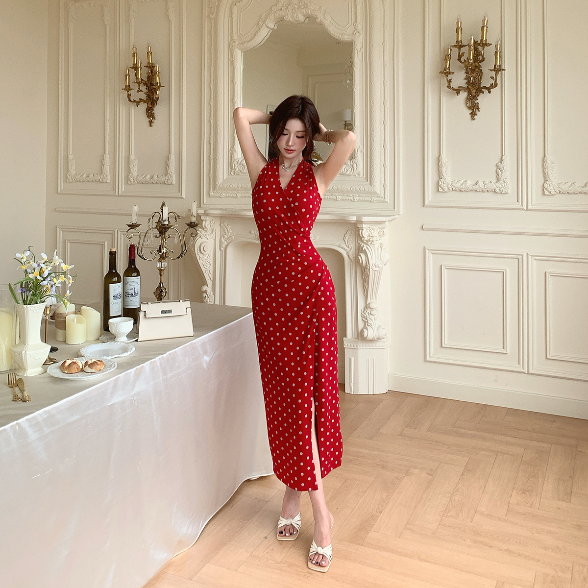빛 럭셔리 바람 민소매 허리 수축 여성 드레스 트임 슬림해 보이는 디자인 센스 치마