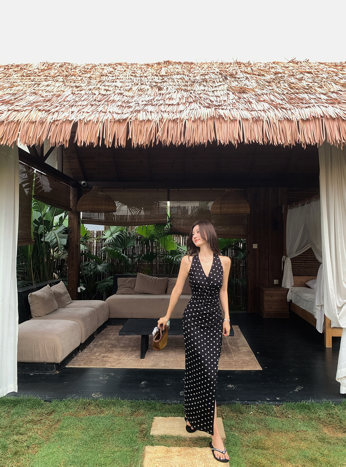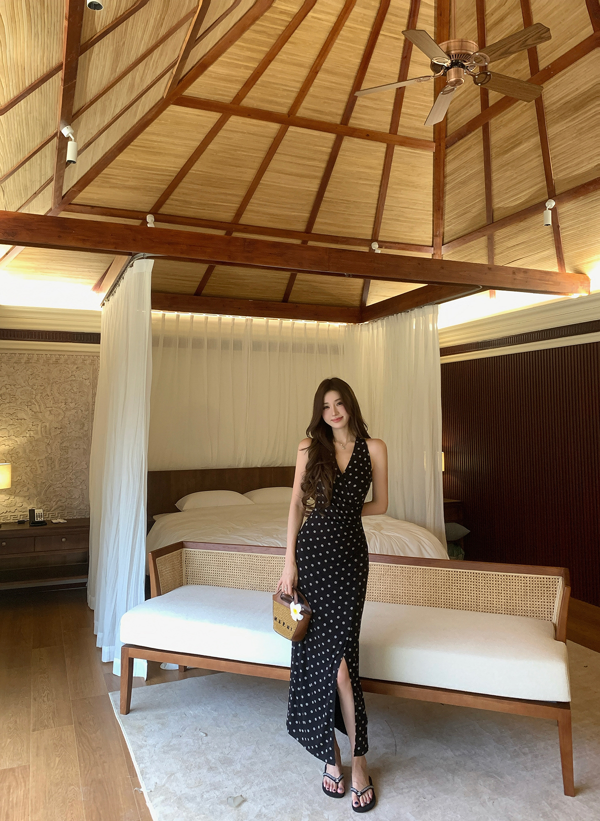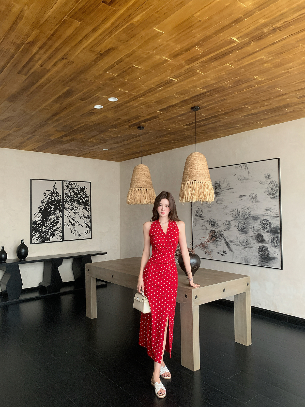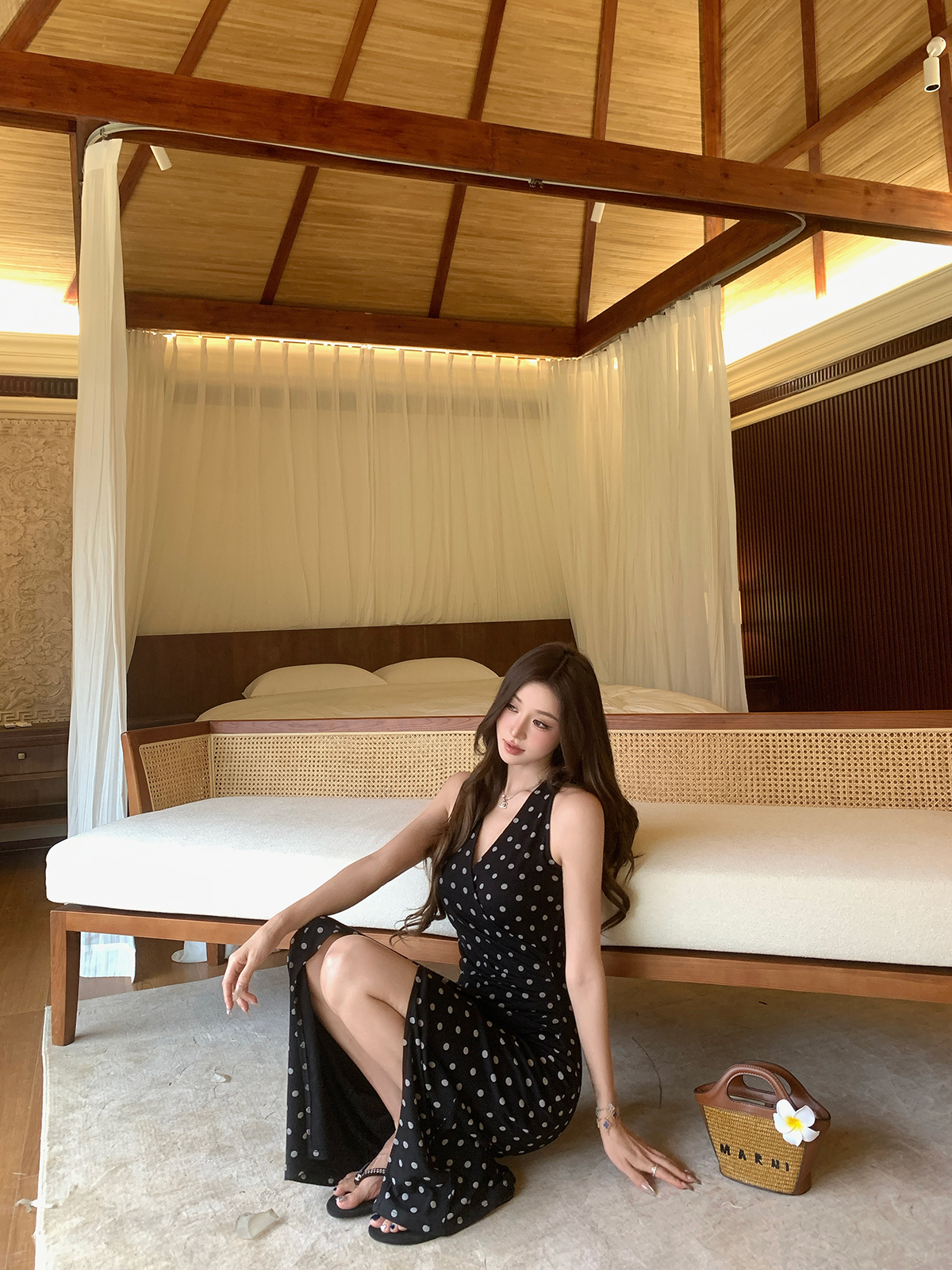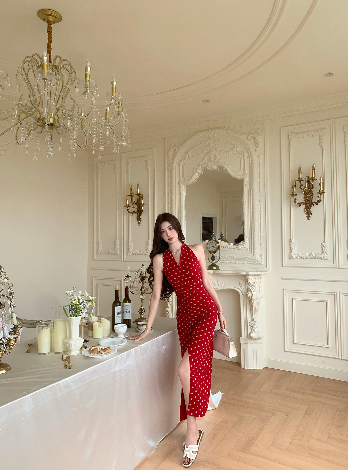 빛 럭셔리 바람 민소매 허리 수축 여성 드레스 트임 슬림해 보이는 디자인 센스 치마