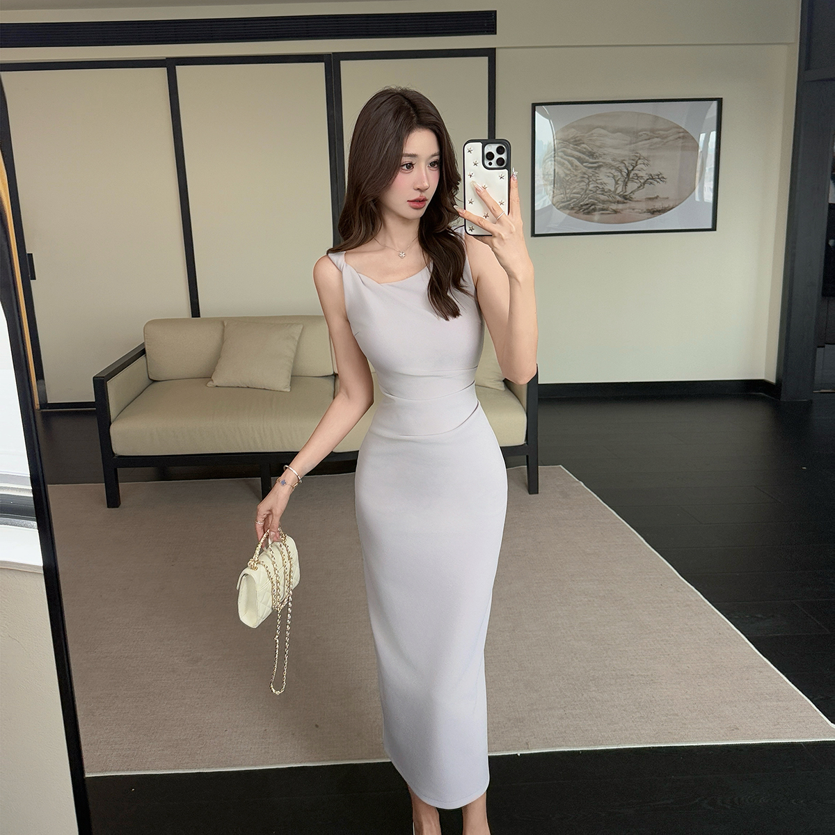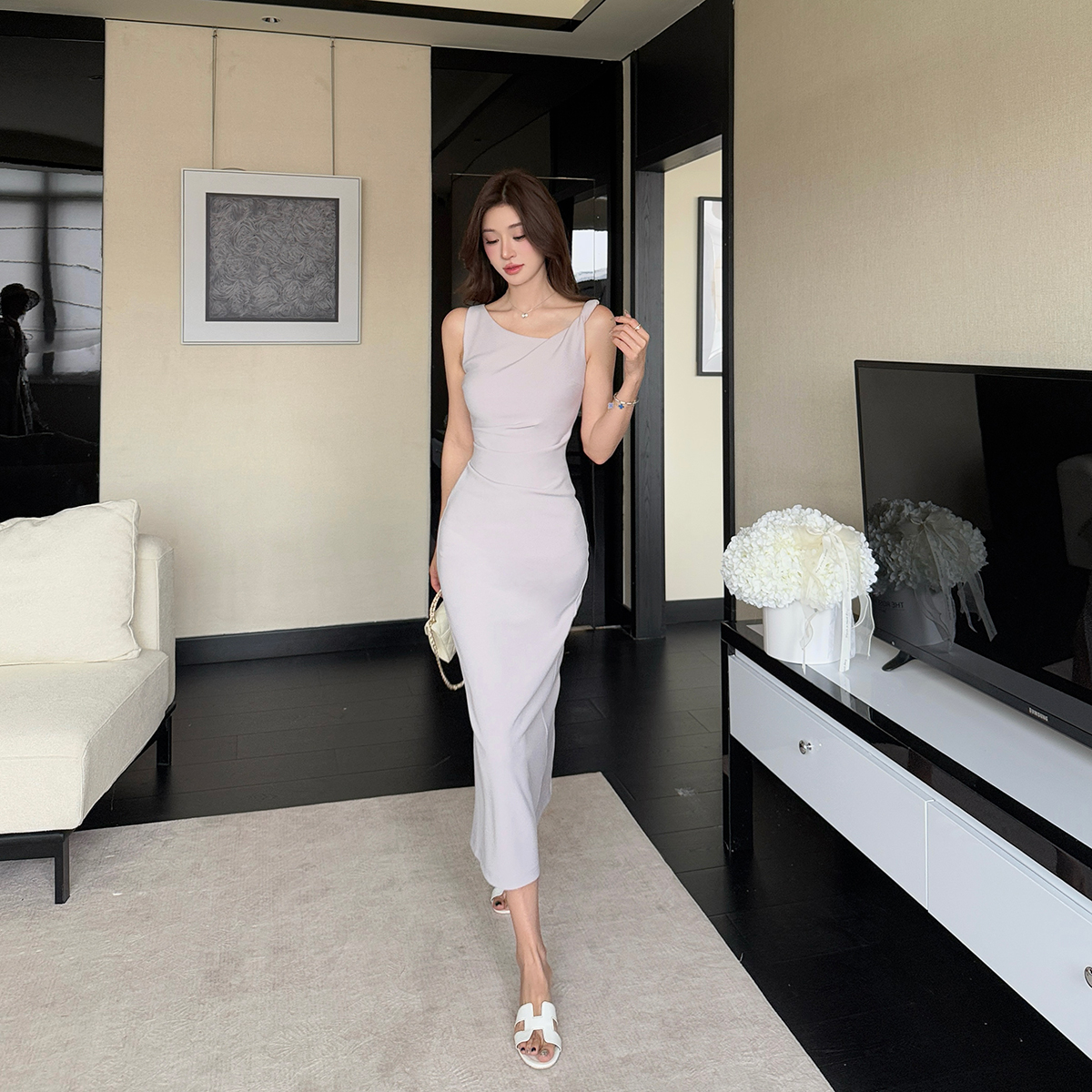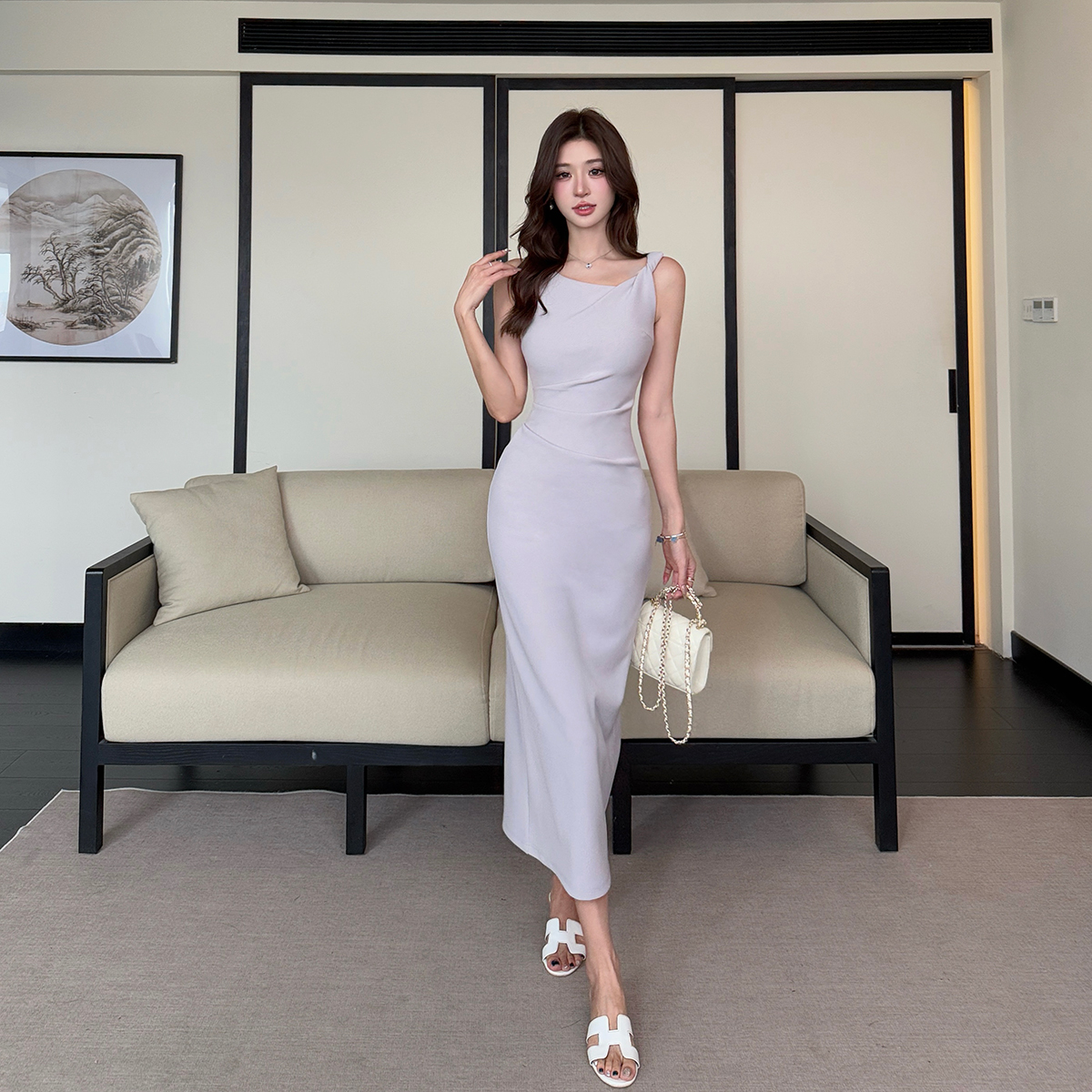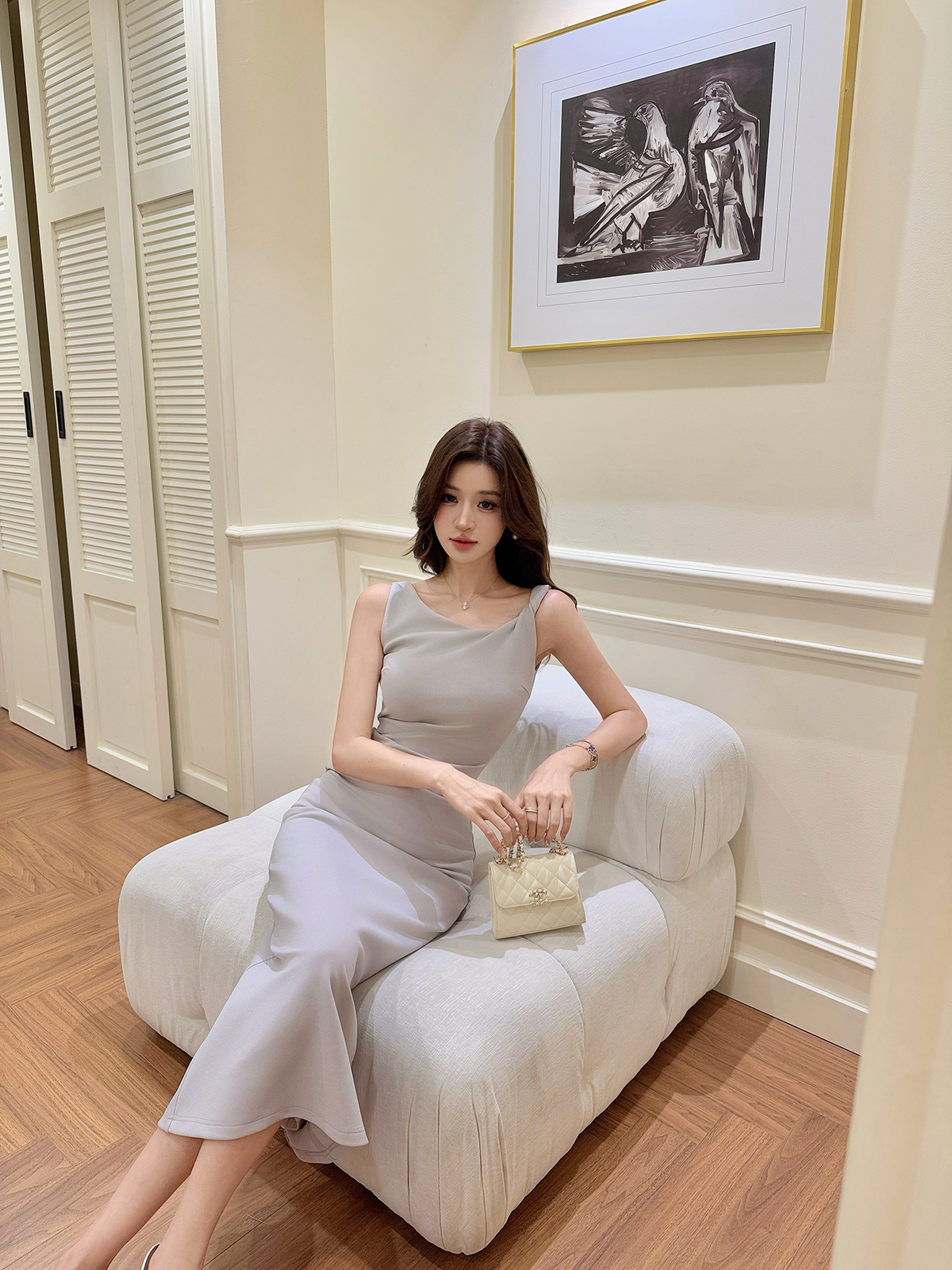 빛 럭셔리 바람 민소매 허리 수축 여성 드레스 트임 슬림해 보이는 디자인 센스 치마