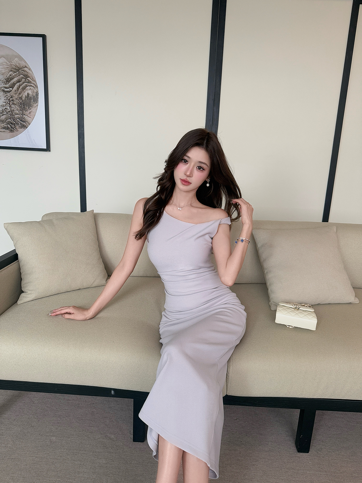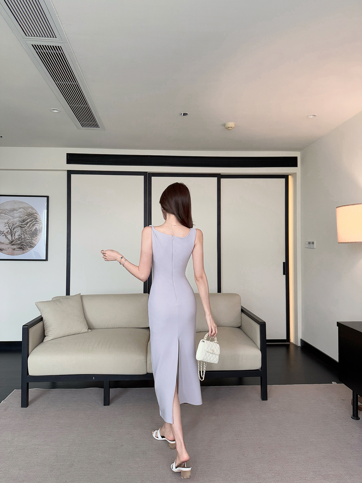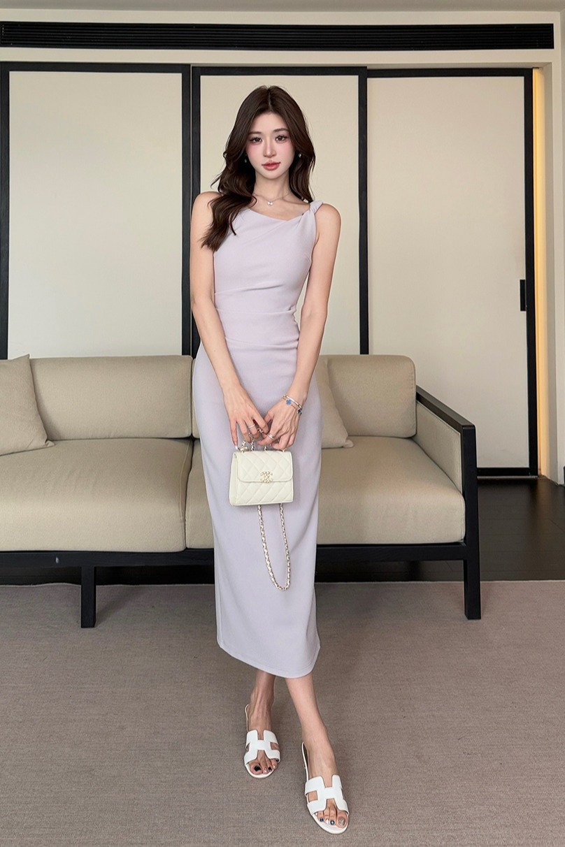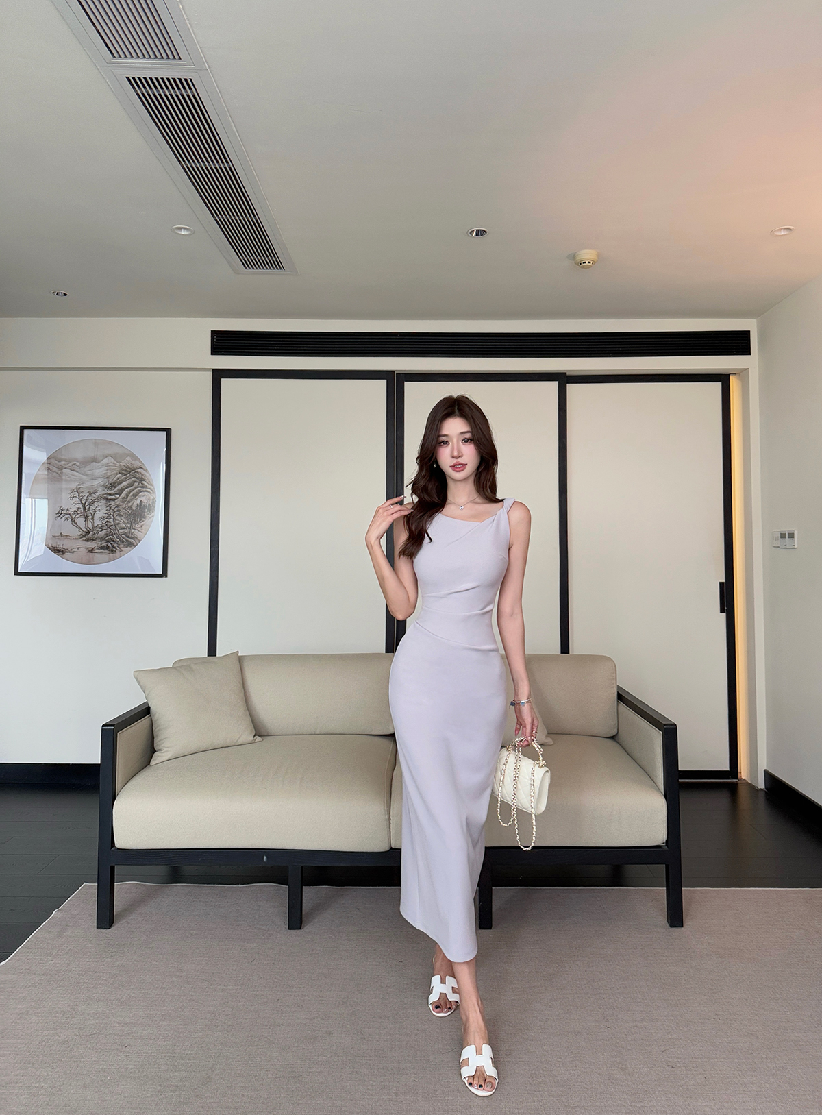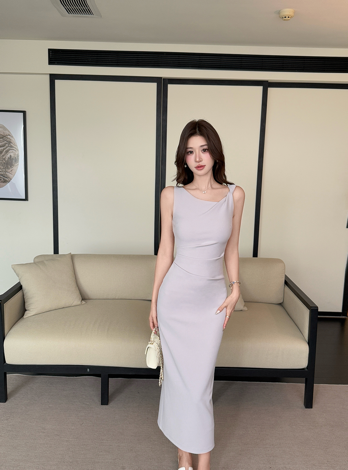 빛 럭셔리 바람 민소매 허리 수축 여성 드레스 트임 슬림해 보이는 디자인 센스 치마