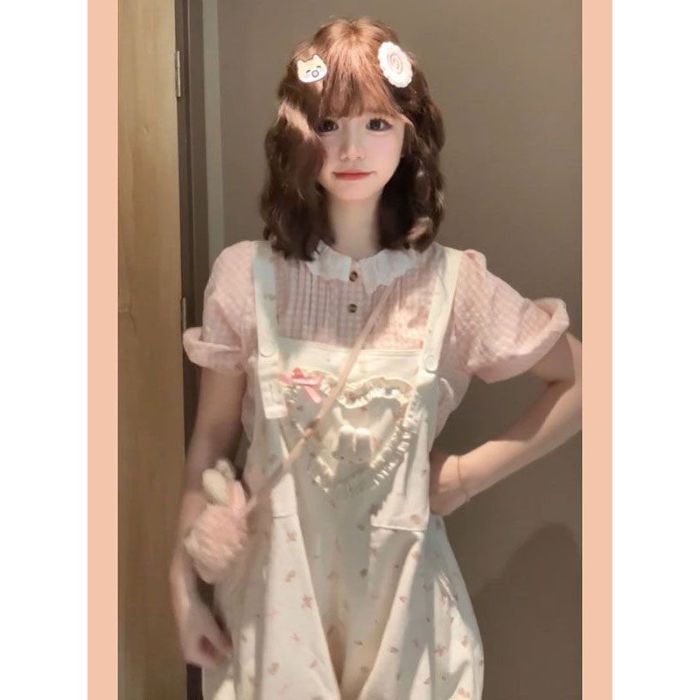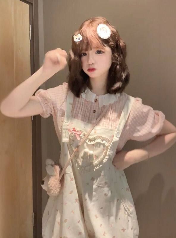 빅 사이즈 지방 mm 복숭아 심장 광장 칼라 반팔 티셔츠 여성 의류 새로운 학원 스타일 슬림해 보이는 표지 배 숨기기 고기 맨위
