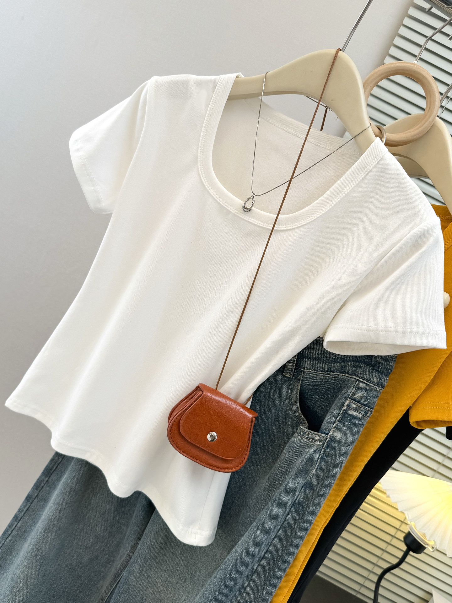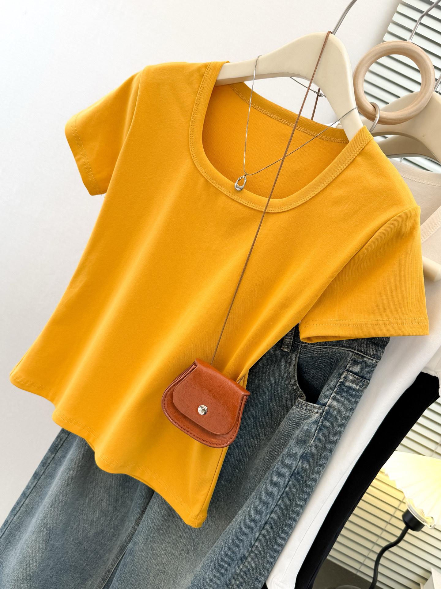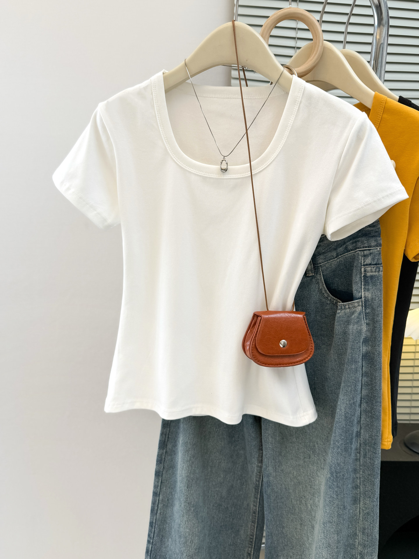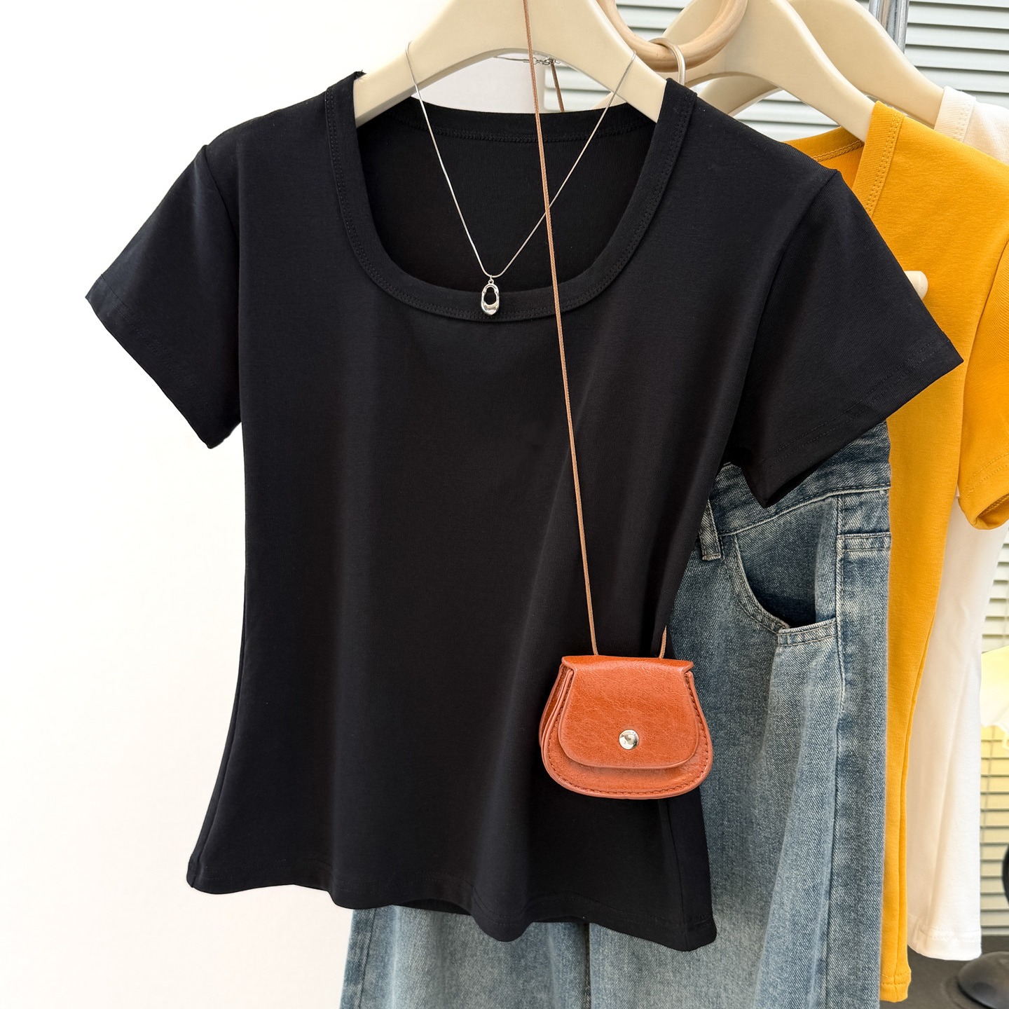 한 부서 고급 센스 대나무 마디 면 반팔 티셔츠 여성 2026 여름 새로운 몸매 가꾸기 한국 스타일 인사이드 가져 가라. 기본 셔츠 맨위