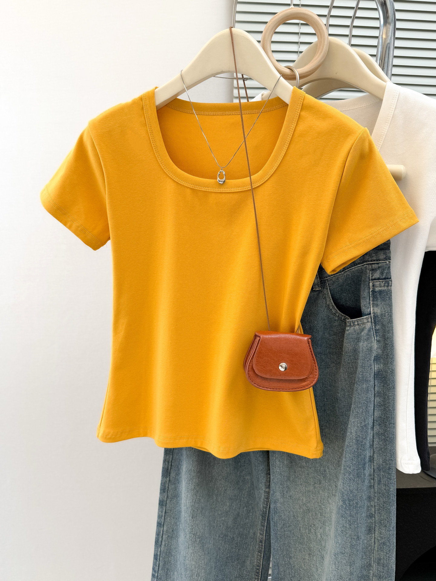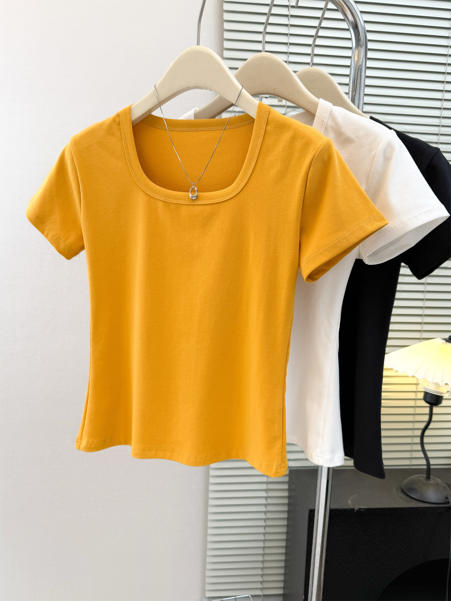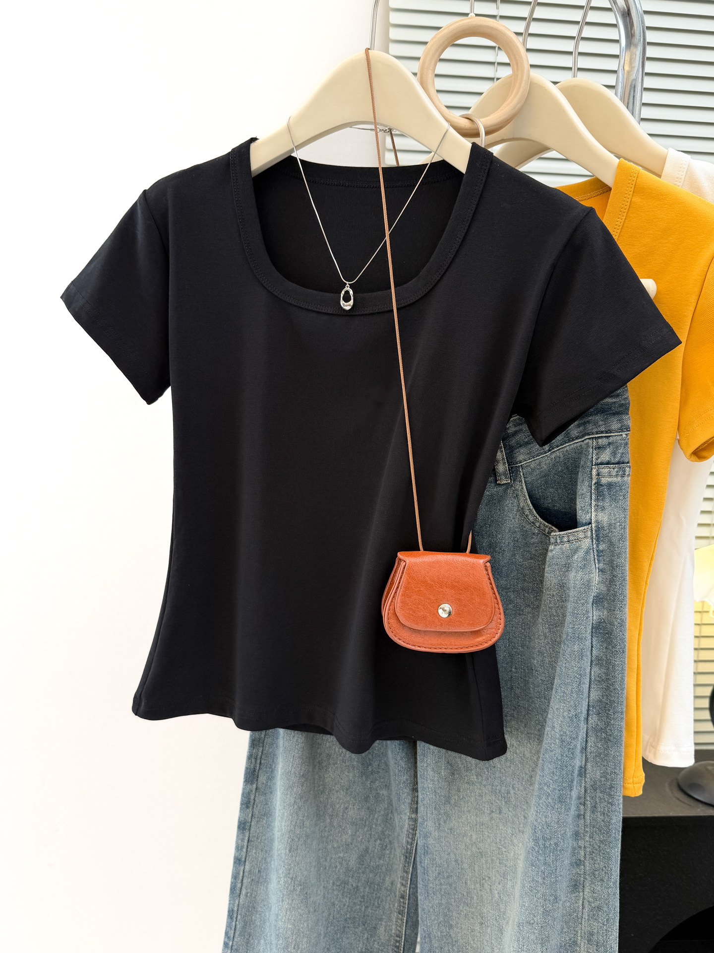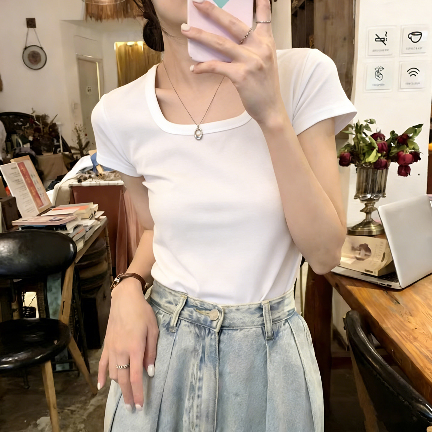 한 부서 고급 센스 대나무 마디 면 반팔 티셔츠 여성 2026 여름 새로운 몸매 가꾸기 한국 스타일 인사이드 가져 가라. 기본 셔츠 맨위