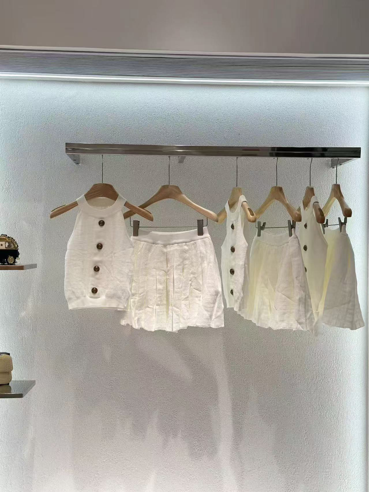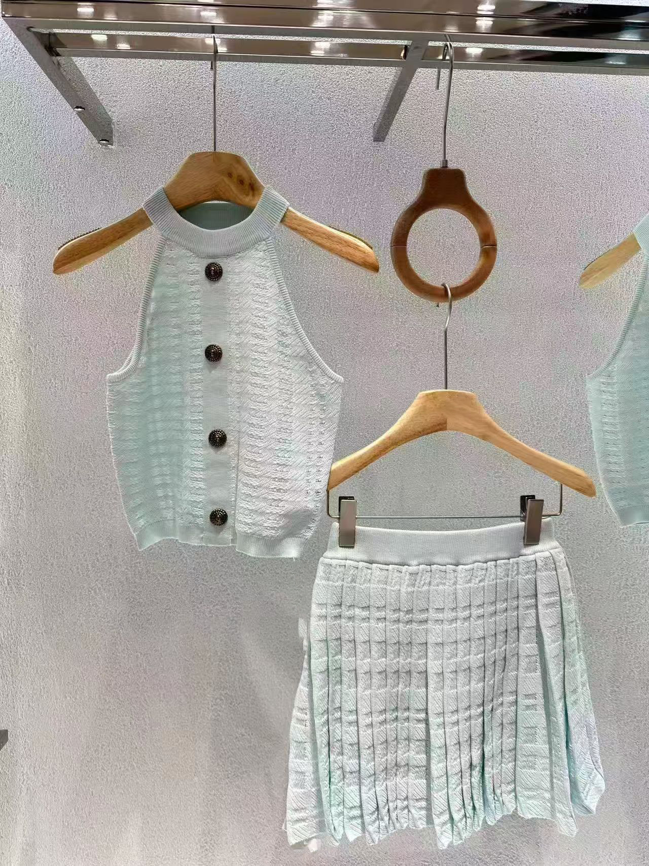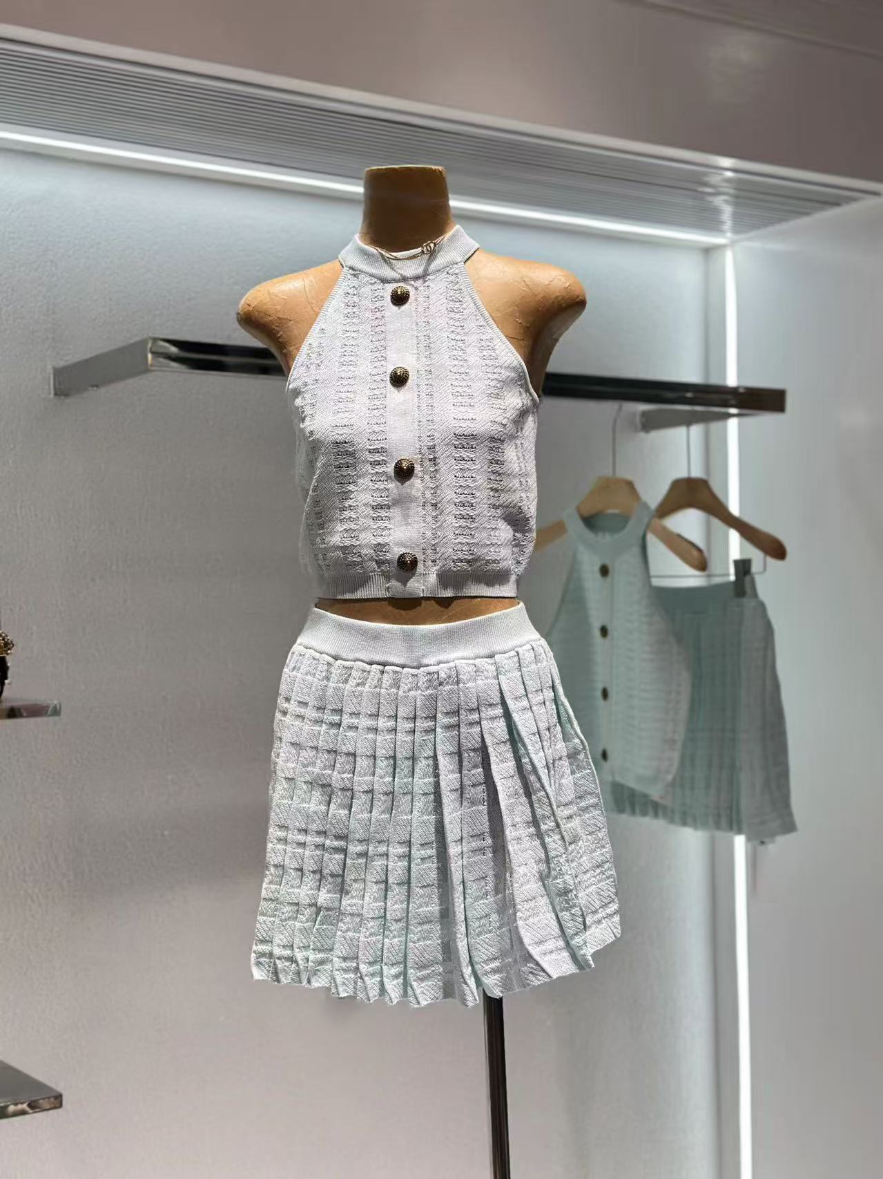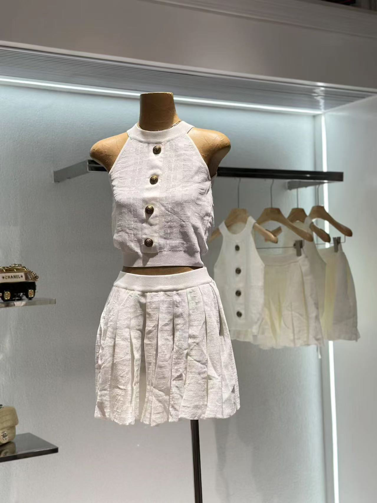 m900 세트 여성 2026 여름 새로운 디자인 센스 행침 목 민소매 맨위 플리츠 한 마디 미니 스커트 투피스 세트