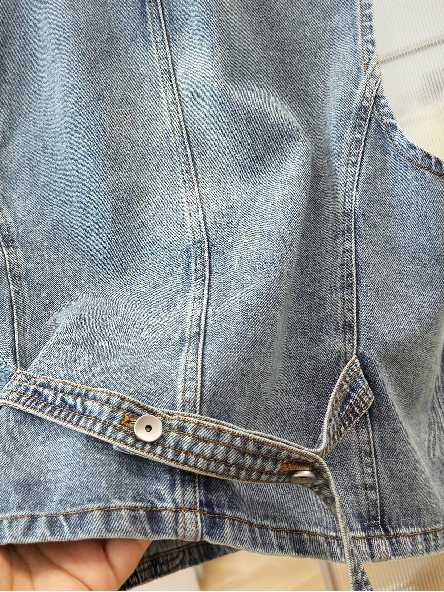 2026 새로운 레트로 캐주얼 세련된 외국 가스 스택 착용 외출용 작은 스탠드 칼라 데님 베스트 조끼 여성 코트 봄 드레스