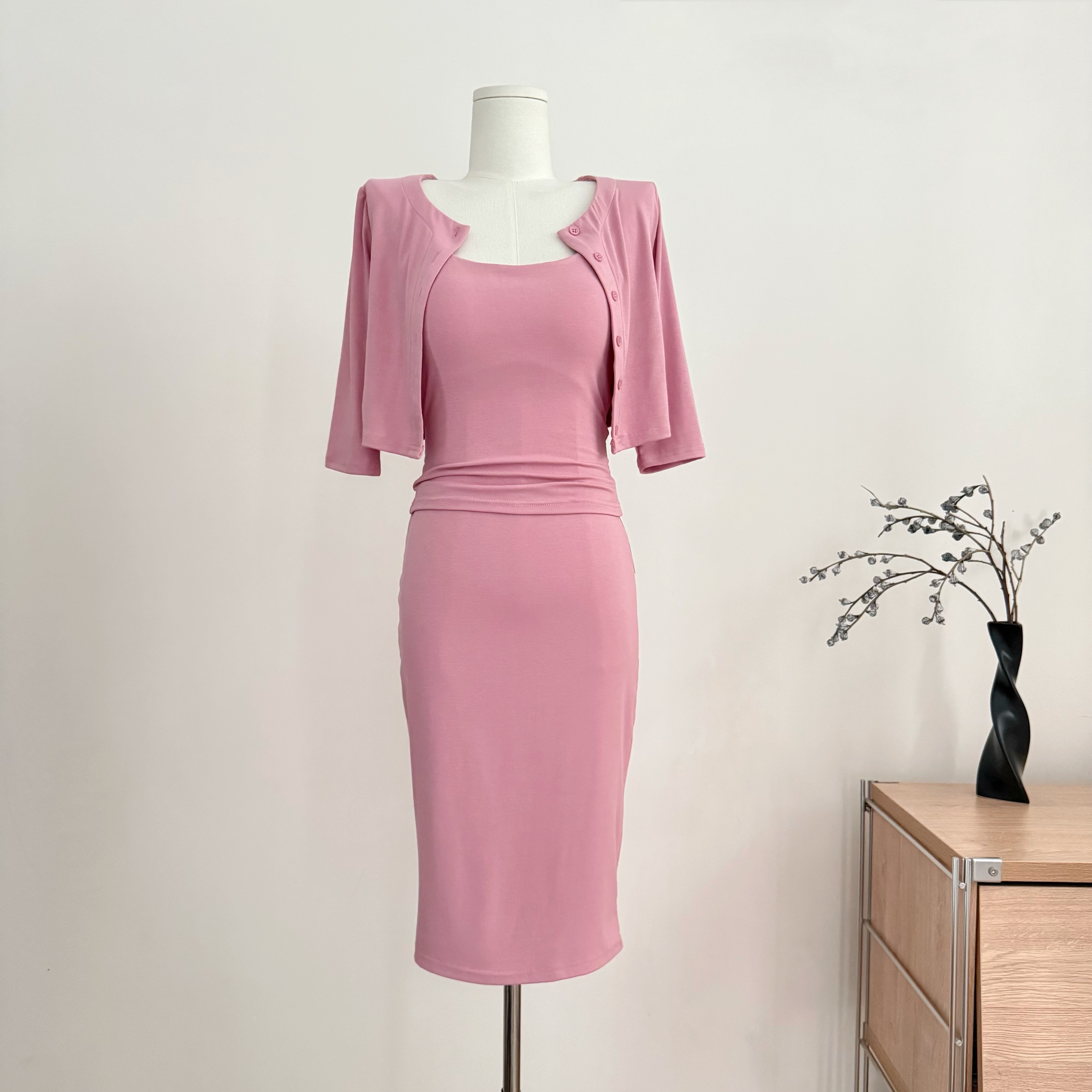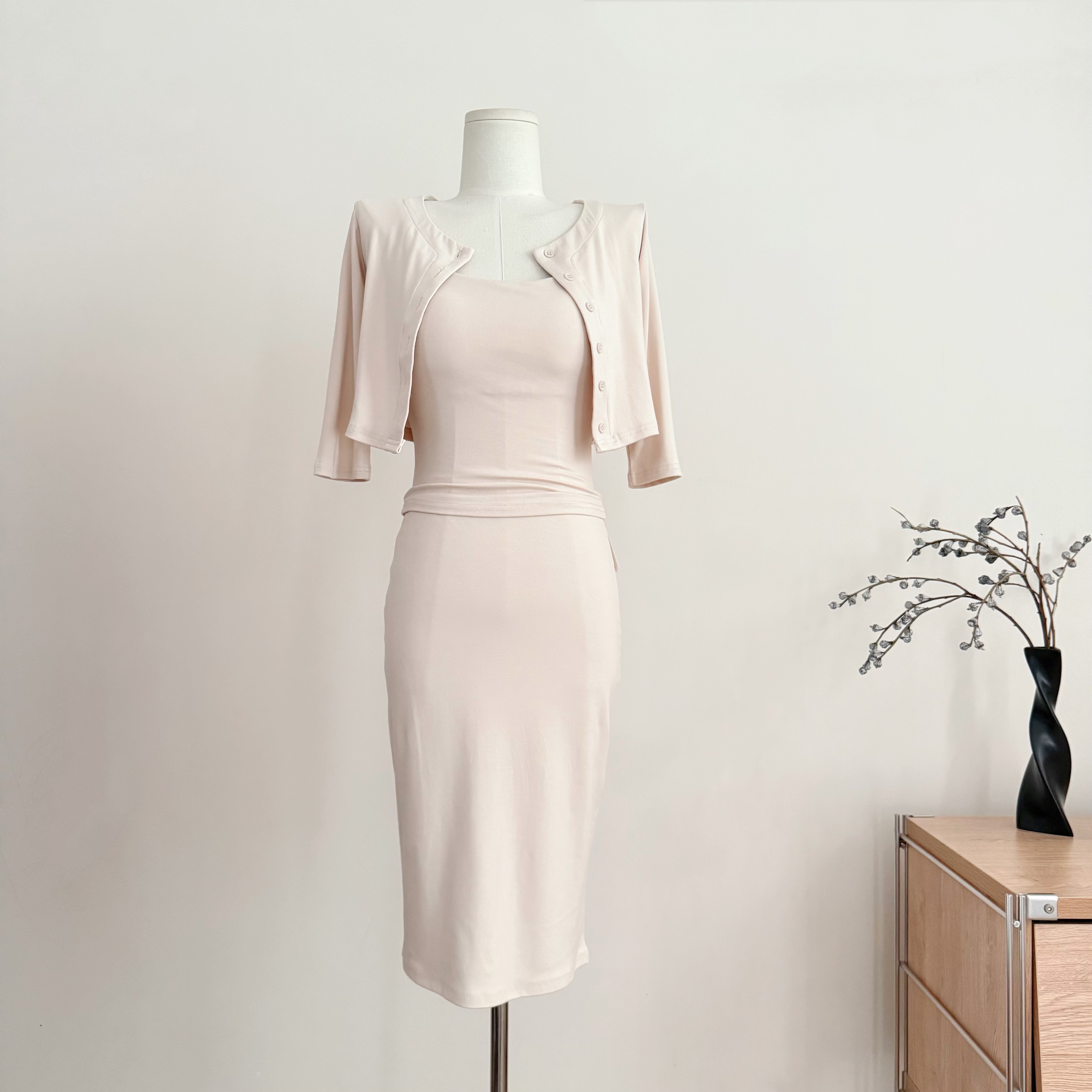 sunoneone 슬림해 보이는 주름 슬립 여성 드레스 봄 프랑스식 민소매 고급 센스 허리 수축 니트 롱 스커트