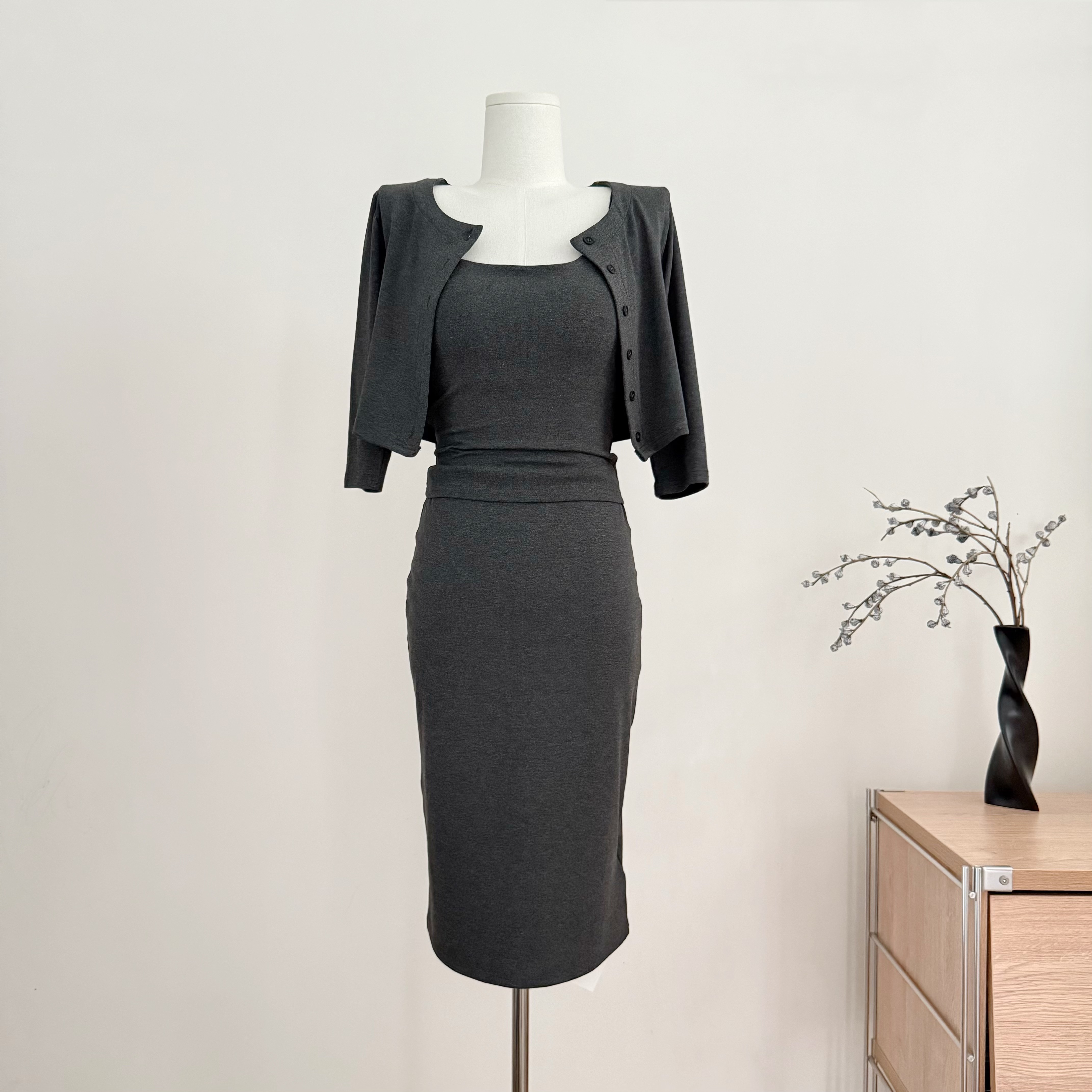 e go studio 아시아 인 얼어서 고움 세대 서울 느긋한 루즈핏 대 에디션 펌프 로프 칼라 대 치마 반 스커트 슬림해 보이는 세트