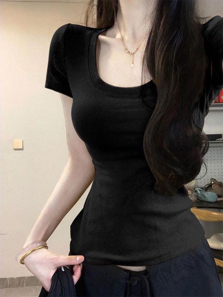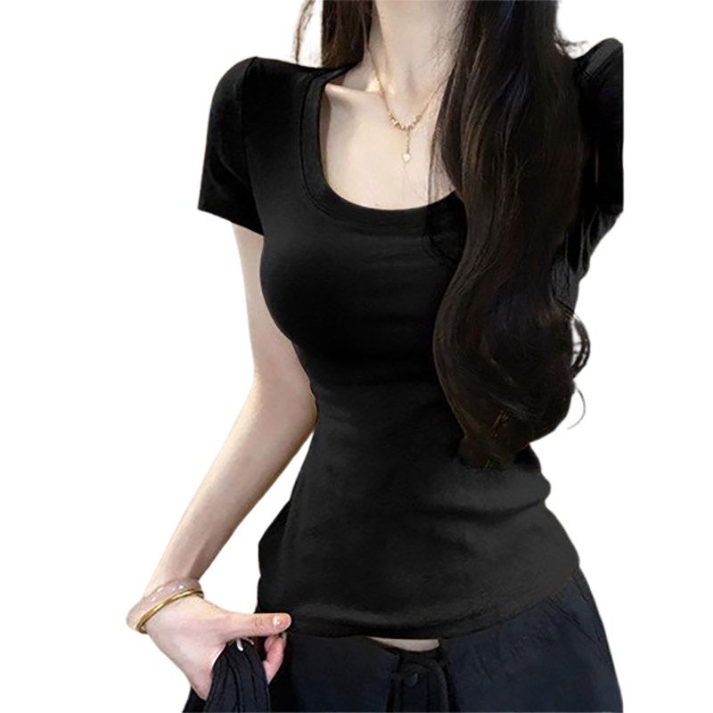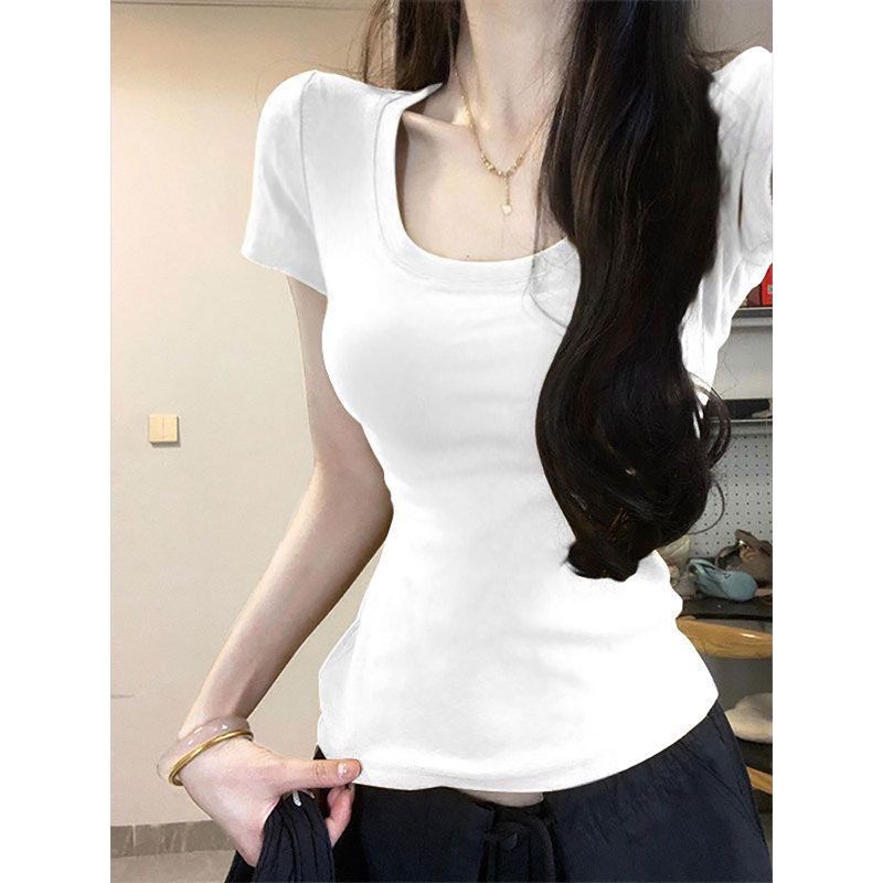 빅 사이즈 지방 mm 복숭아 심장 광장 칼라 반팔 티셔츠 여성 의류 새로운 학원 스타일 슬림해 보이는 표지 배 숨기기 고기 맨위